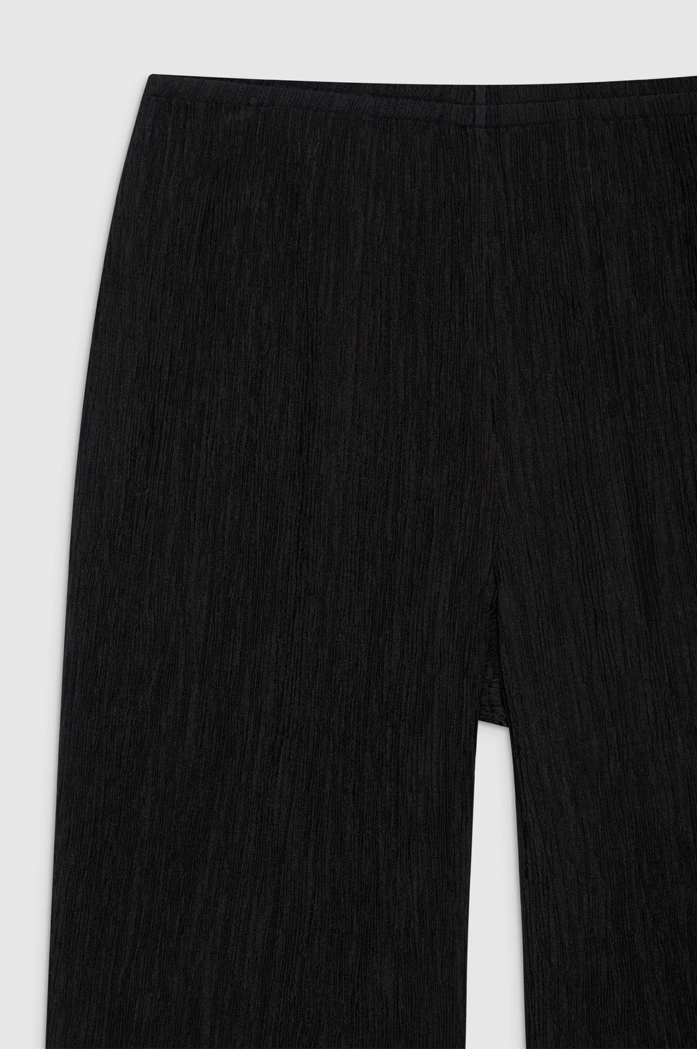 Die Aden Pant ist aus leichtem, vertikal plissiertem Strick gefertigt und fühlt sich trocken und dennoch weich an. Ihre schlanke Silhouette zeichnet sich durch einen schlichten, elastischen Bund und seitliche Schlitze am äusseren Saum aus.