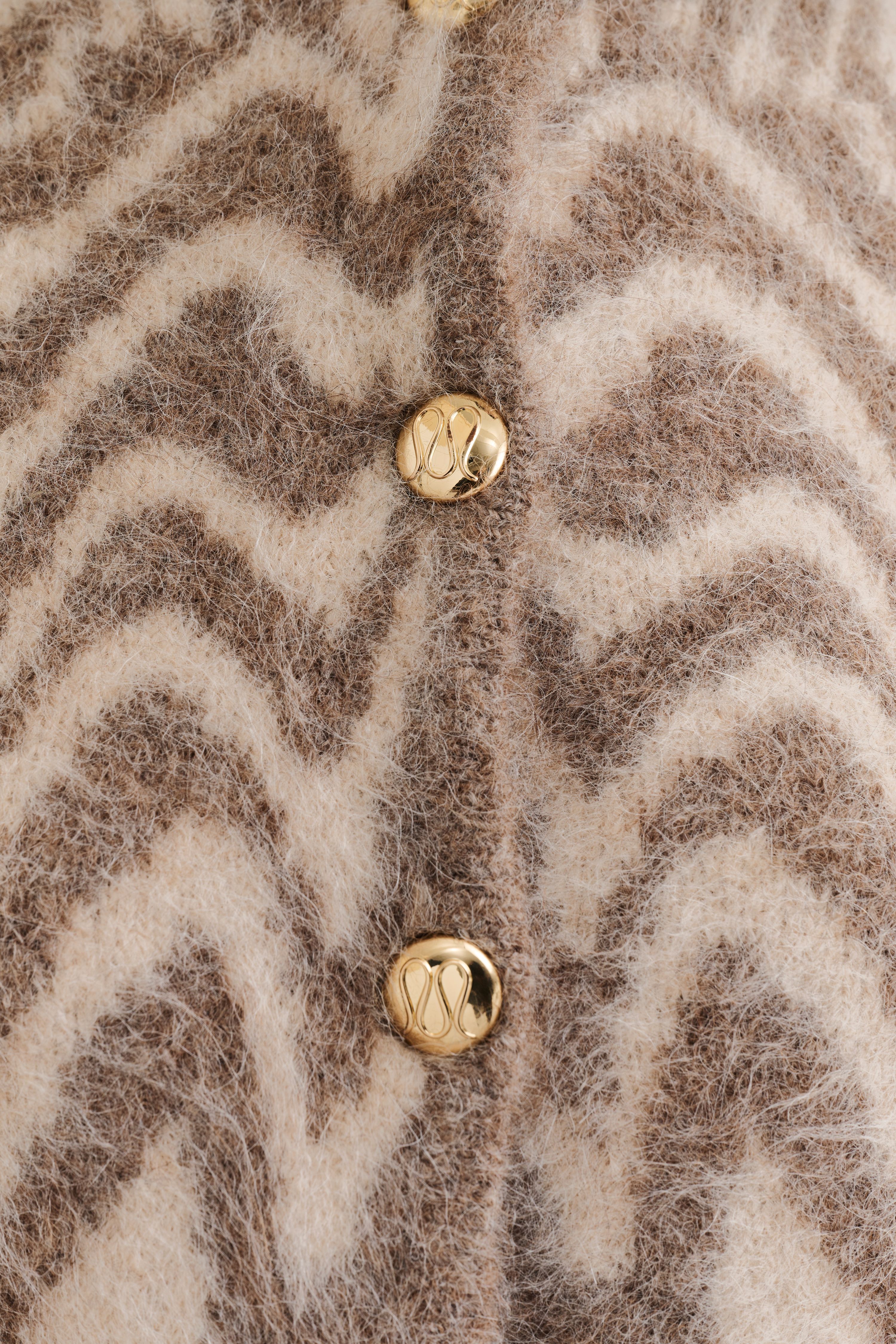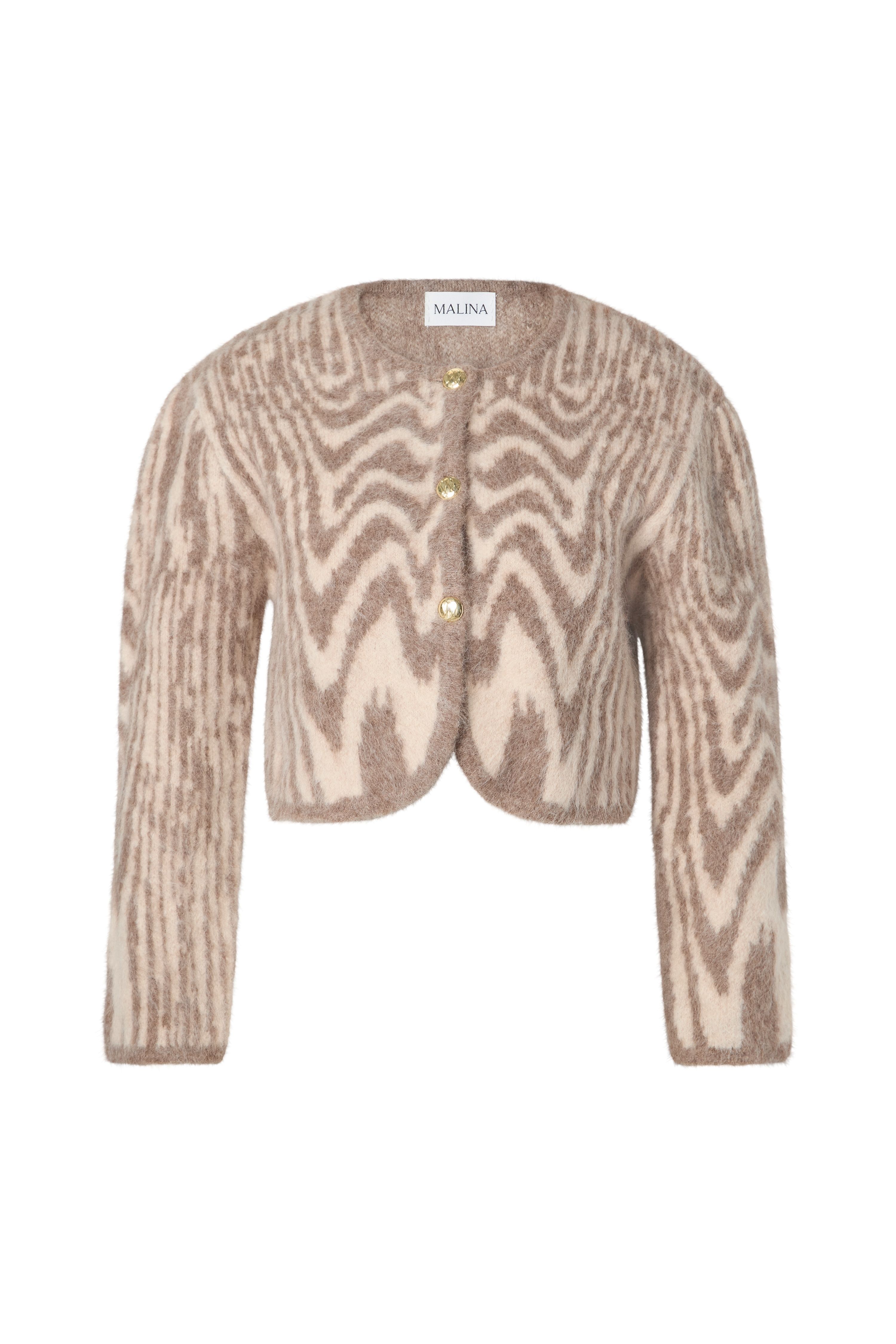 Strickjacke aus Alpakamischung, leicht tailliert und mit goldenen Knöpfen mit Malina-Monogramm auf der Vorderseite.