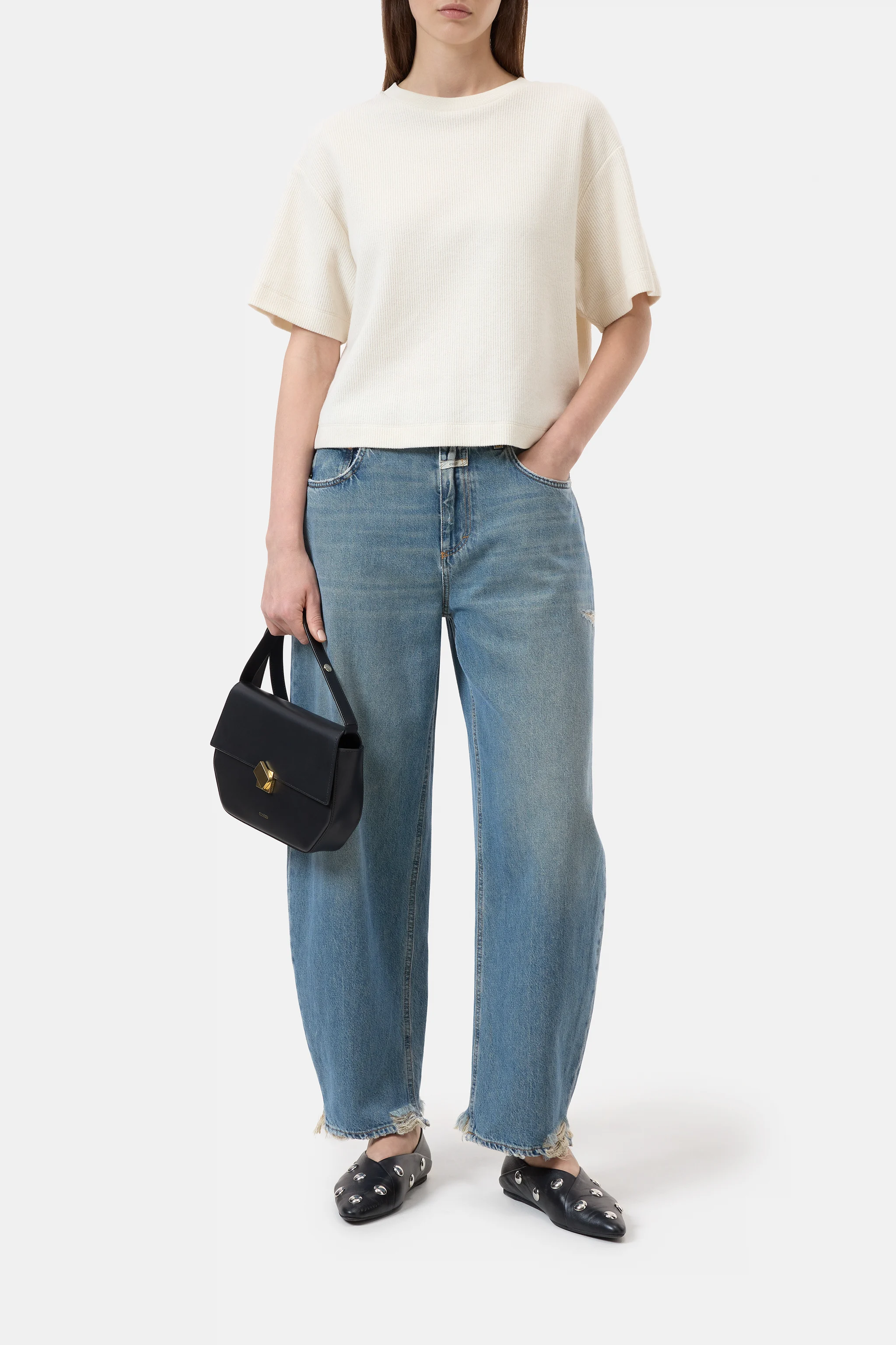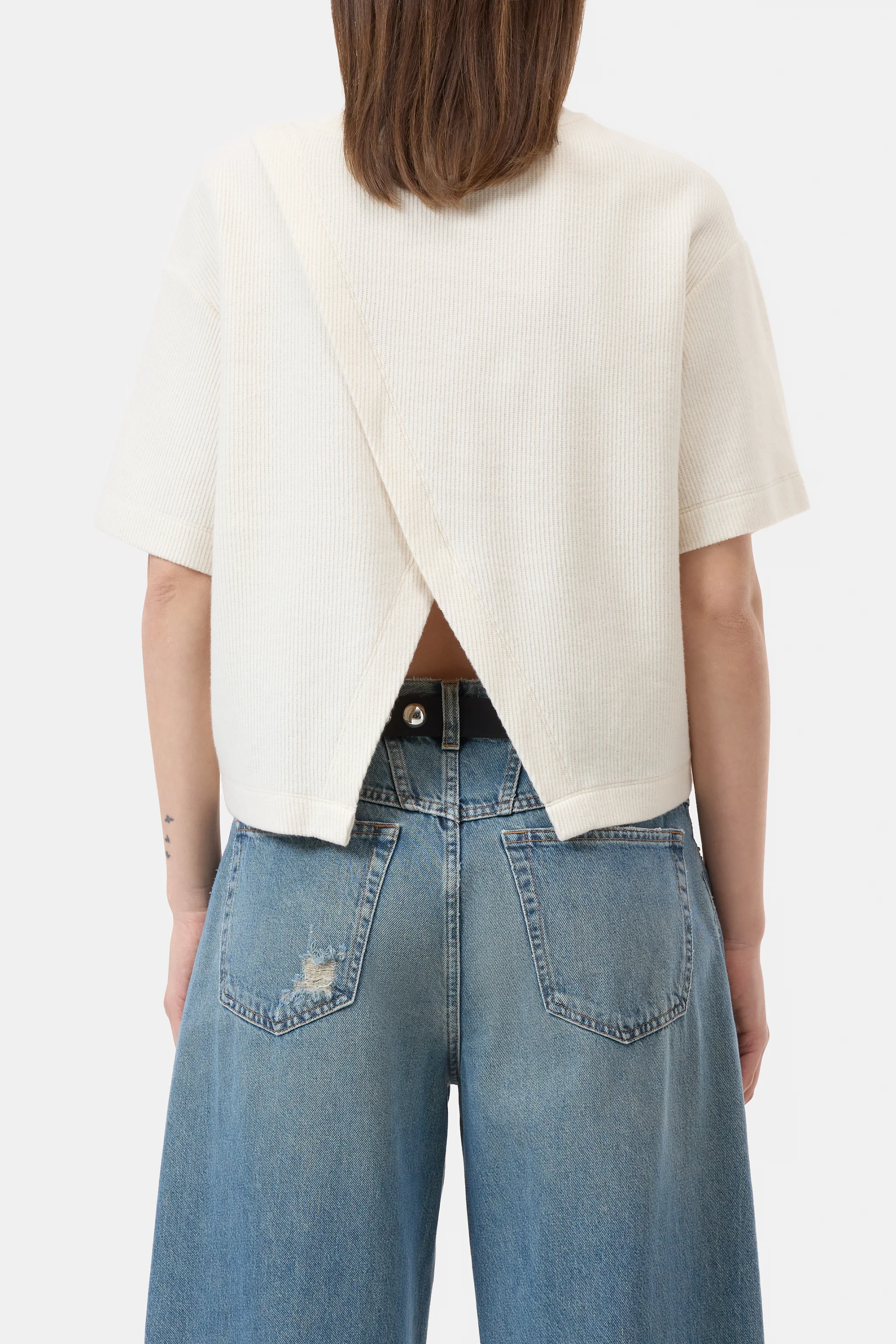 T-Shirt mit Rückenschlitz in entspannter Passform. Aus portugiesischem Doubleface-Jersey mit weicher Haptik. Mit Rundhalsausschnitt, überschnittenen Schultern und Flag Label am Saum.