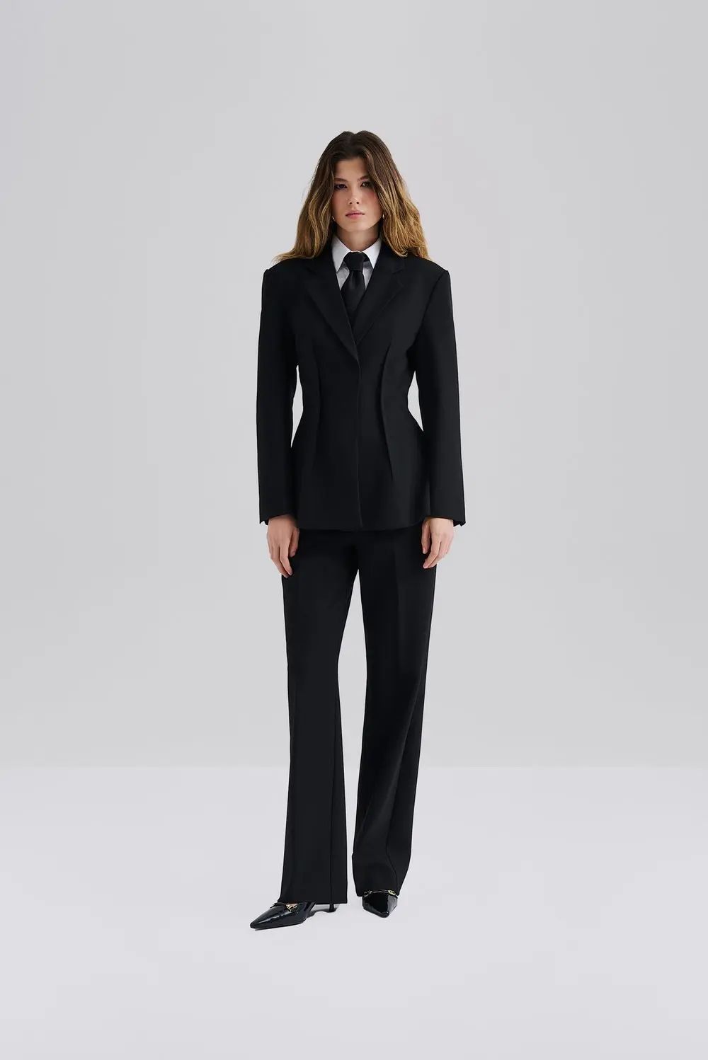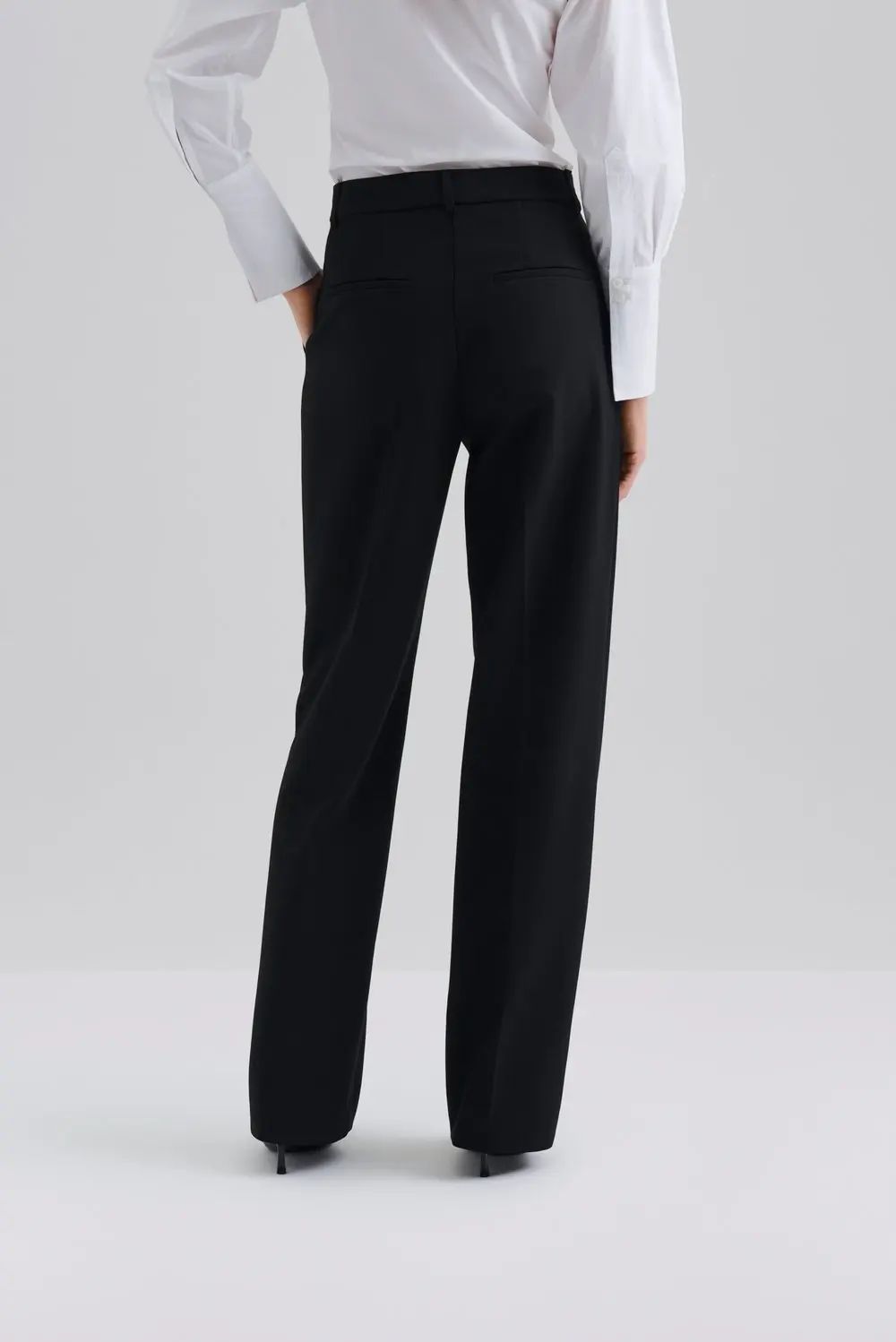 Hochgeschnittene, gerade geschnittene Hose mit Taschen.