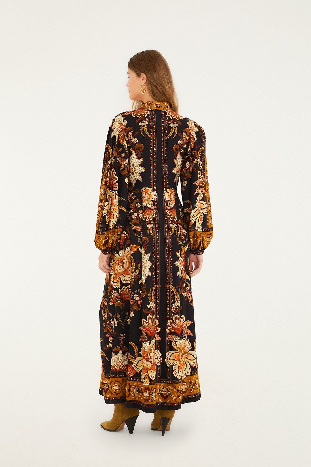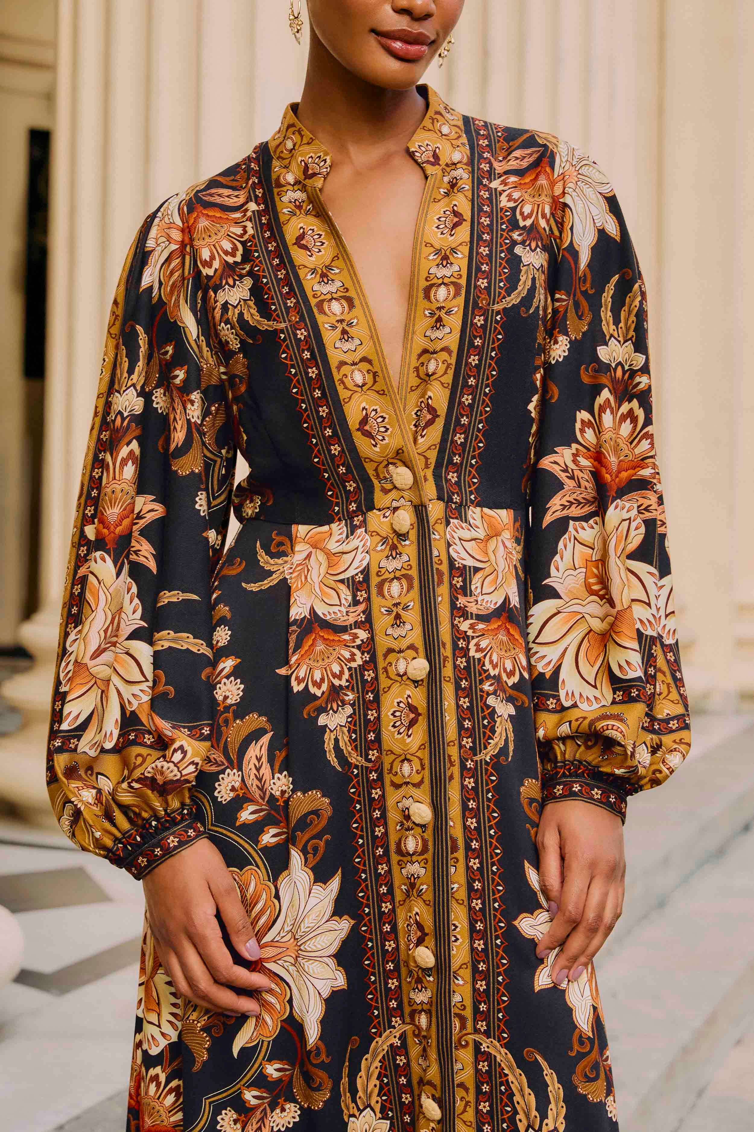 Beschreibung Black Majestic Garden Buttoned Puff Sleeve Maxi Dress