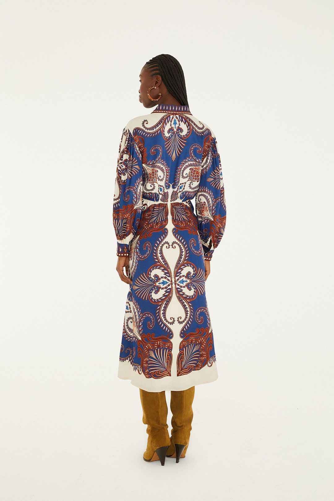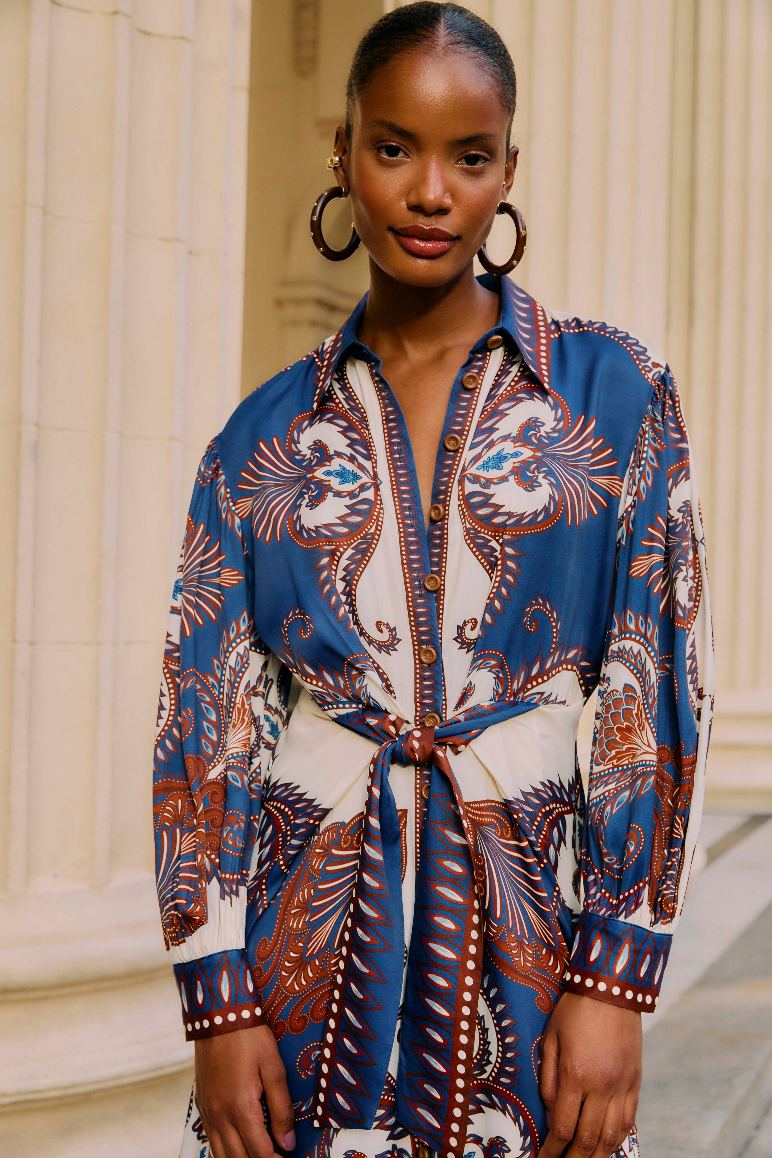 Umhüllt von lebhaften blauen Arabeskenmustern fliesst dieses Midi-Kleid von FARM Rio mühelos dank seines weichen Lenzing™ Ecovero™ Viskosestoffs. Der Kragen-Ausschnitt verleiht einen Hauch klassischer Eleganz, während die verspielte Silhouette bei jedem Schritt mitschwingt. Leicht und atmungsaktiv vereint dieses Kleid verantwortungsbewusste Herstellung mit fröhlicher Eleganz und bringt Wärme und Leichtigkeit mit einem unverkennbaren brasilianischen Flair in deine Garderobe.