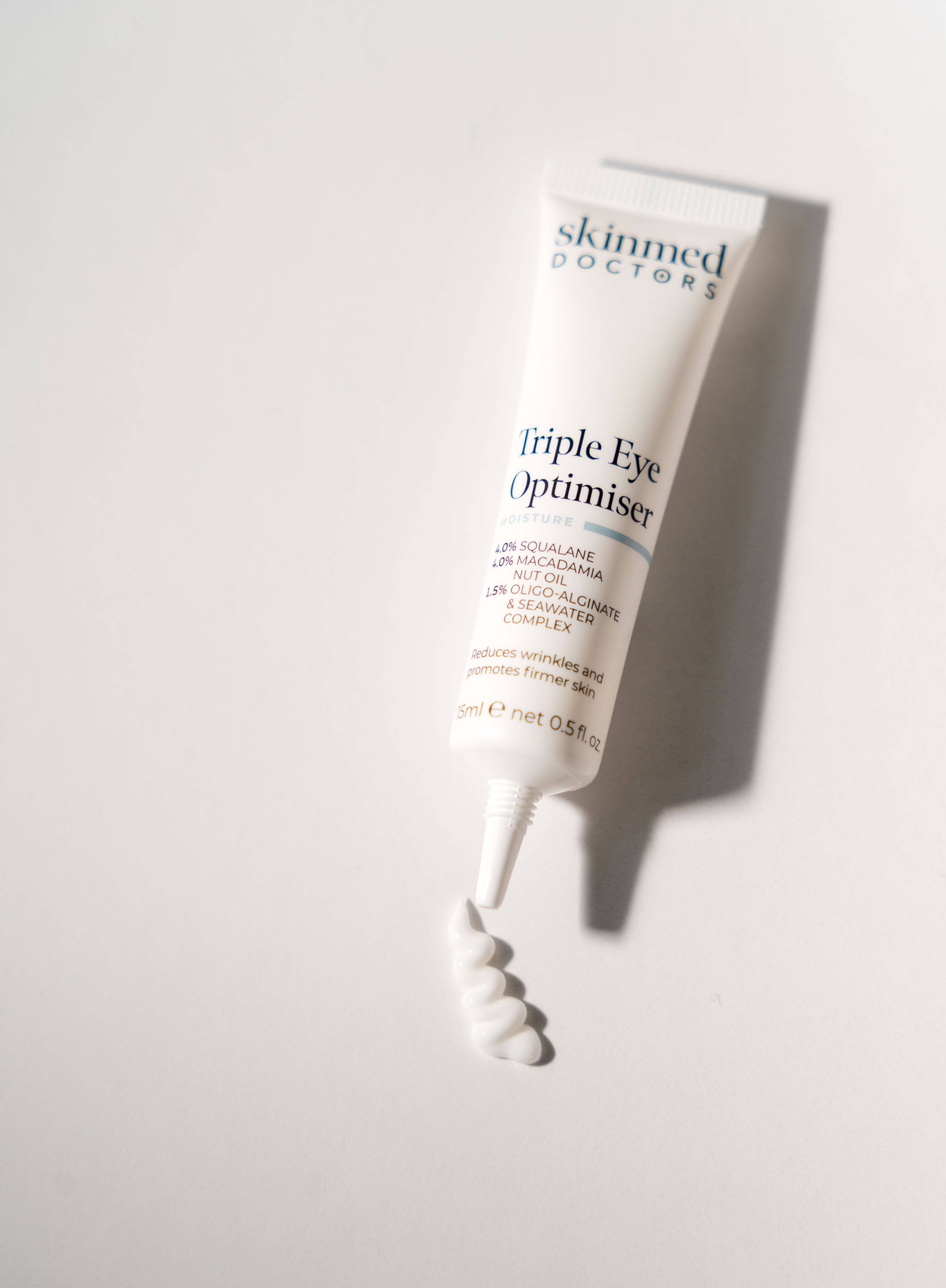 Der Triple Eye Optimiser mit Squalan und Macadamianussöl verbessert den Feuchtigkeitsgehalt der Haut und reduziert feine Linien und Fältchen. Der Oligo-Alginat- und Meerwasserkomplex hilft die Kollagenfasern zu stimulieren, um die Haut zu straffen – für ein sofort spürbar strafferes Aussehen.