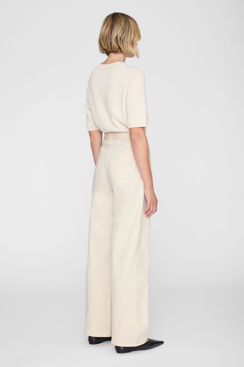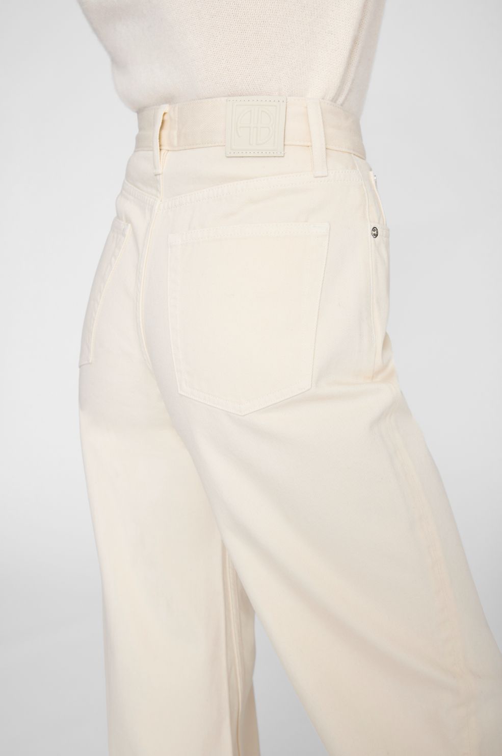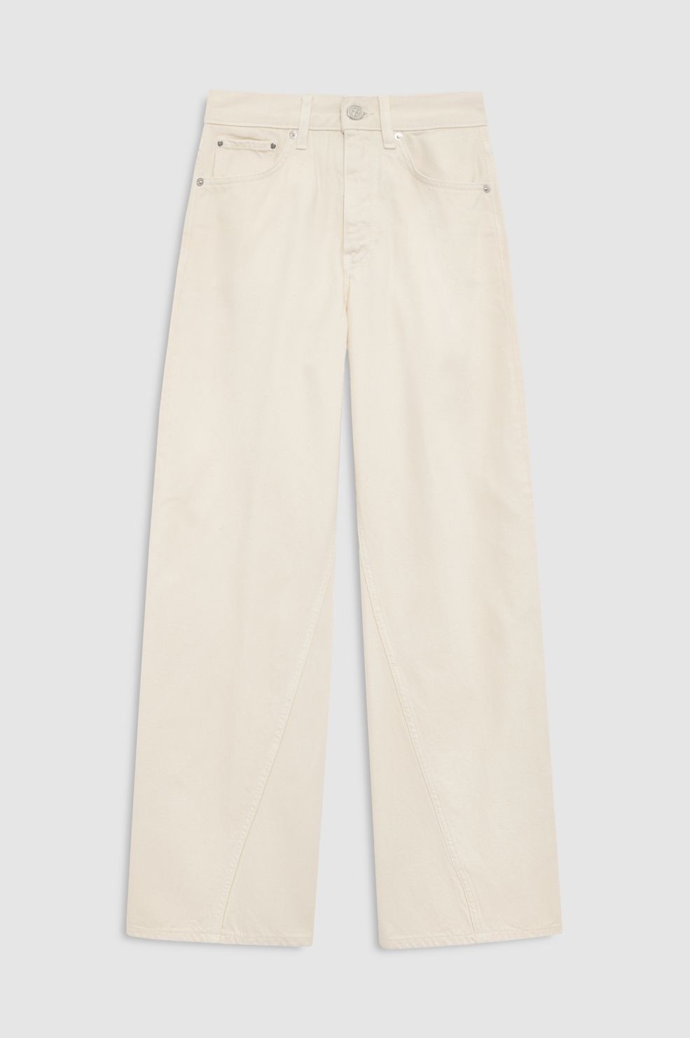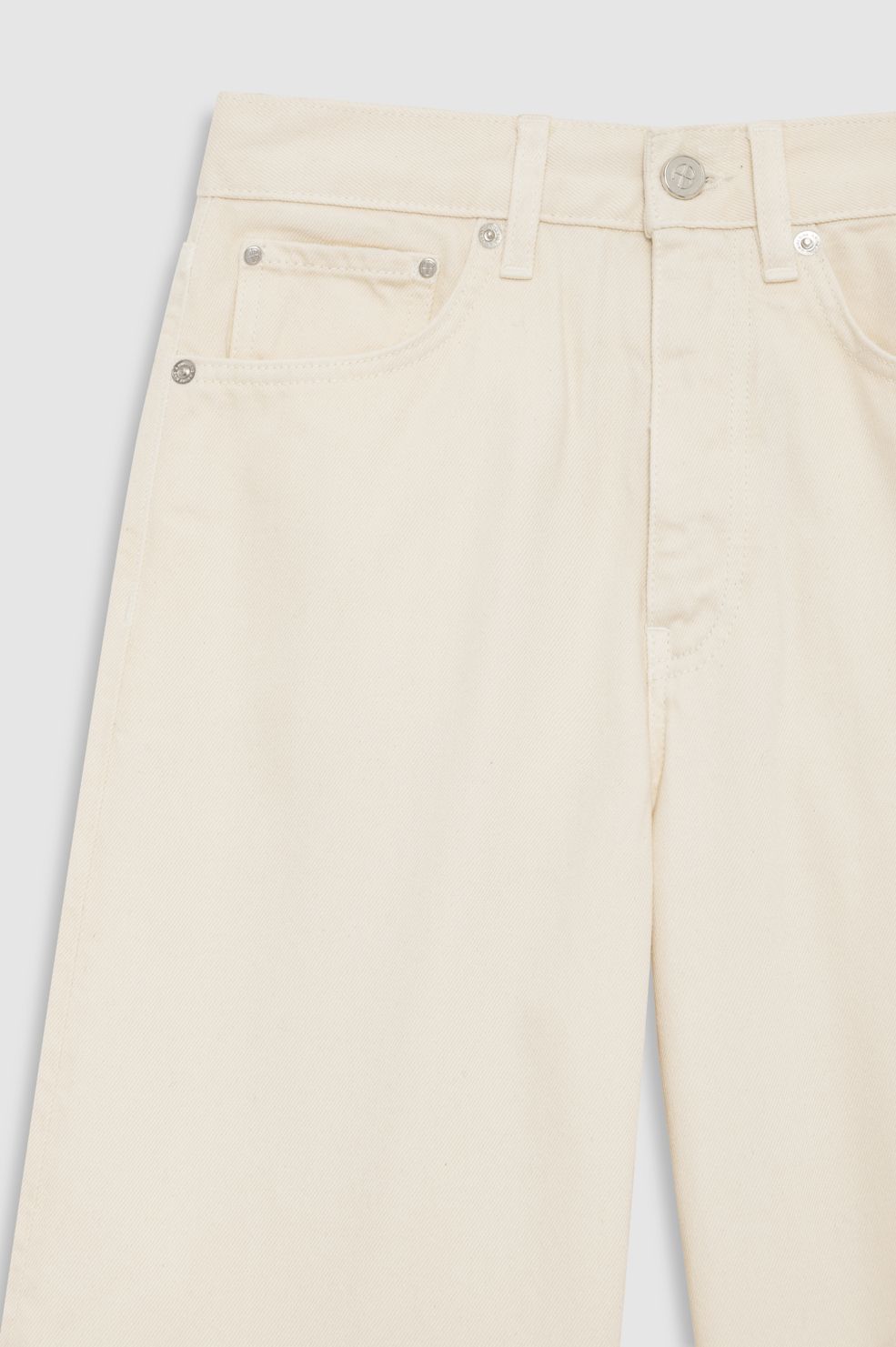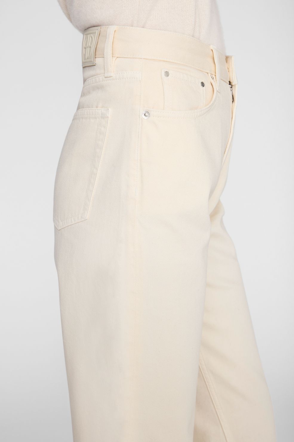 Die Brie Jeans zeichnet sich durch eine lässige Silhouette aus, die aus leichtem bis mittelschwerem, festem Baumwolldenim ohne Stretch gefertigt ist. Sie besticht durch einen weichen Griff, einen leichten Fall und ist in einer cremefarbenen Waschung mit dezenter Aderung gehalten.