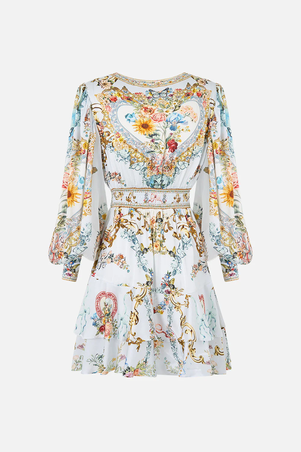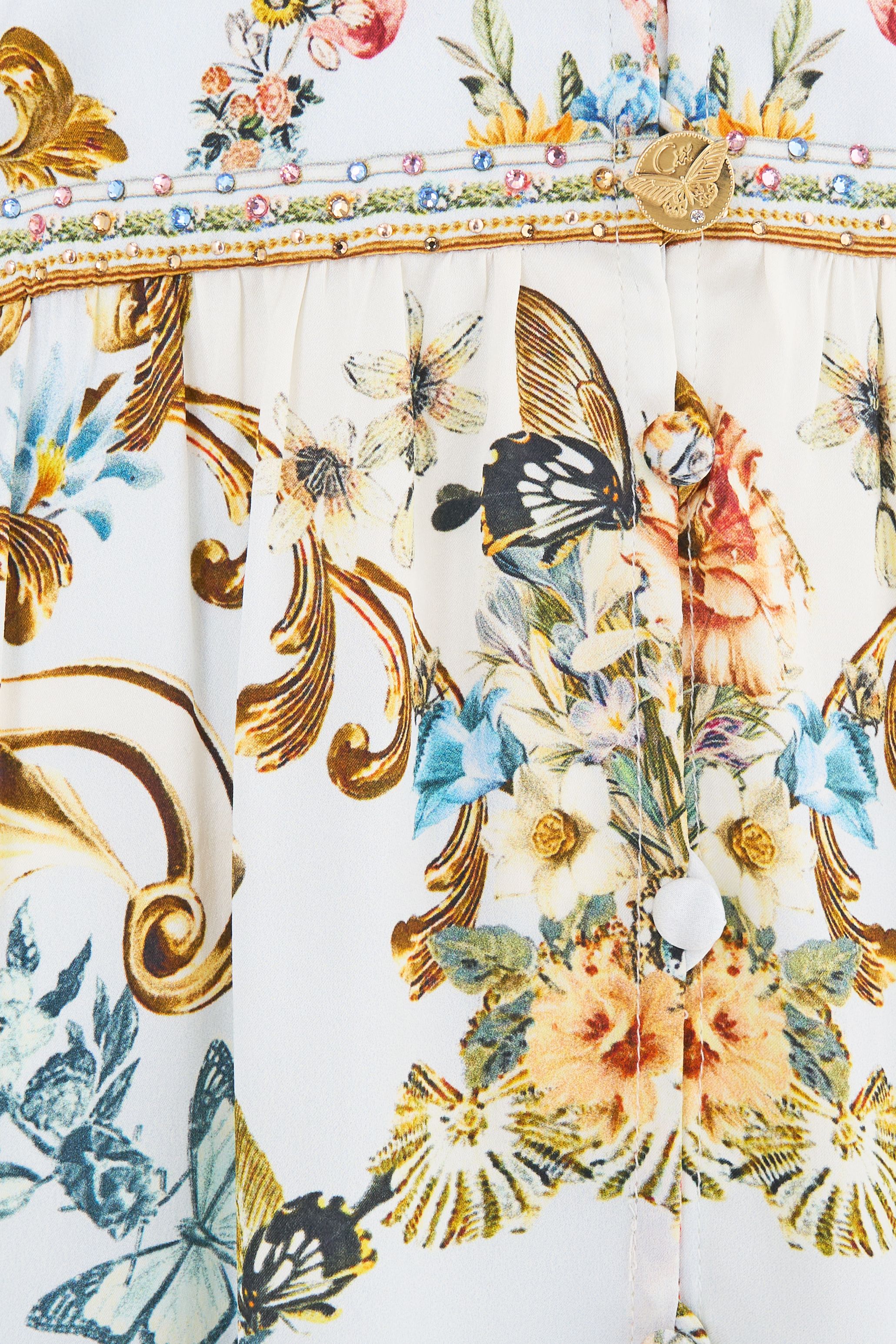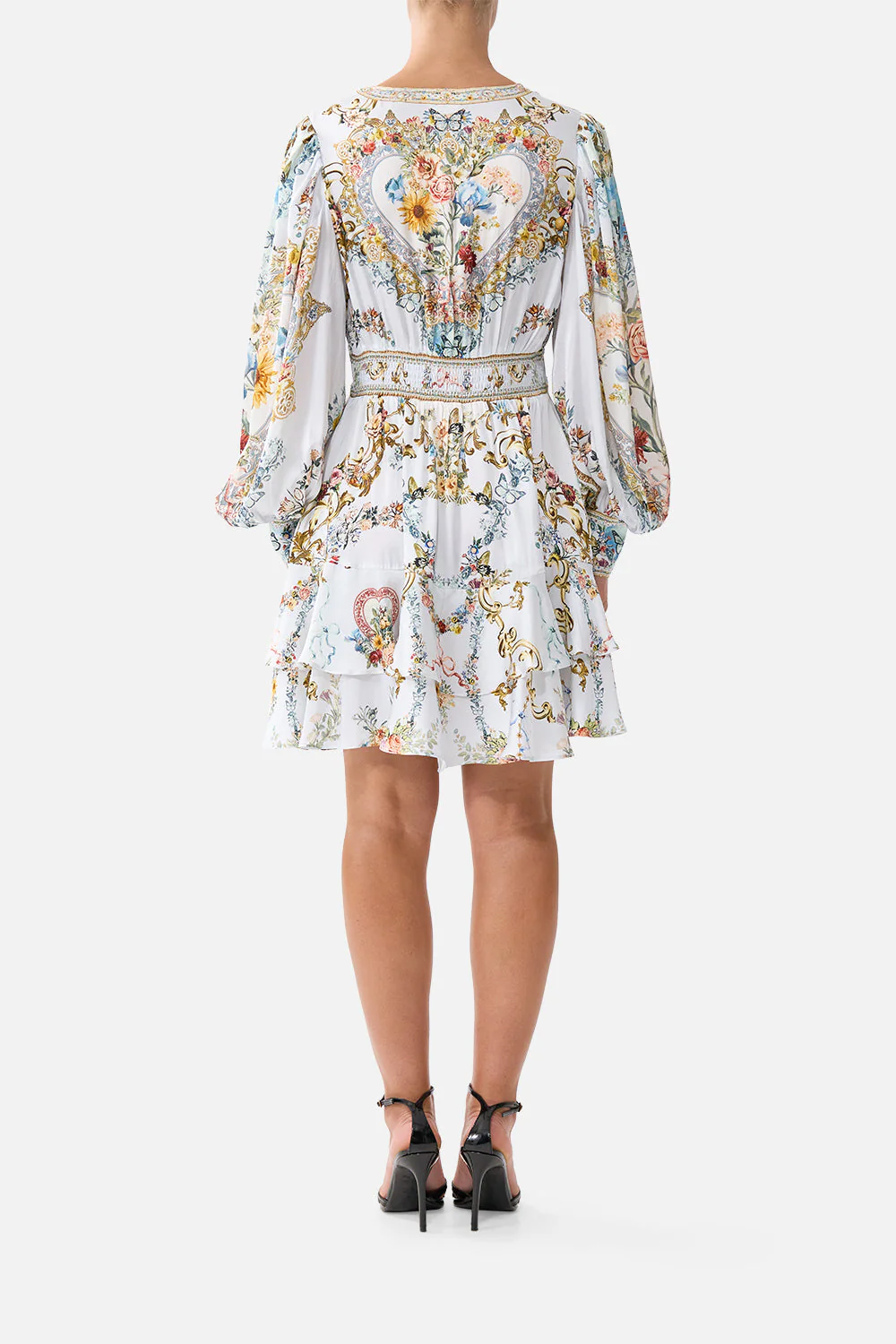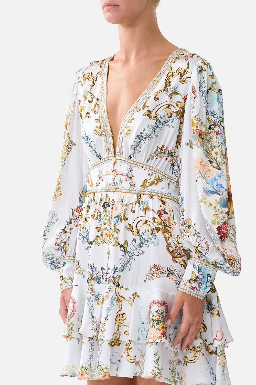 Das Seville Sweetheart Button Front Rrill Dress ist ein handgefertigtes Kleid, entworfen von unseren hauseigenen Kunsthandwerkern. Gefertigt aus einem exklusiven Print in limitierter Auflage, besticht unser kurzes Seidenkleid in A-Linie durch einen V-Ausschnitt, der in einen formgebenden Bund mit elastischem Rücken für optimalen Tragekomfort übergeht. Die Knopfleiste und die zarten Rüschen verleihen ihm eine feminine Note.
