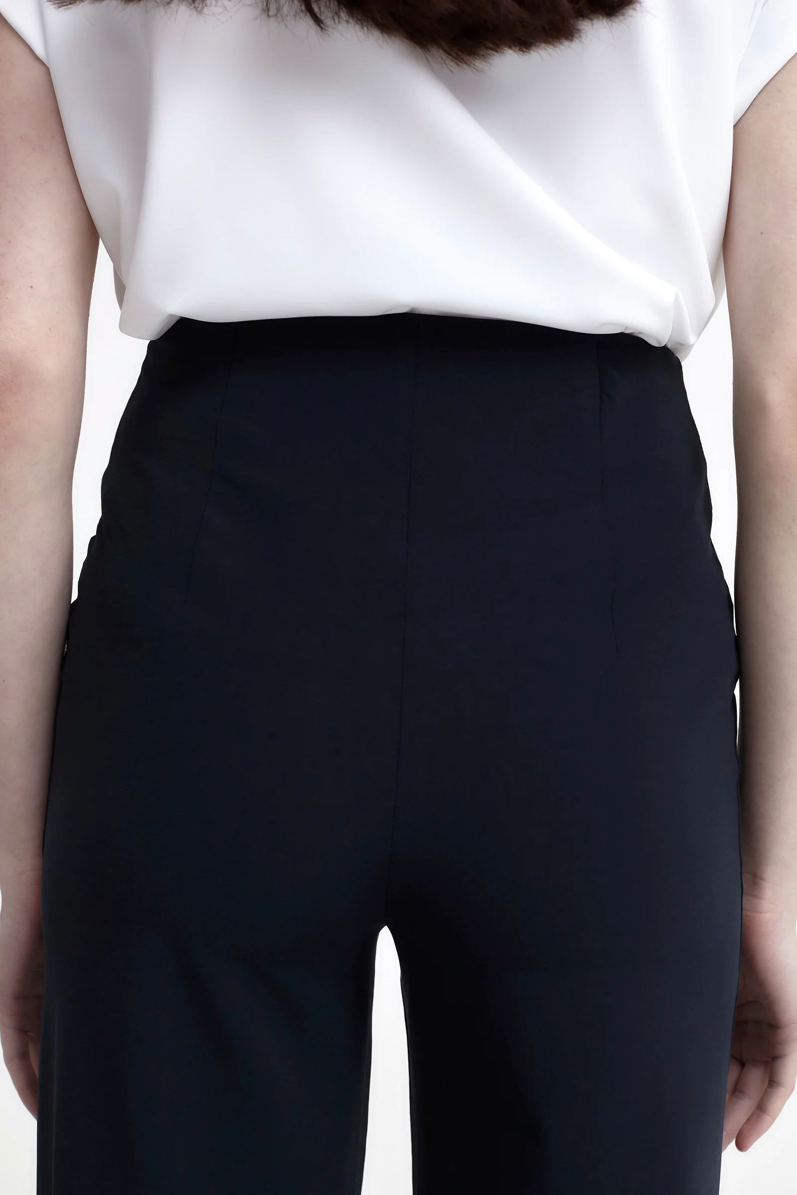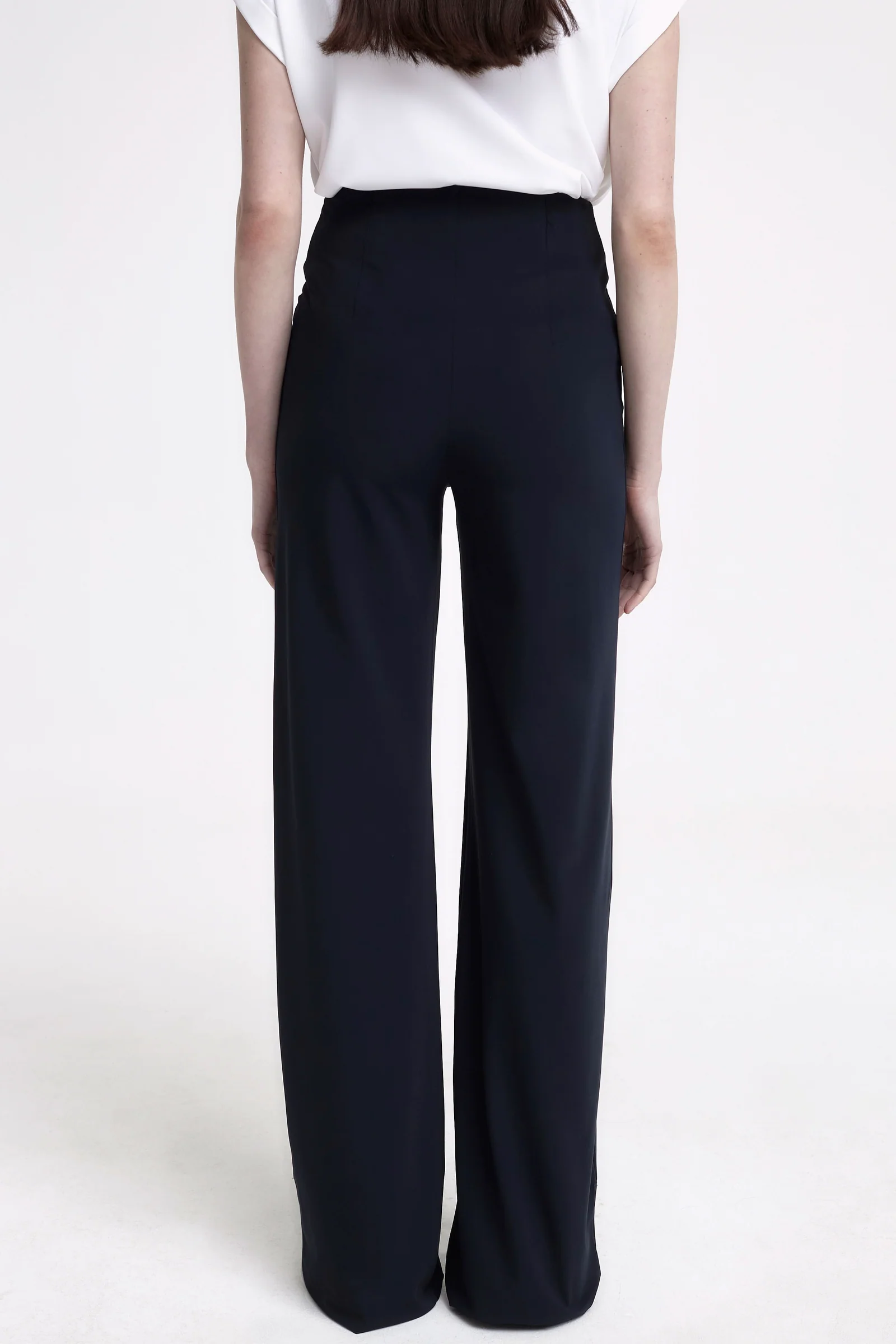 - Schmale Passform an der Hüfte, weites Bein