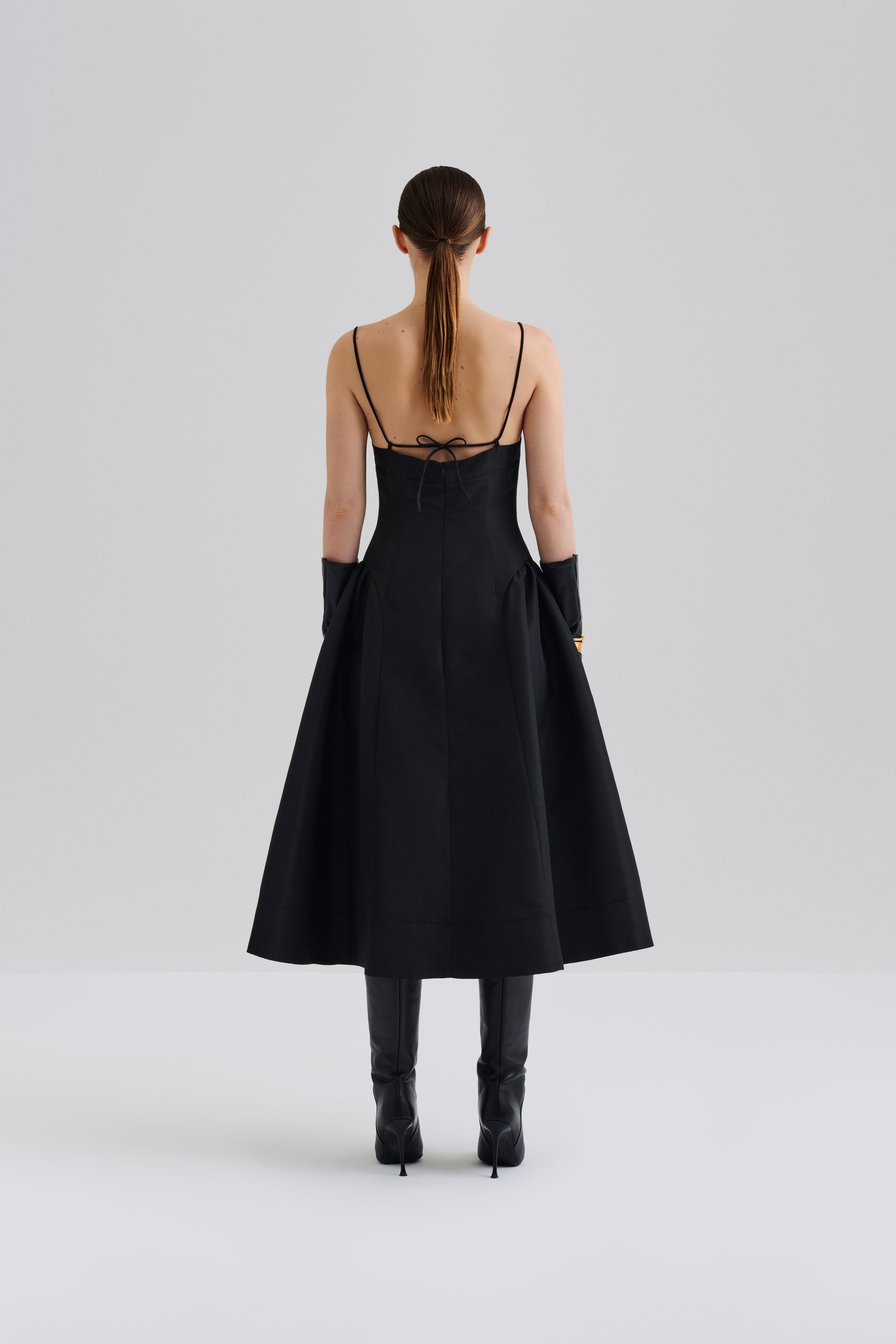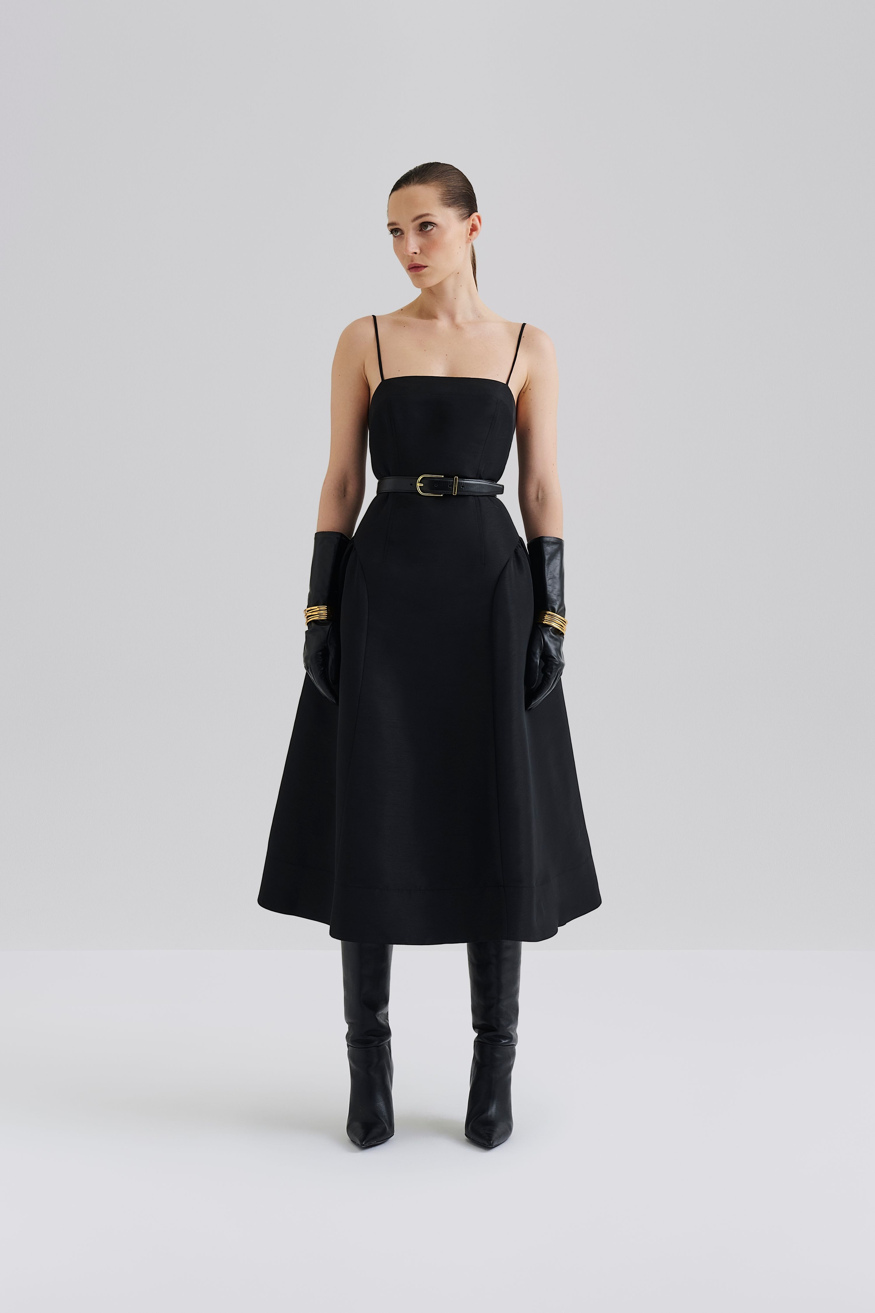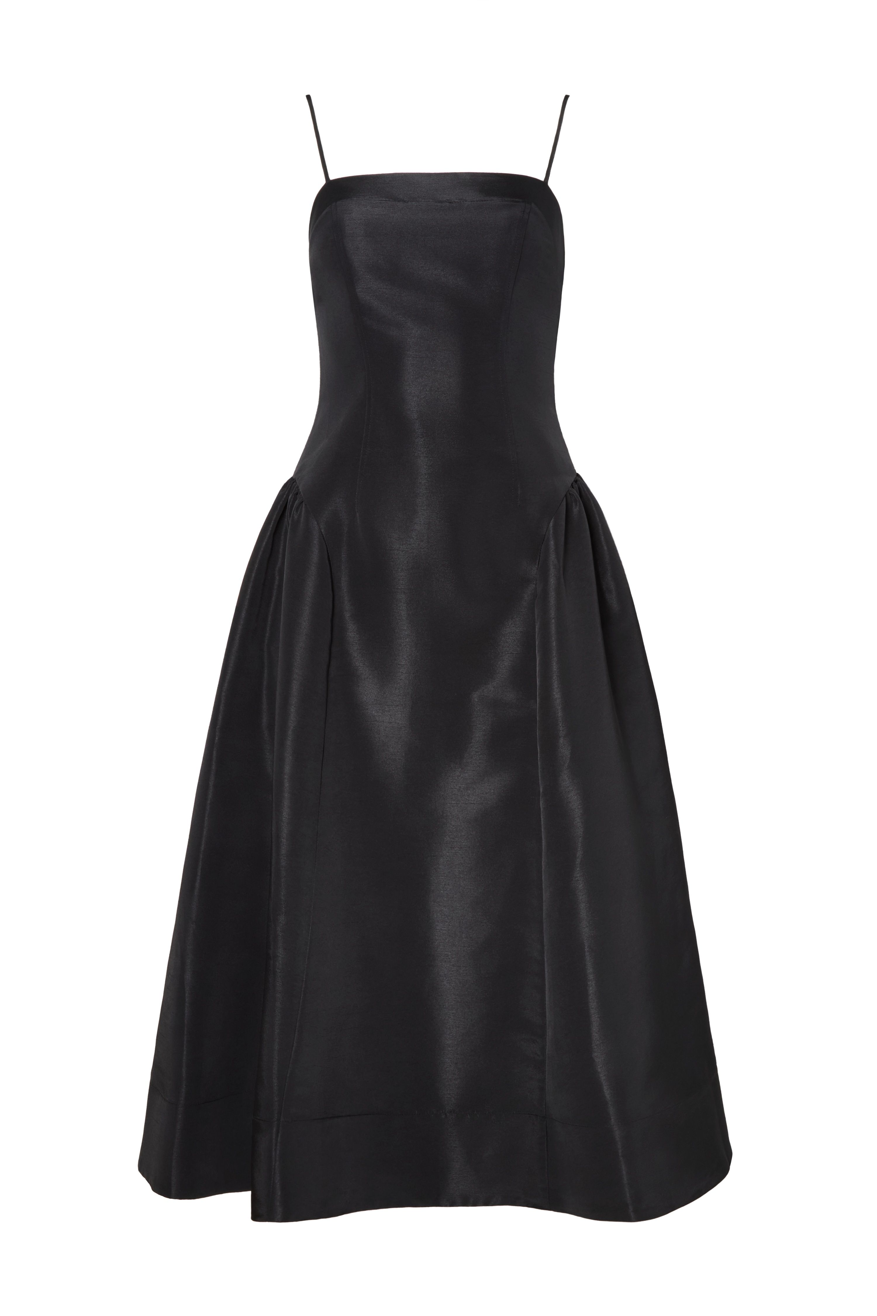 Midikleid mit Detail an der Hüfte und Spaghetti-Trägern.