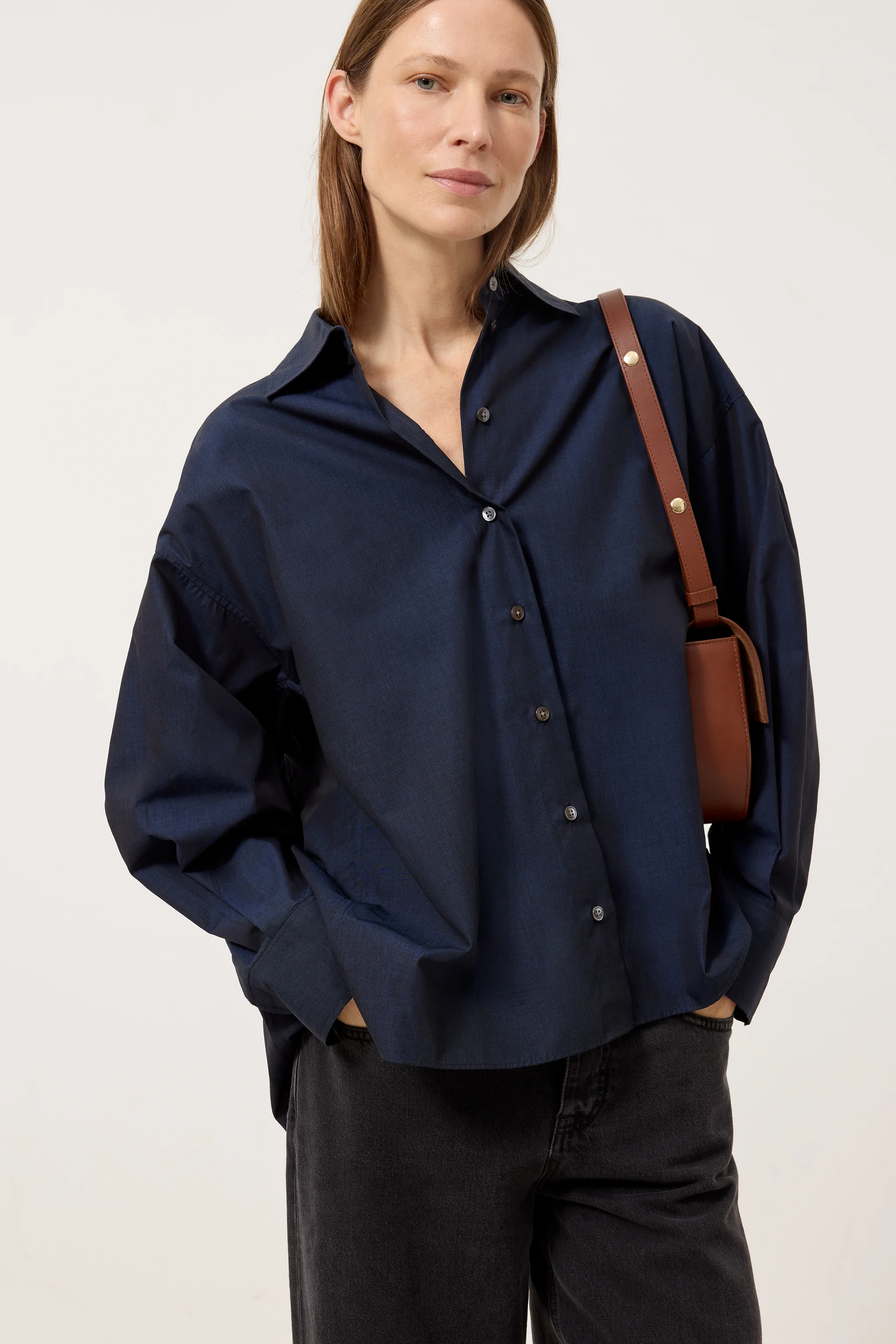 Unsere Cape-Bluse zeigt sich in entspannter Form mit klassischer Länge und tiefer Schulterpartie. Die hochwertige, leichte Fil-à-Fil-Qualität aus reiner Baumwolle hat einen cleanen Look und eine feine Struktur. Mit tonalen Perlmuttknöpfen. In Portugal von unseren Expert:innen für Hemden und Blusen gefertigt.