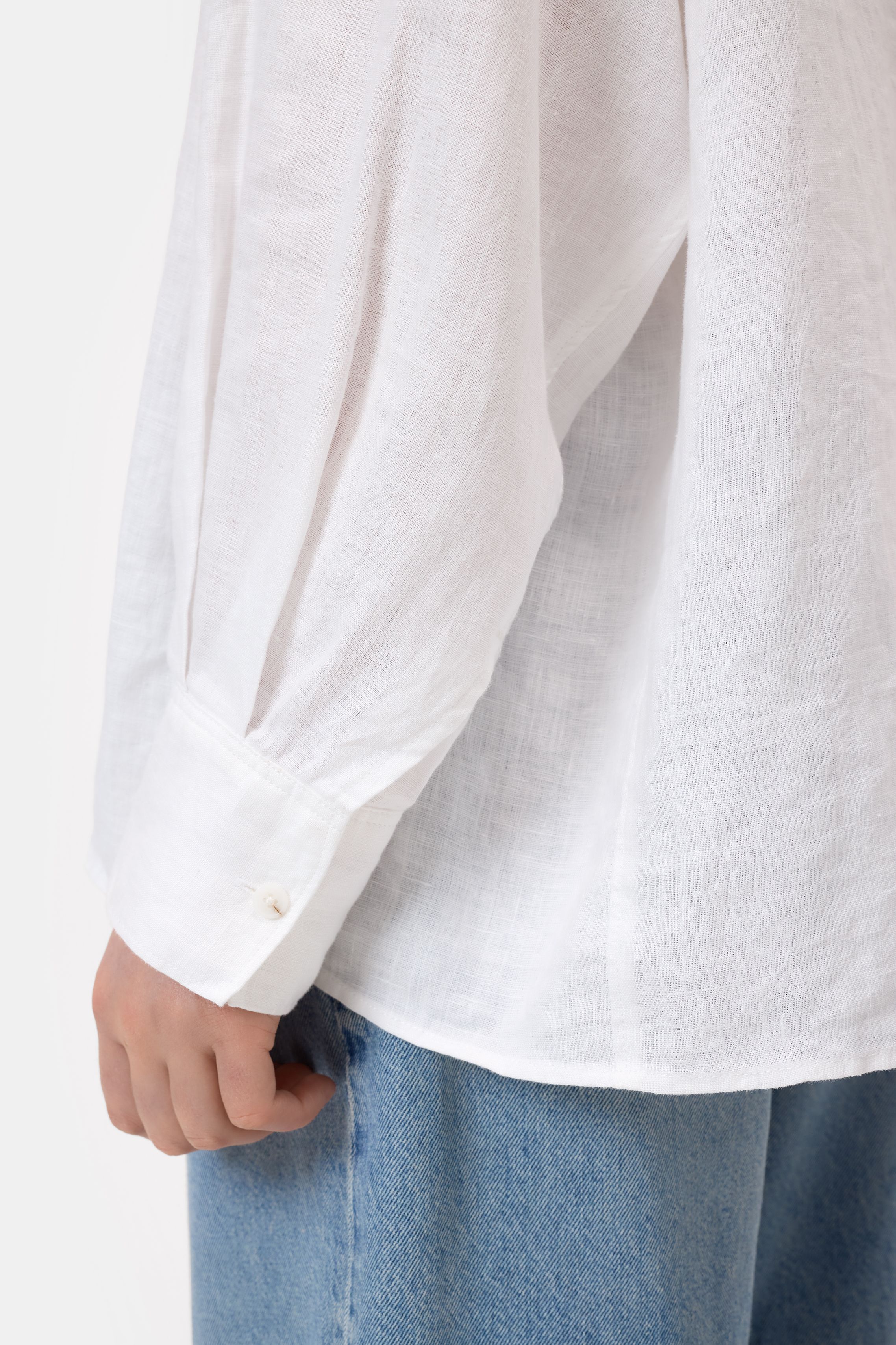 Unser Cape-Shirt besteht aus hochwertigem Leinen mit einem ungewaschenem Finish für einen zeitlosen Look. Der Schnitt bietet eine entspannte Silhouette mit regulärer Länge. Besondere Details sind neben den leicht überschnittenen Schultern die Perlmuttknöpfe an der Frontleiste und an den Manschetten. Die breite Box-Falte an der Rückpasse rundet das Design ab.