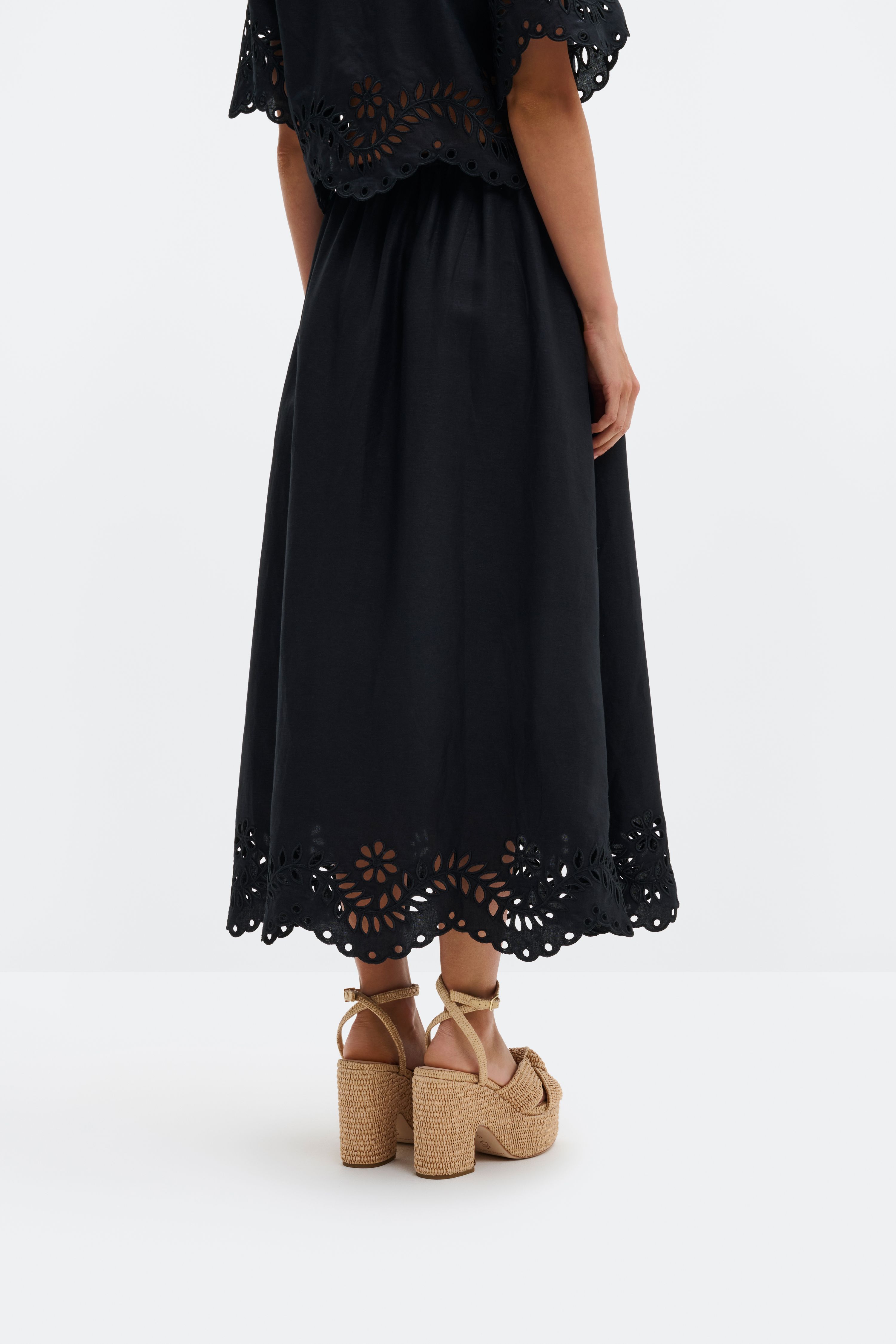 Maxirock aus Leinenmischung mit Broderie Anglaise und Muschelsaum.