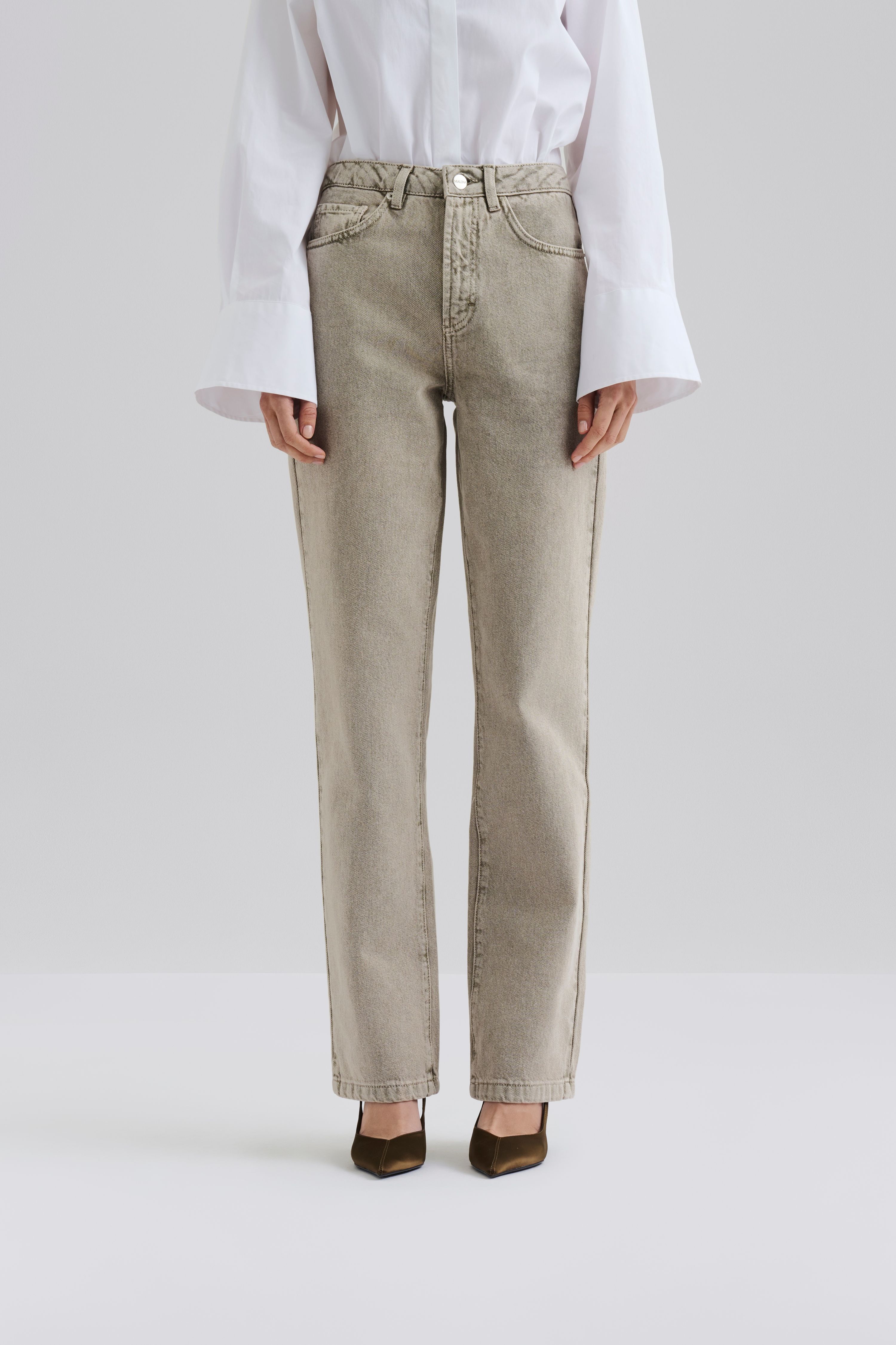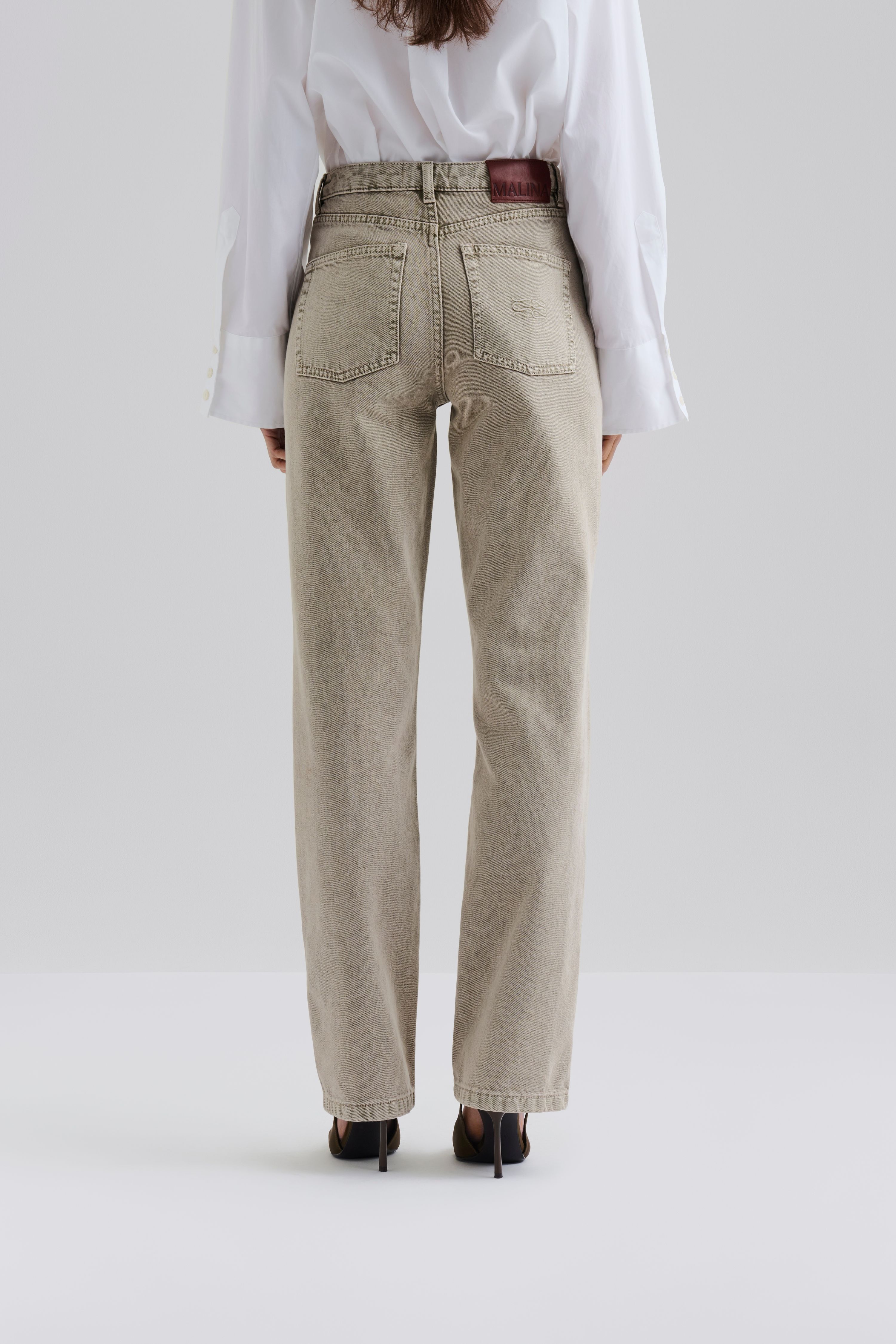 Jeans mit geradem Bein, hoher Taille, Gürtelschlaufen und fünf Taschen. Besticktes Malina-Symbol auf der Gesäßtasche.