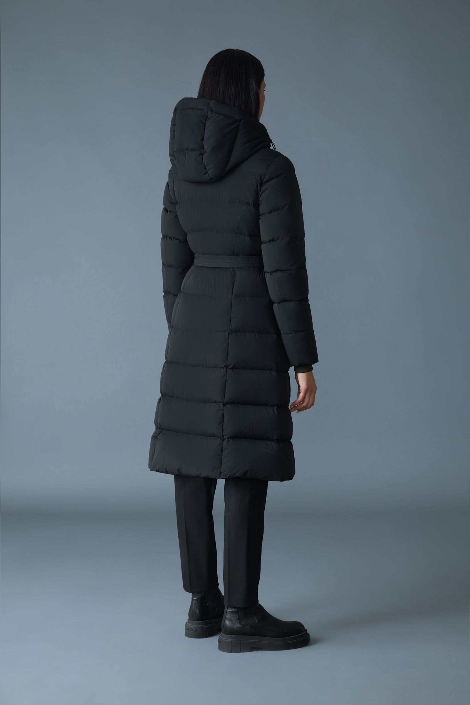 - Recycelter Daunenmantel mit Gürtel