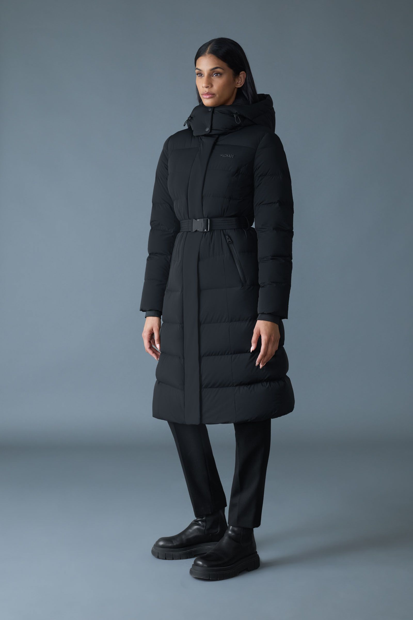 Der federleichte Damen-Daunenmantel CORALIA aus recycelten Daunen mit Kapuze und verstellbarem Gürtel für optimalen Tragekomfort ist maschinenwaschbar, wasserabweisend und mit Sturmbündchen sowie einem per Kordelzug verstellbaren Sturmschirm mit gepolstertem Kragen ausgestattet. In der Innentasche und den Eingrifftaschen lassen sich wichtige Kleinigkeiten sicher verstauen. Dank seiner technischen Verarbeitung bietet er hervorragende Wärme und ist eine moderne Stilikone, die jedes Winteroutfit aufwertet.
