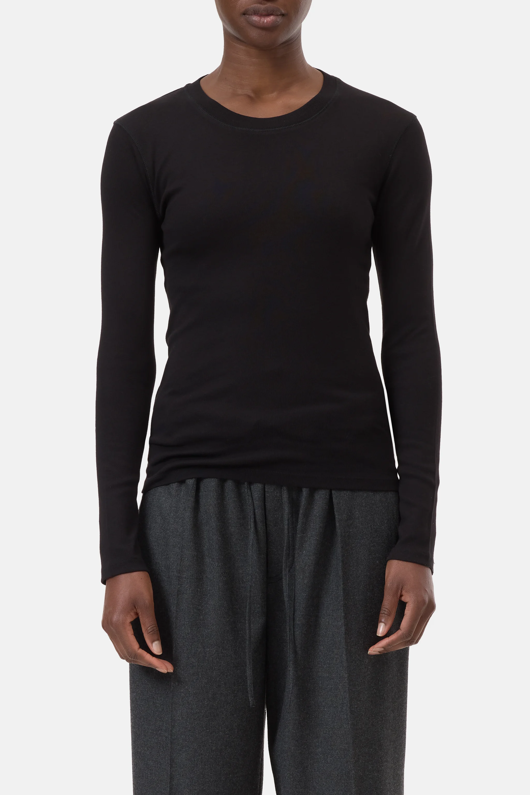 Das Langarmshirt ist aus einer weichen Baumwoll-Modal-Mischung gefertigt. Die fein gerippte Jersey Struktur mit Rundhalsausschnitt und geradem Saumabschluss runden das perfekte Basic-Shirt ab.