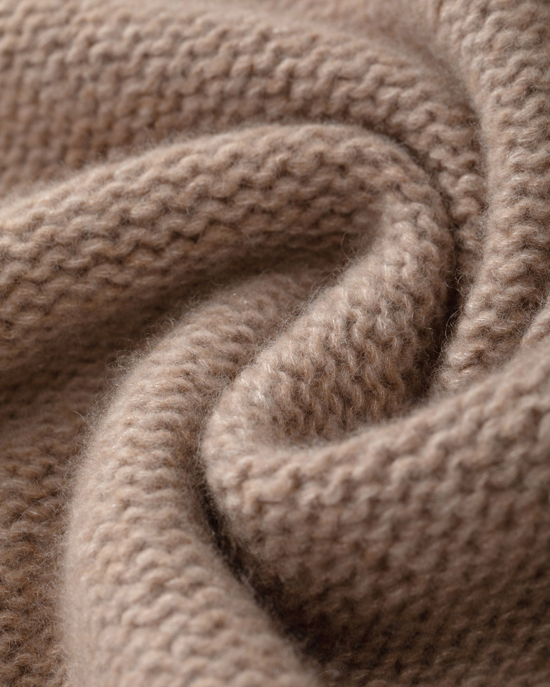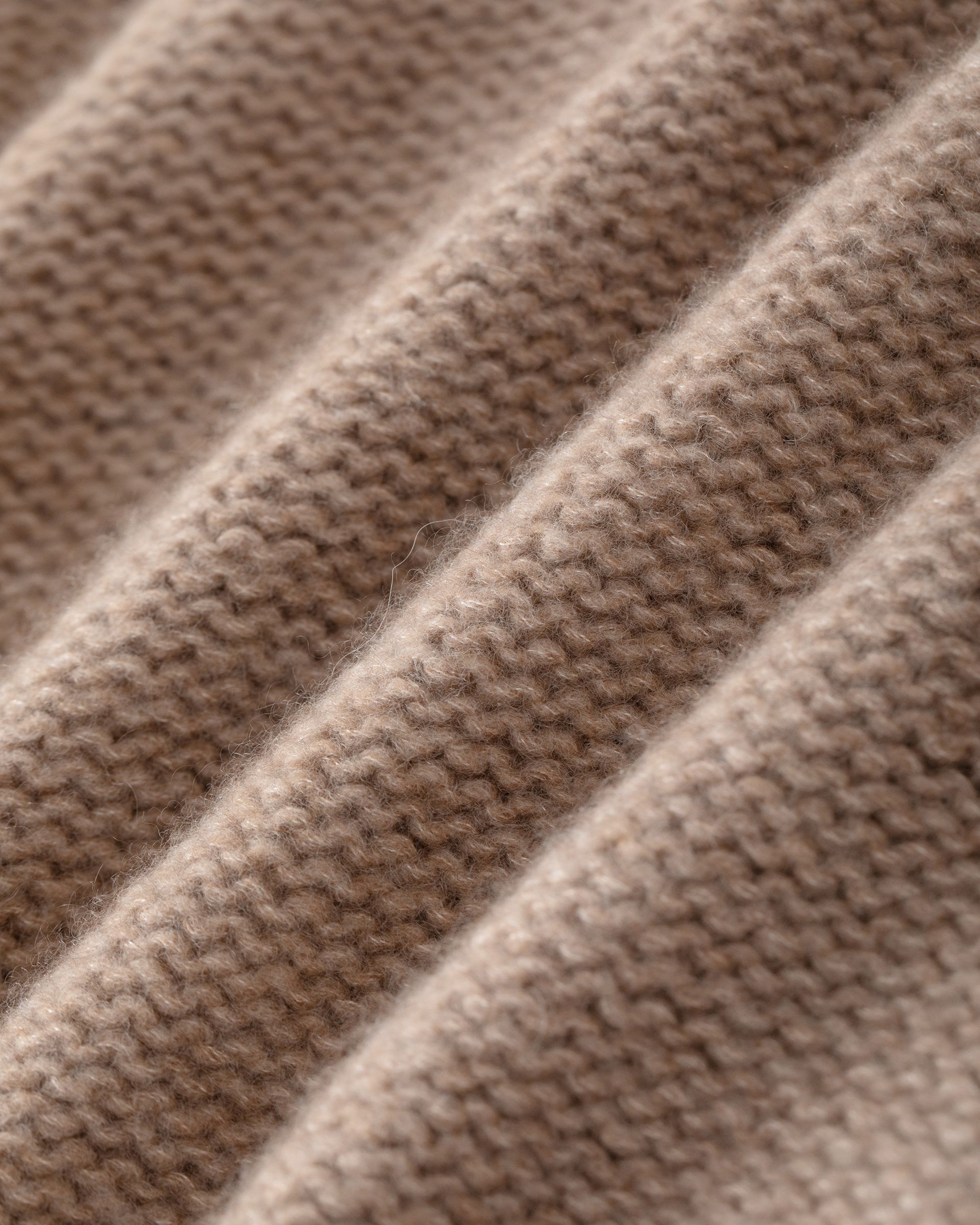 - Links gestrickt. Rippstruktur an den Seitennähten, Schulter und Ärmel