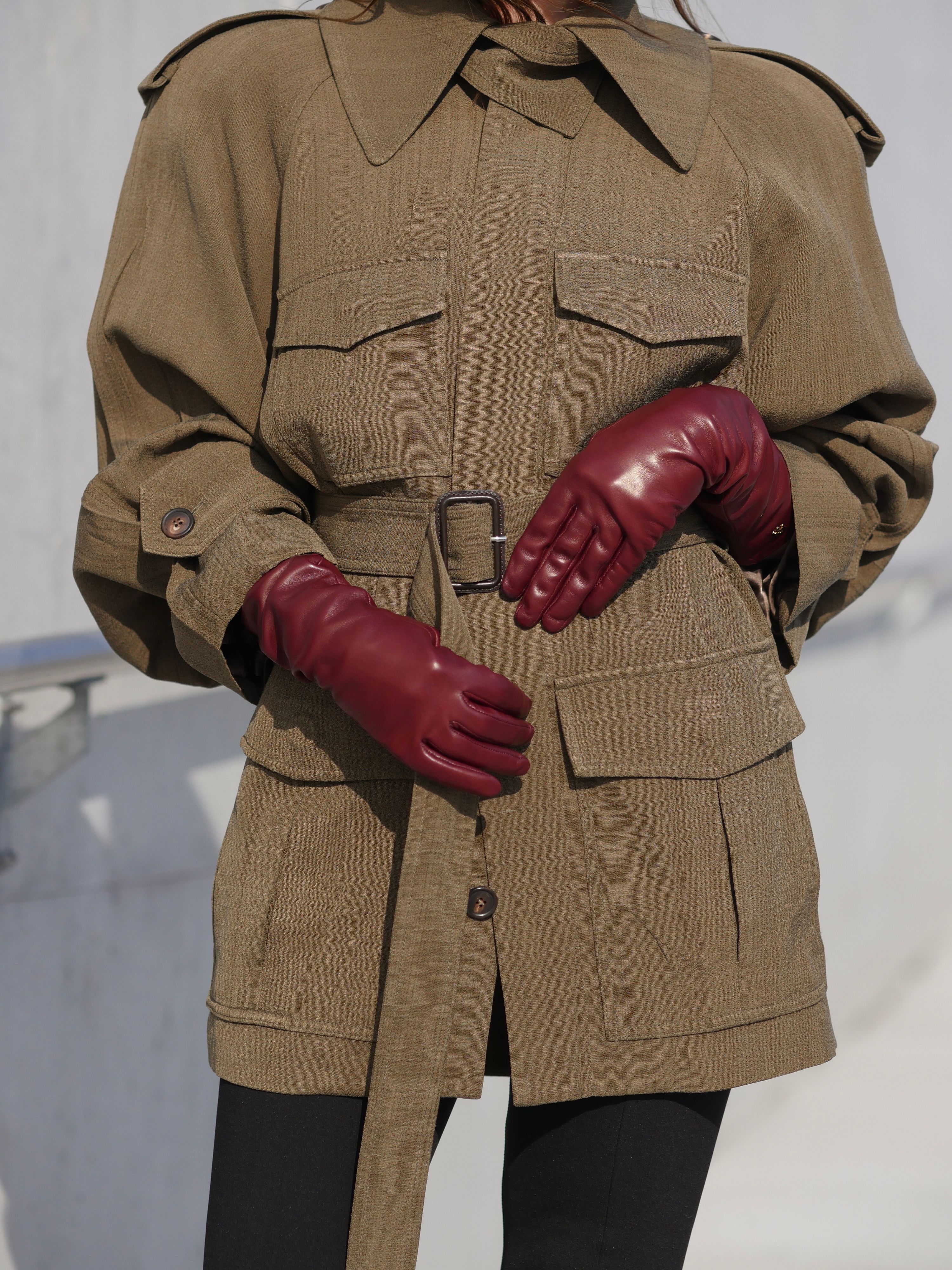 Die Handschuhe werden in Europa von Hand gefertigt und bestehen aus hochwertigem italienischem Nappaleder mit Seidenfutter. Dank ihres minimalistischen Designs, der Touchscreen-Funktion und der bequemen Passform könnten sie in dieser Saison – und für viele weitere – Ihr liebstes Accessoire werden.