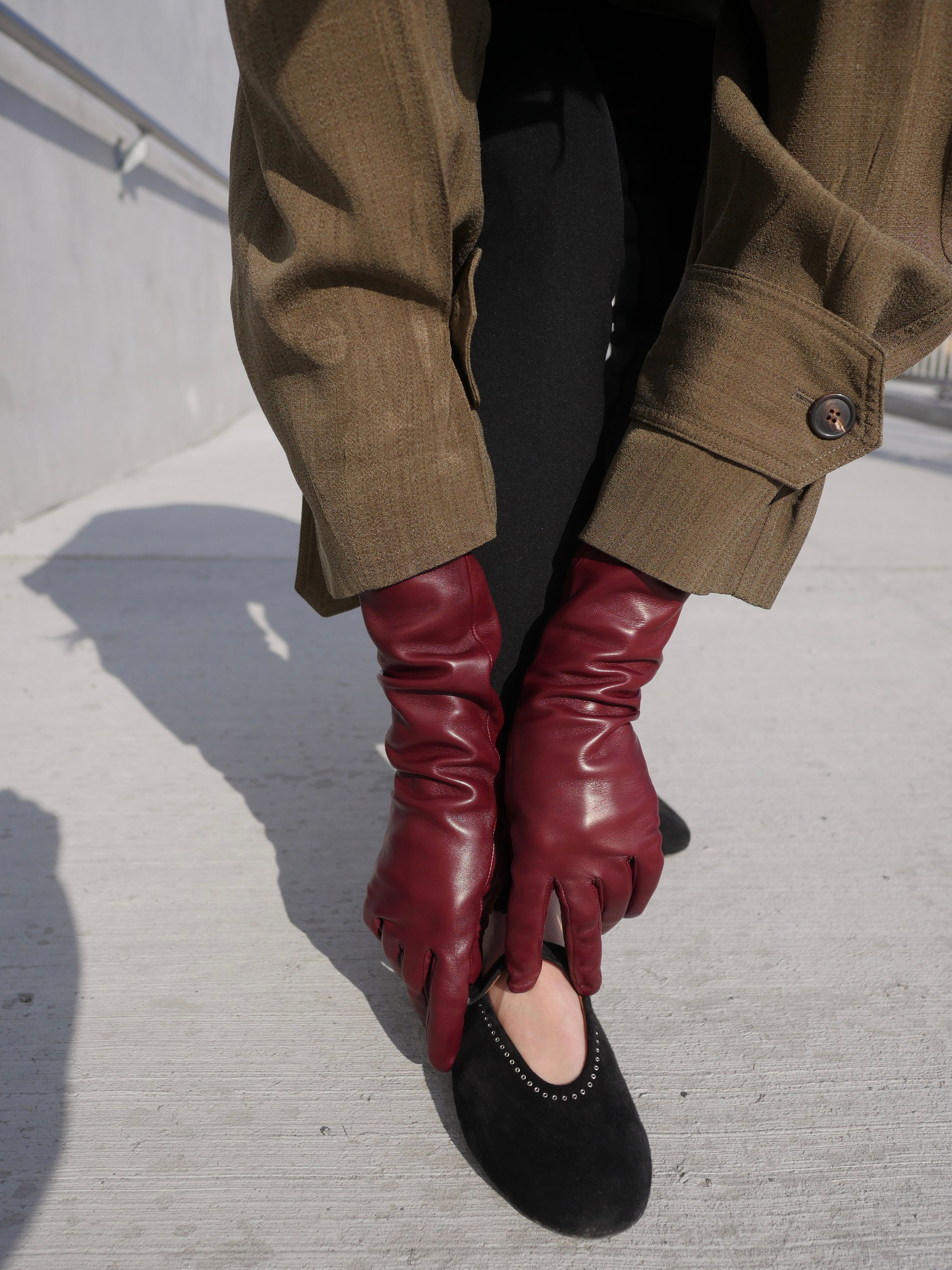 Beschreibung Essentials Long Vino Lederhandschuhe