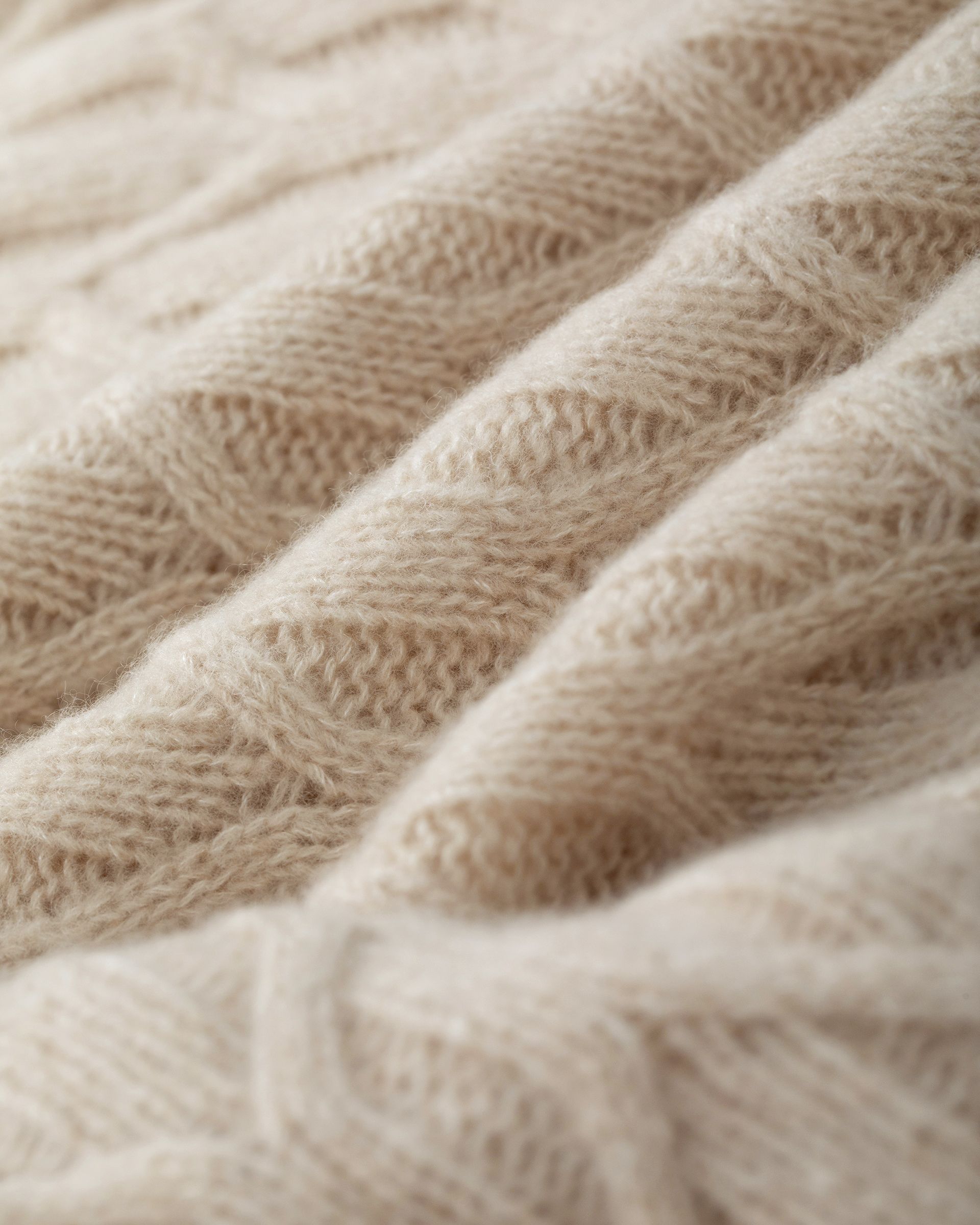 Dieser Pullover mit weichem Zopfmuster und weitem Stehkragen verbindet Gemütlichkeit mit moderner Lässigkeit. Tragen Sie ihn zu einer schmalen Lederhose und Ankle Boots für einen urbanen Chic oder kombinieren Sie ihn mit einer weiten Wollhose und Sneakers für einen entspannten, aber stilvollen Alltagslook.