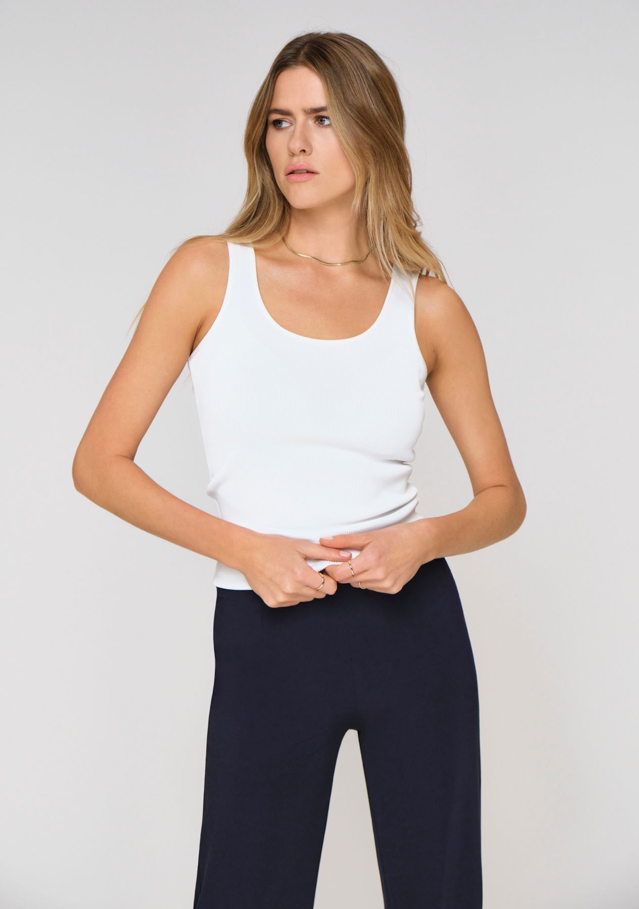 Das FLORIN Top ist aus geripptem, funktionellem Tencel gefertigt und eignet sich perfekt für jede Garderobe. Tragen Sie es mit einem INA KESS Blazer und einer eleganten Hose für einen raffinierten Tag und Nacht Look.