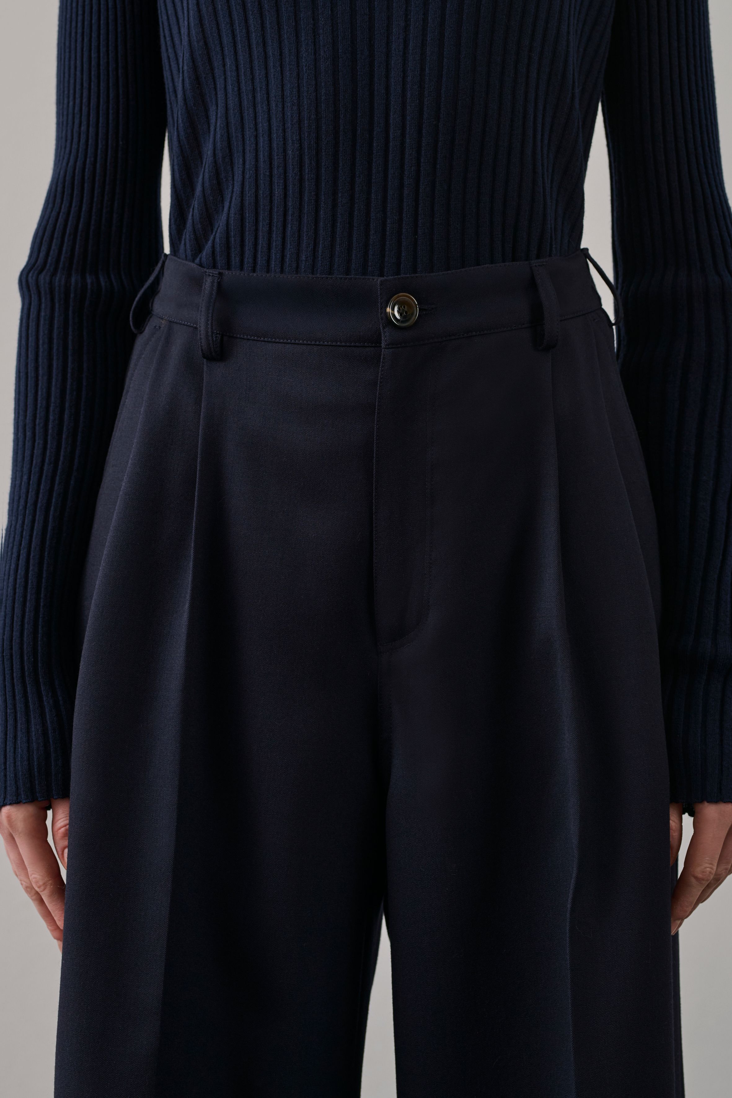 Taillierter Schnitt, weite Beine
