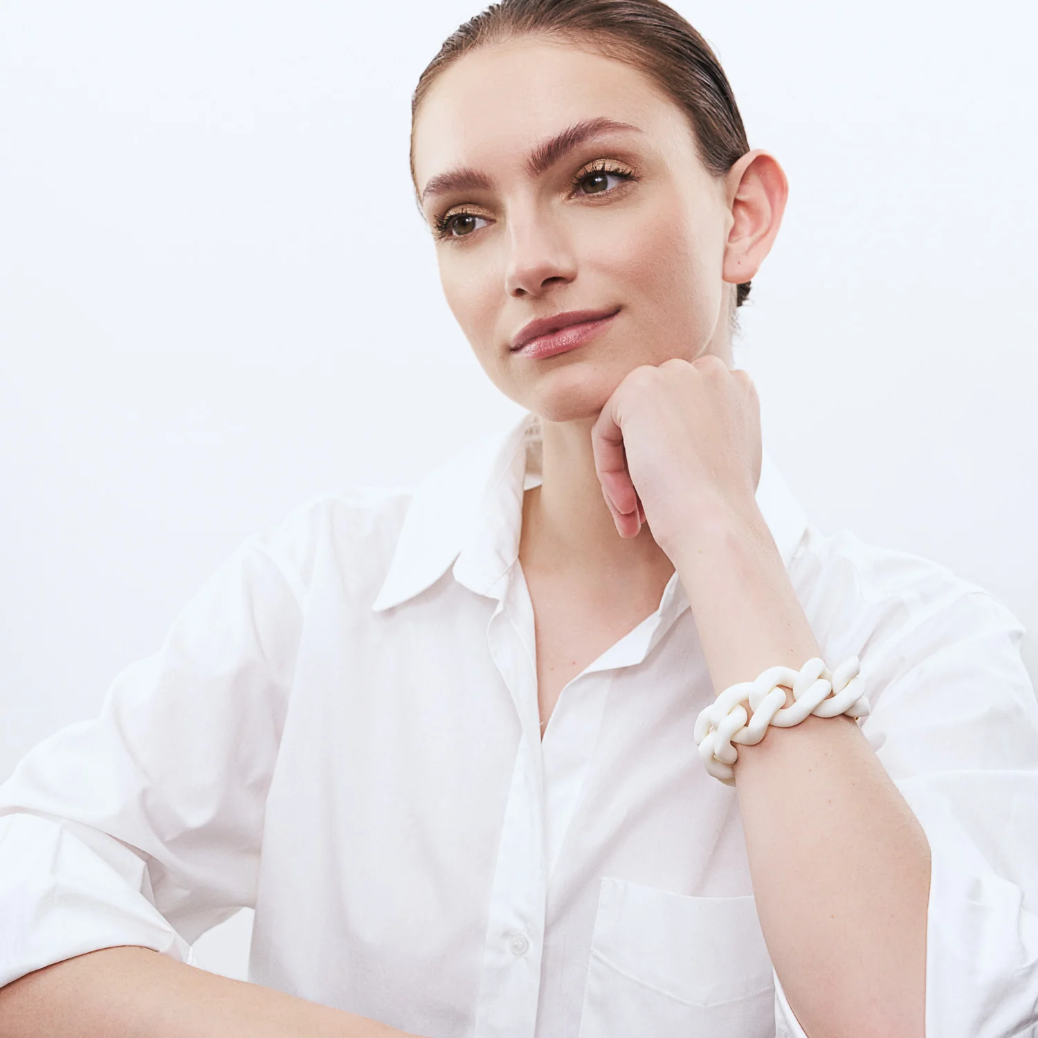 GO BIG - das GREAT Bracelet ist der Bestseller in XL und das Statement-Piece für jeden Look. Größer als die Acetat-Glieder des Flat Chain Bracelet, schmiegt sich das federleichte GREAT Bracelet um jedes Handgelenk. Dein ausdrucksstarkes Lieblingsaccessoire, das in allen Outfits deine Persönlichkeit und deinen Stil unterstreicht.