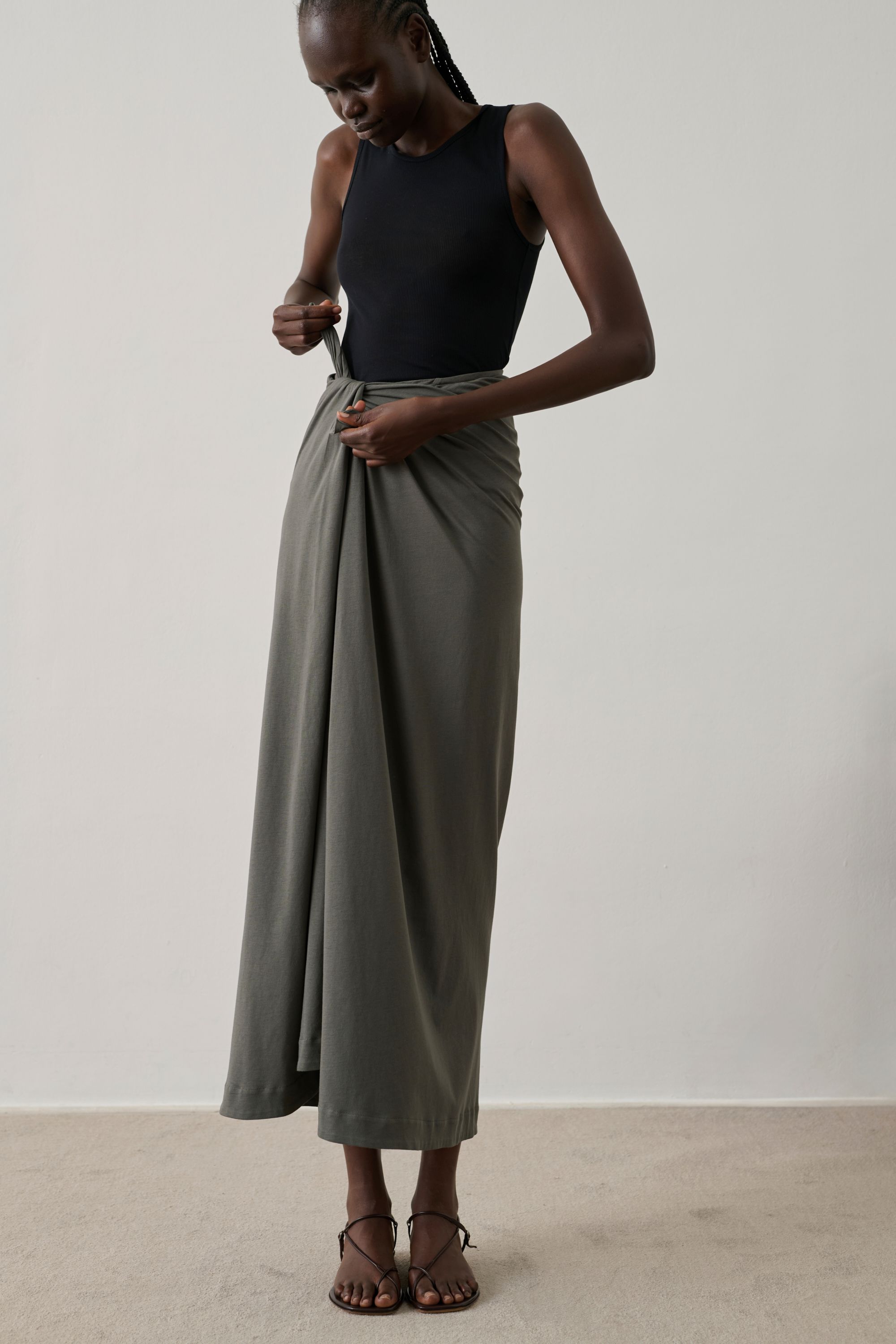- Gerader Schnitt, in der Taille gebunden