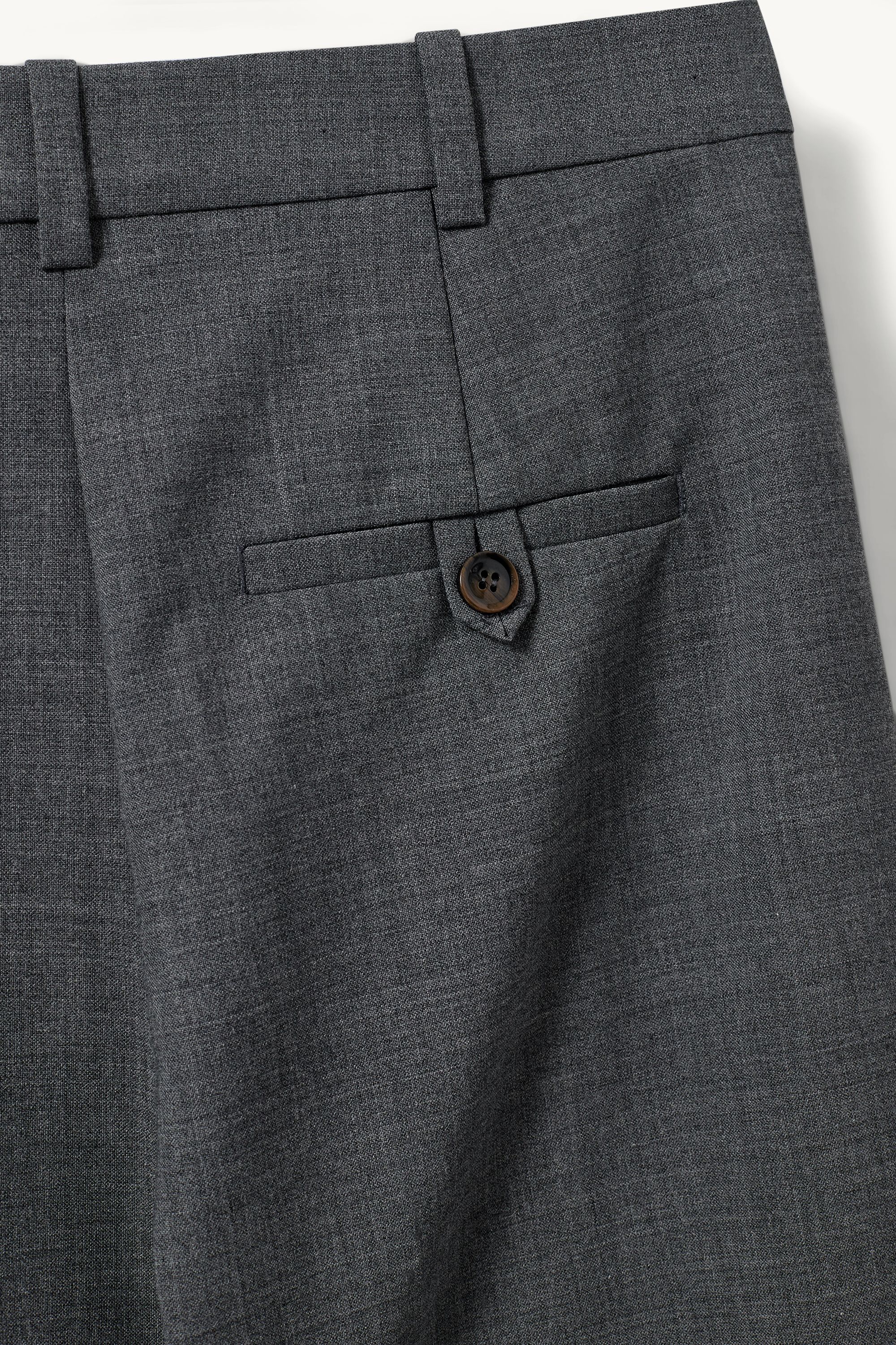 Die Grand-Hose ist eine hoch taillierte, maßgeschneiderte Hose mit weitem Bein und dezenten Seitenschlitzen am Saum.