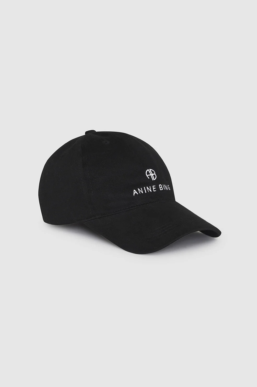 Die Jeremy Baseball Cap ist eine Baseballmütze aus Baumwolltwill in Schwarz. Es verfügt über einen verstellbaren Rückengurt für eine enge, bequeme Passform. Ein gesticktes ANINE BING-Logo in kontrastierenden weissen Nähten vorne in der Mitte dient als dezenter Branding-Touch.