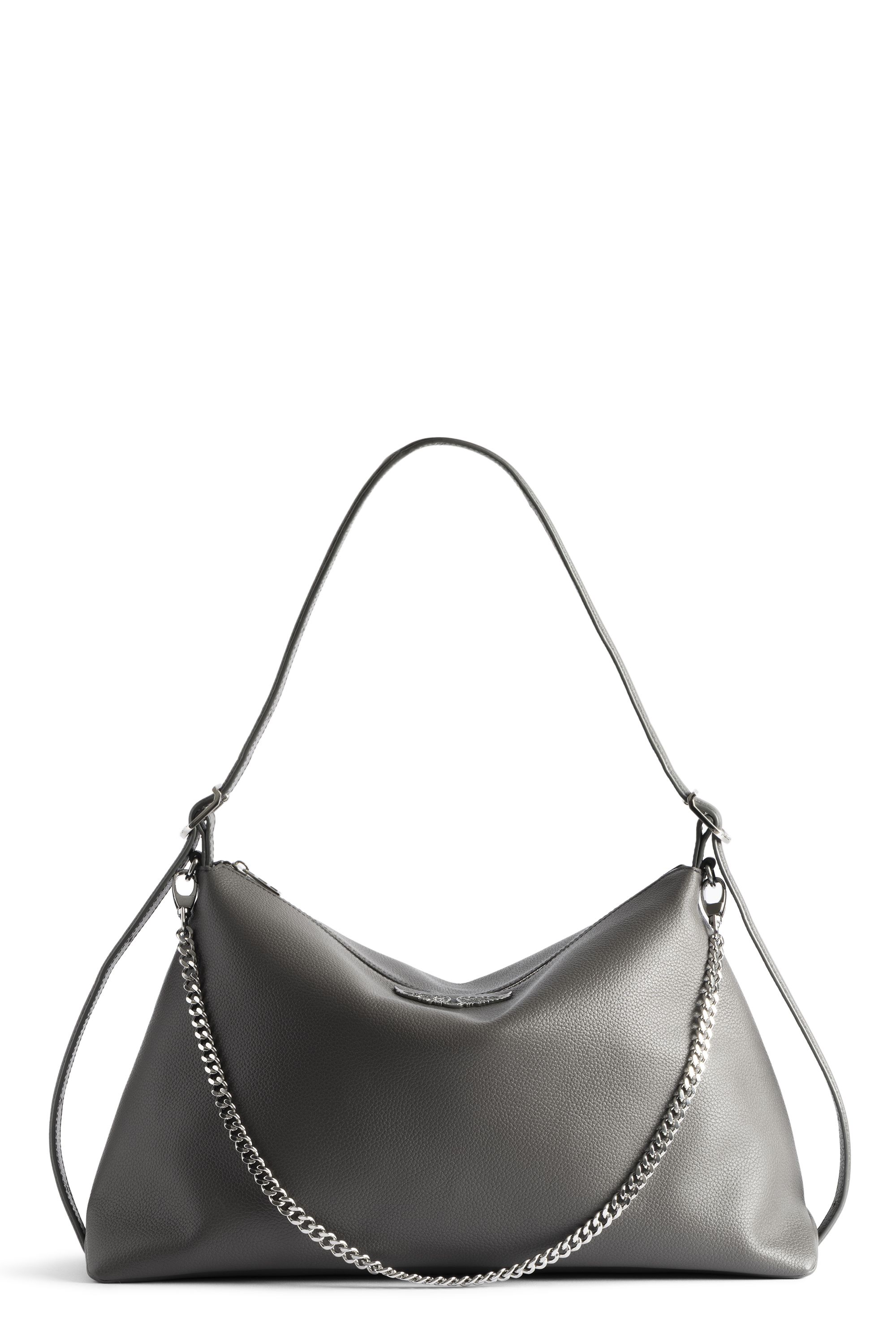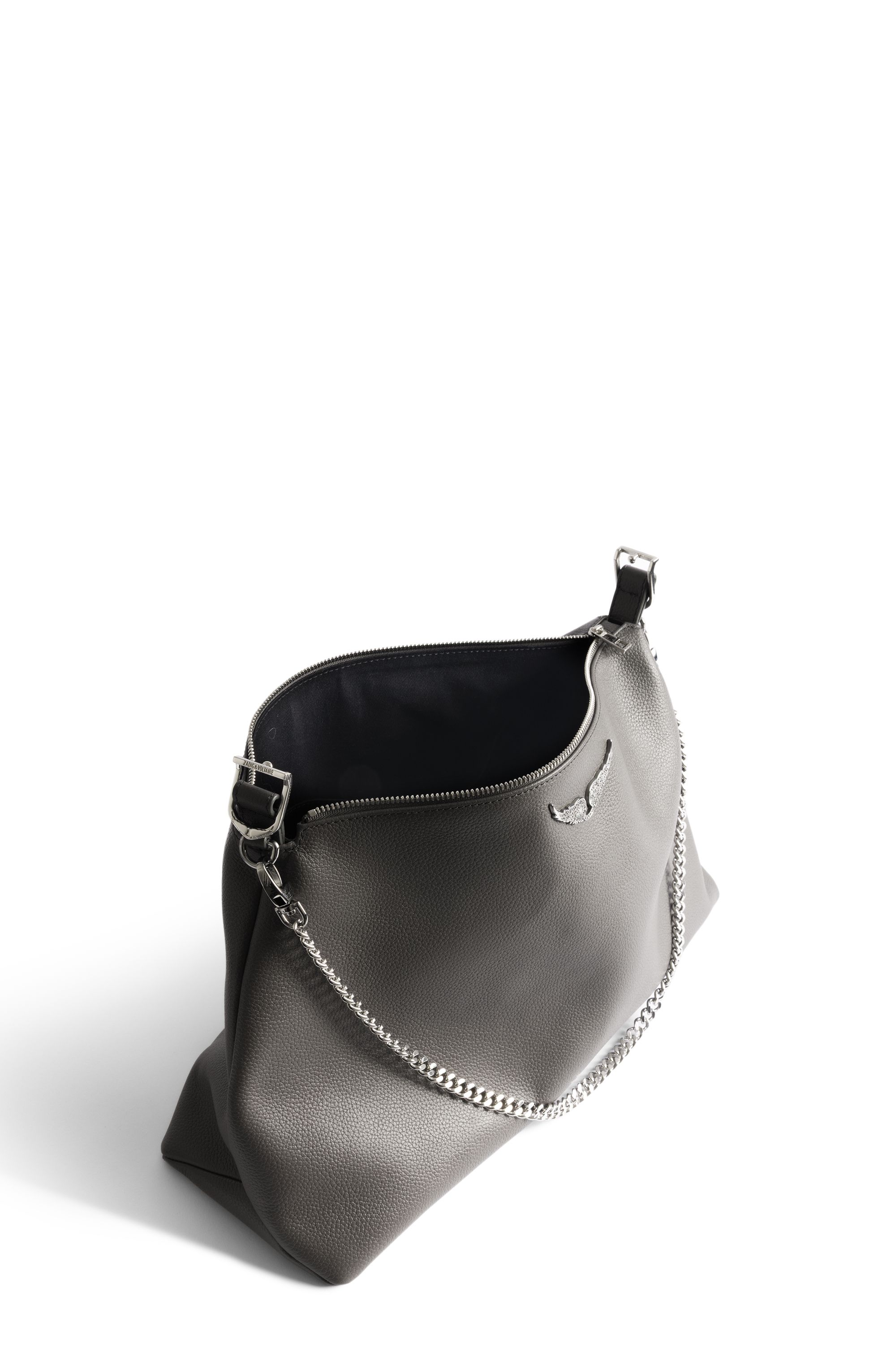 Weiche Tasche aus genarbtem Leder mit Kette und Flügel mit Strasssteinen verziert.