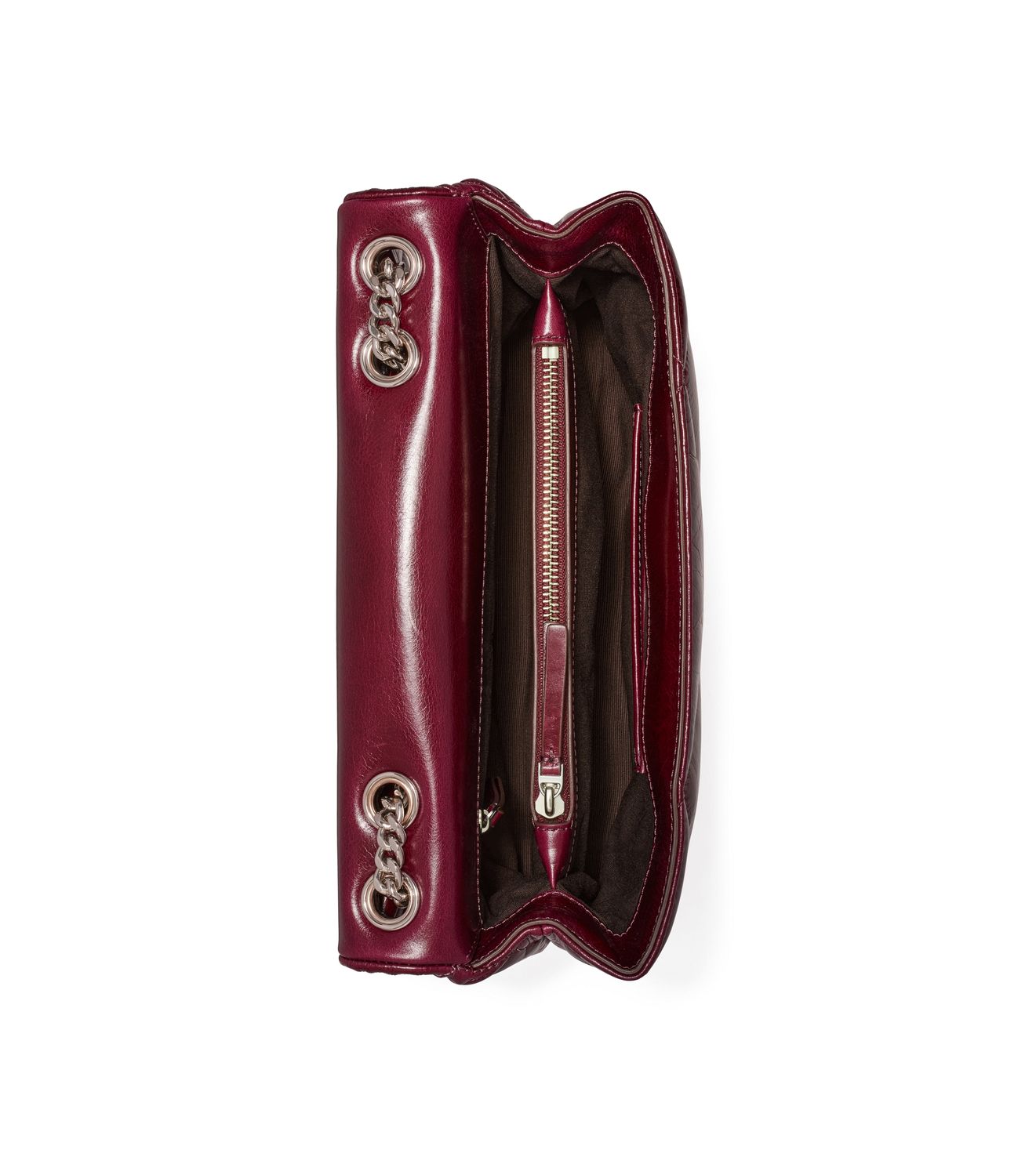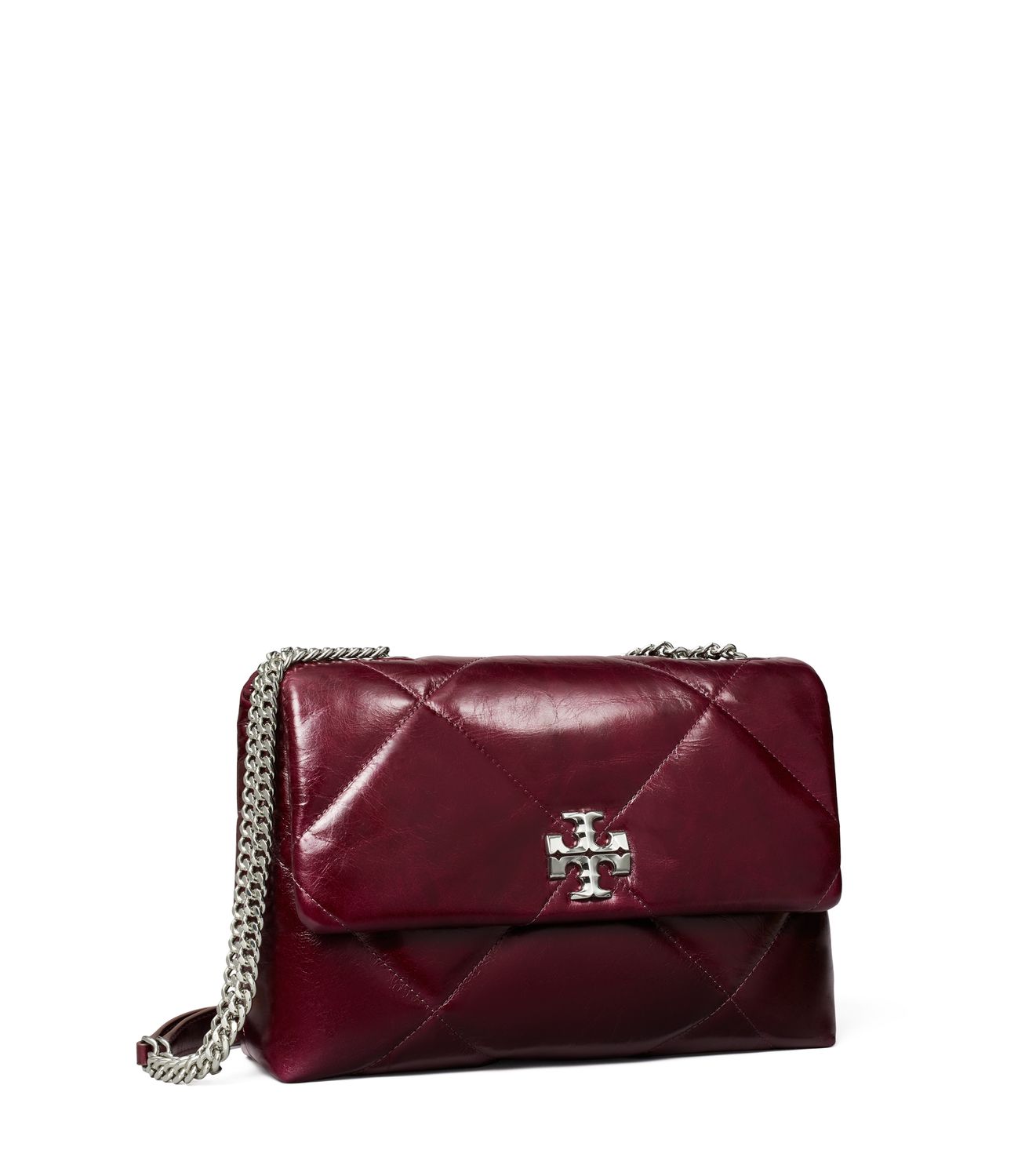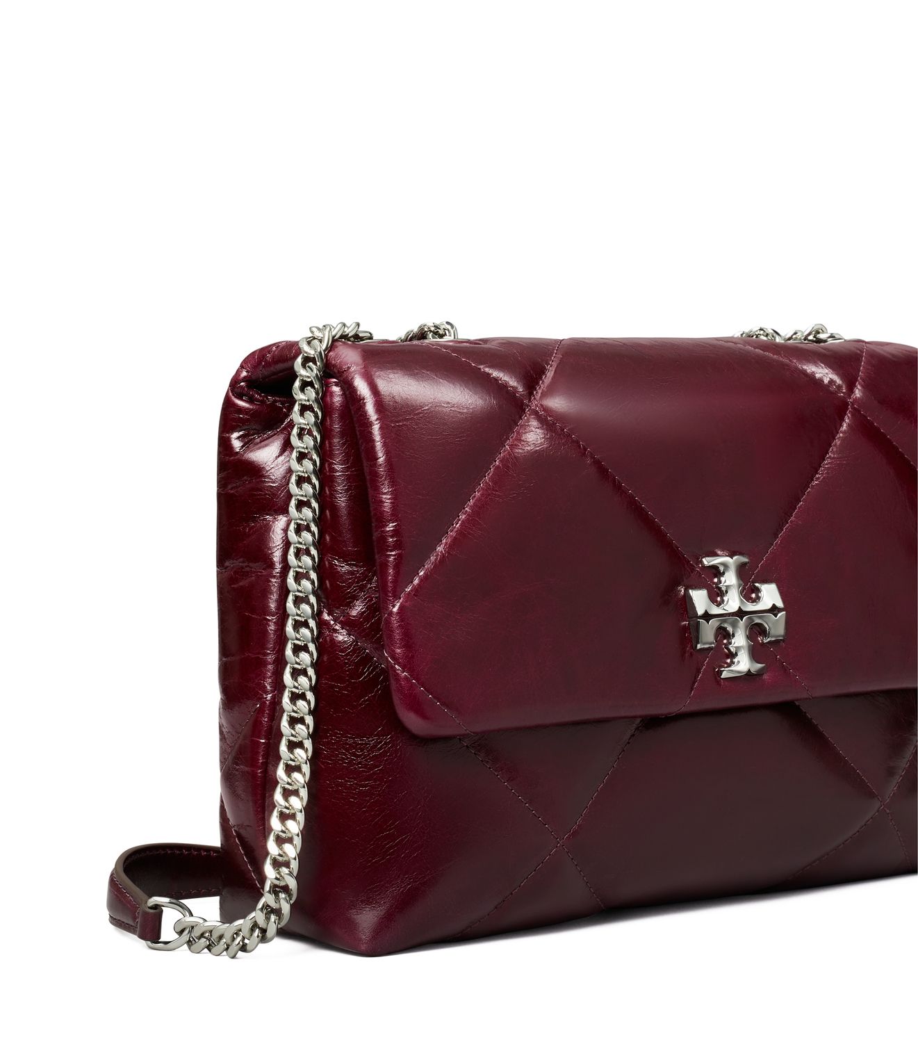 Die unwiderstehlich weiche, wandelbare Kira Schultertasche besticht durch ihre markante Rautensteppung in bauschiger Optik. Ein abgeschrägtes Doppel-T aus Metall ziert das Steppdesign. Tragen Sie den Kettenriemen doppelt über der Schulter oder lang als Umhängeriemen.