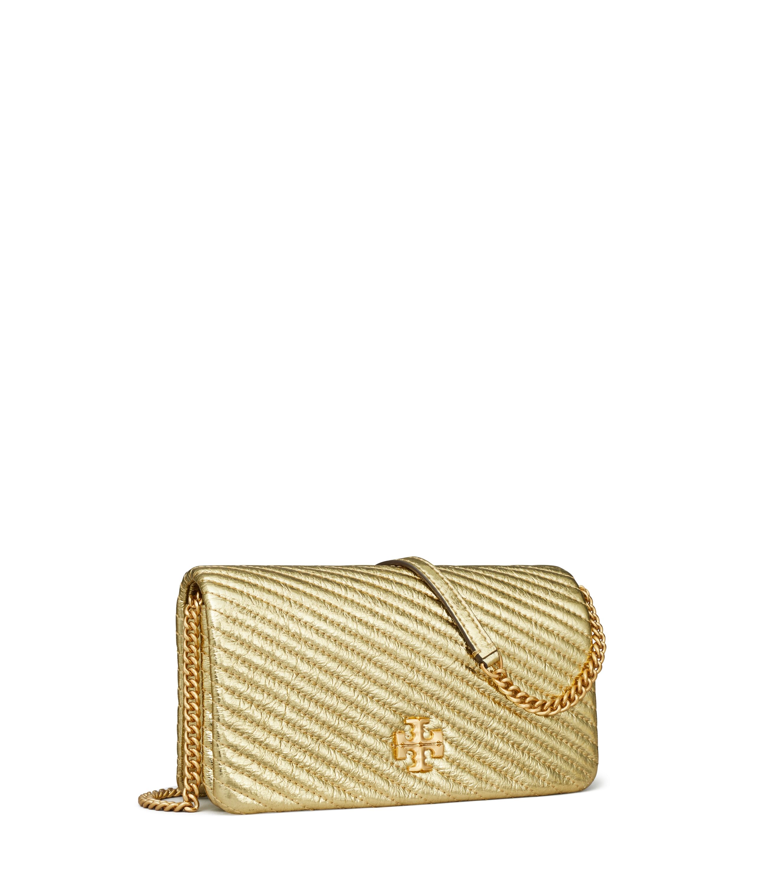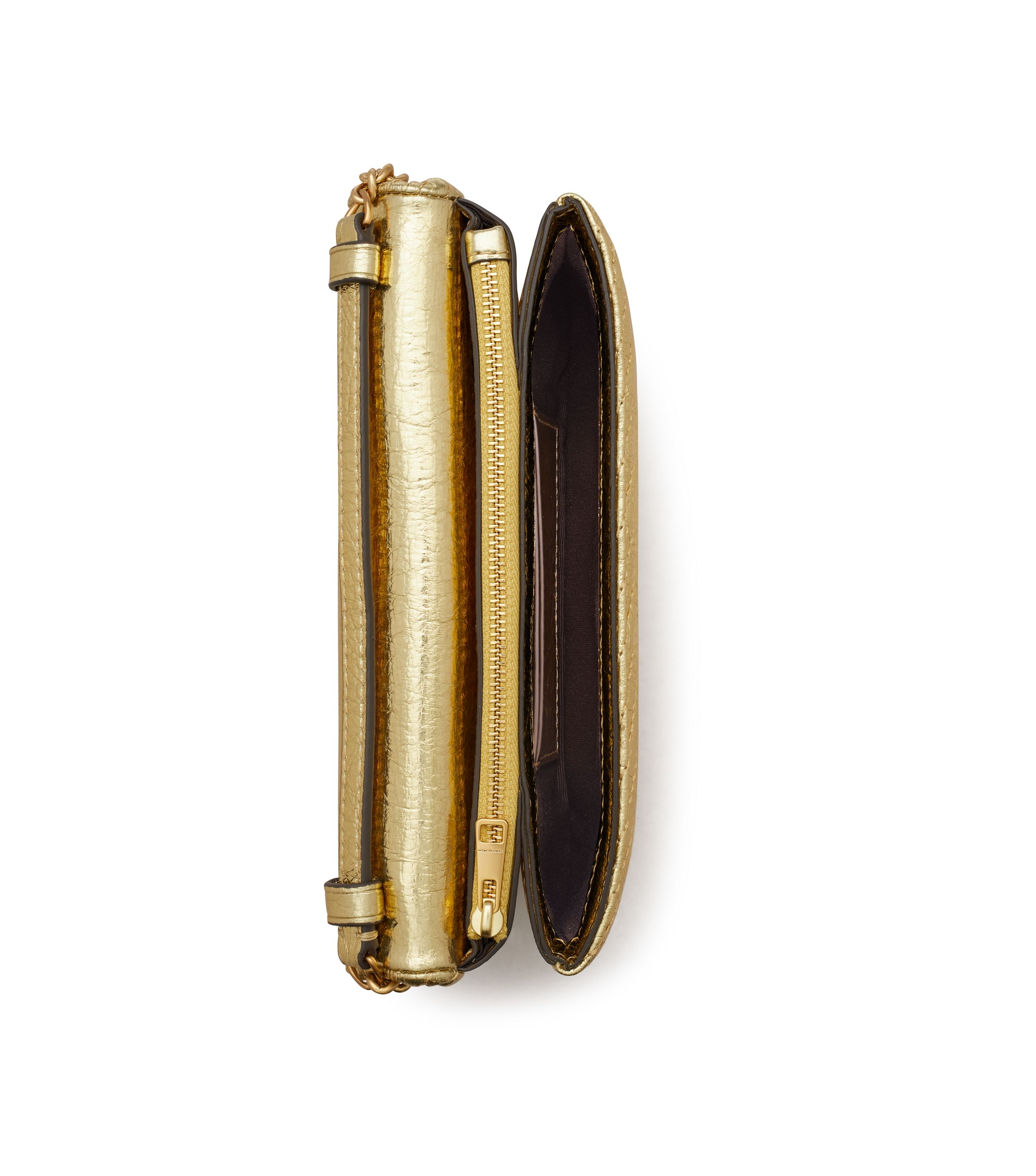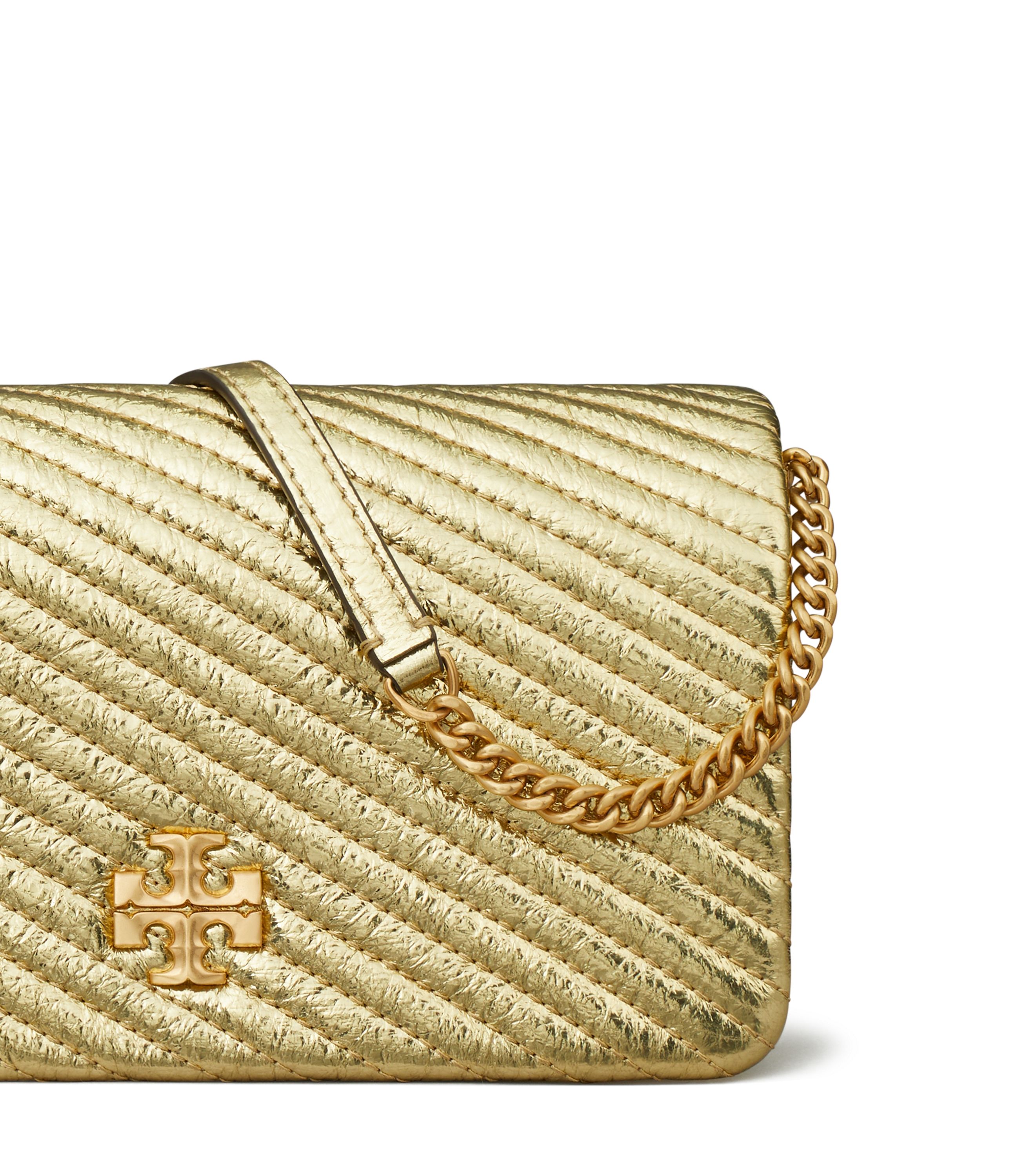 Diese Kira Mini Bag mit Umschlag ist aus Metallicleder mit Steppungen, die an Vintage-Bikerjacken erinnern, gefertigt. Ein abgeschrägtes Doppel-T aus Metall rundet das Design ab. Tragen Sie den Kettenriemen doppelt über die Schulter oder lang quer über dem Körper.
