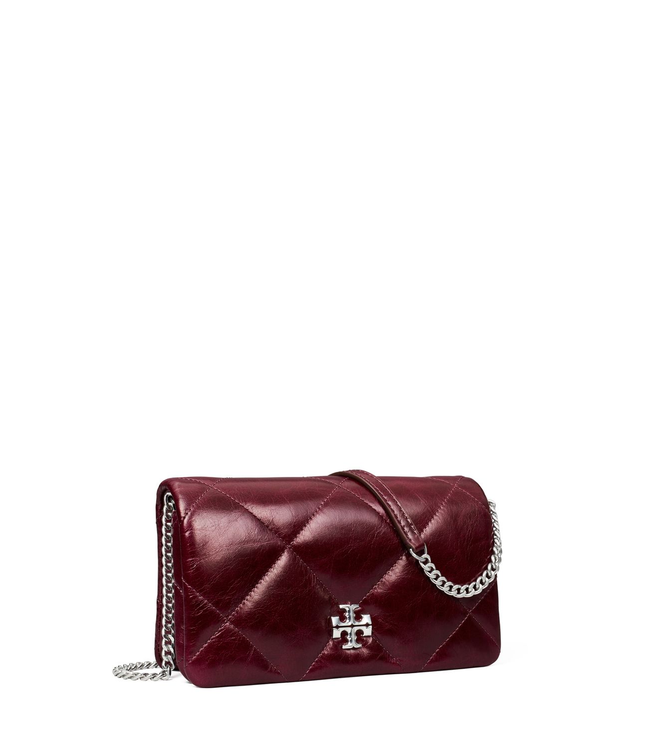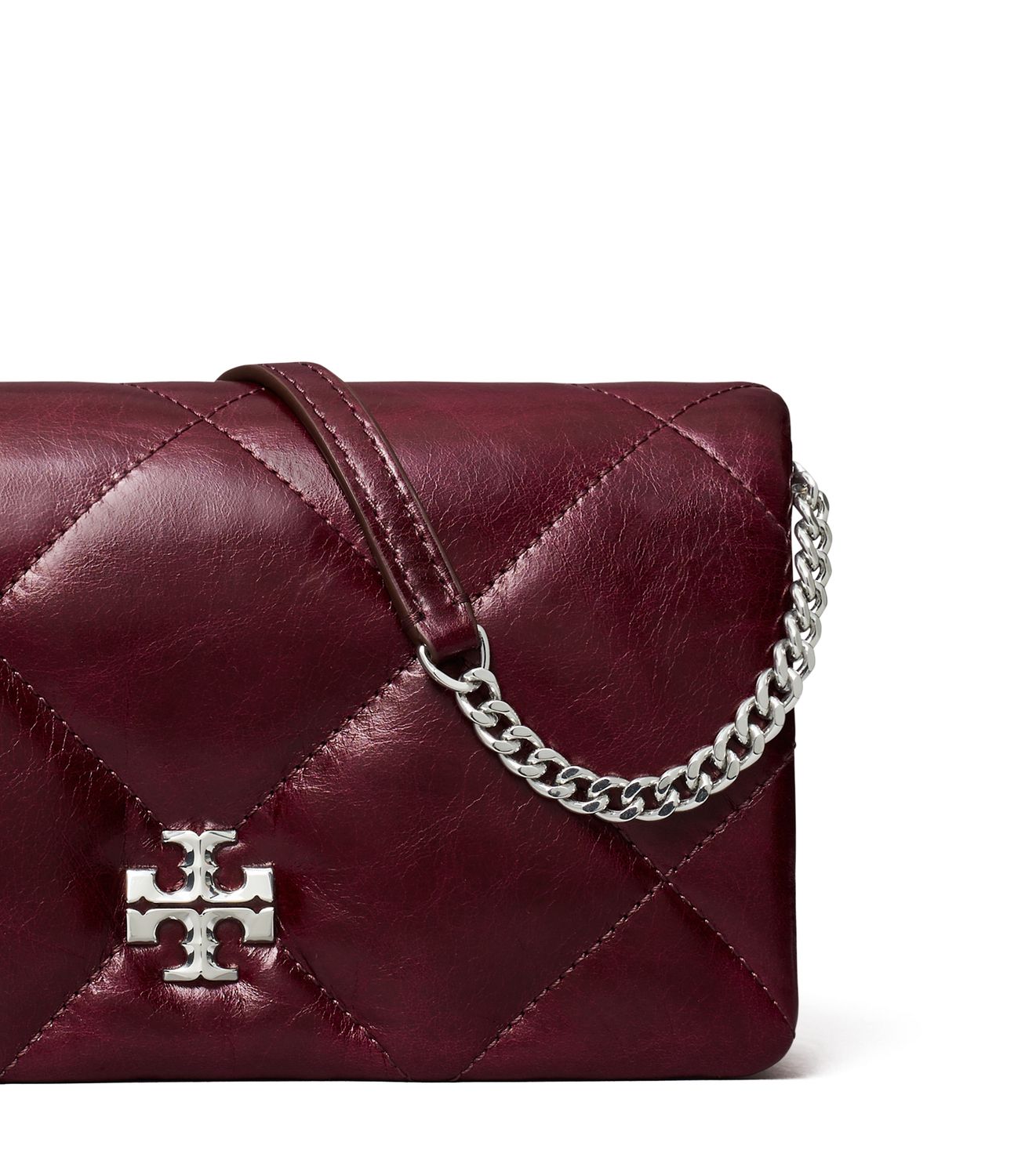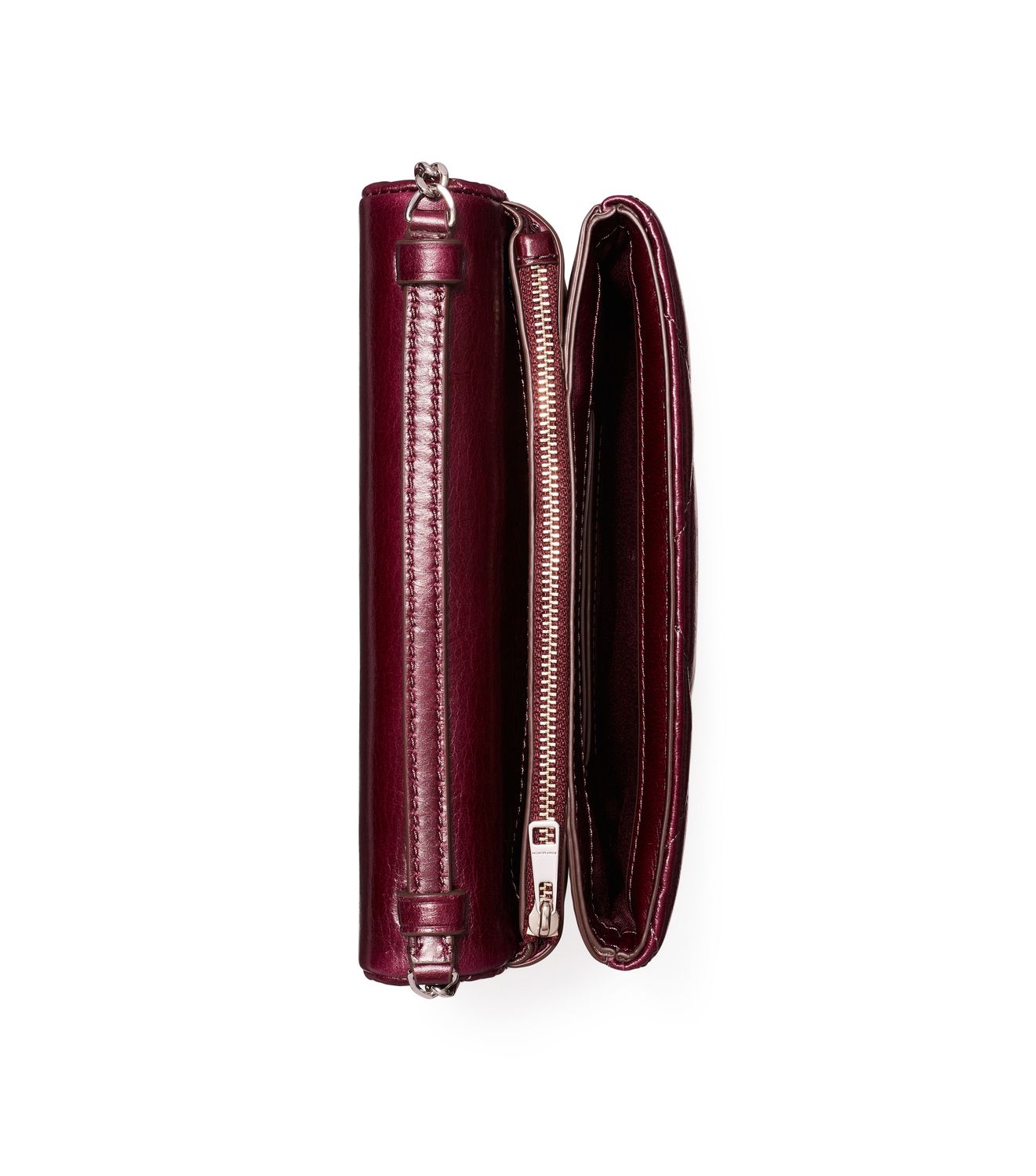Die Kira Geldbörse mit Kettenriemen und bauschiger Rautensteppung ist aus unwiderstehlich weichem Leder in dezenter Vintage-Optik gefertigt. Ein abgeschrägtes Doppel-T aus Metall setzt unverkennbare Akzente. Das Accessoire kann mithilfe des abnehmbaren Kettenriemens mit Ledereinsatz als Crossbody Bag oder auch als Clutch getragen werden.