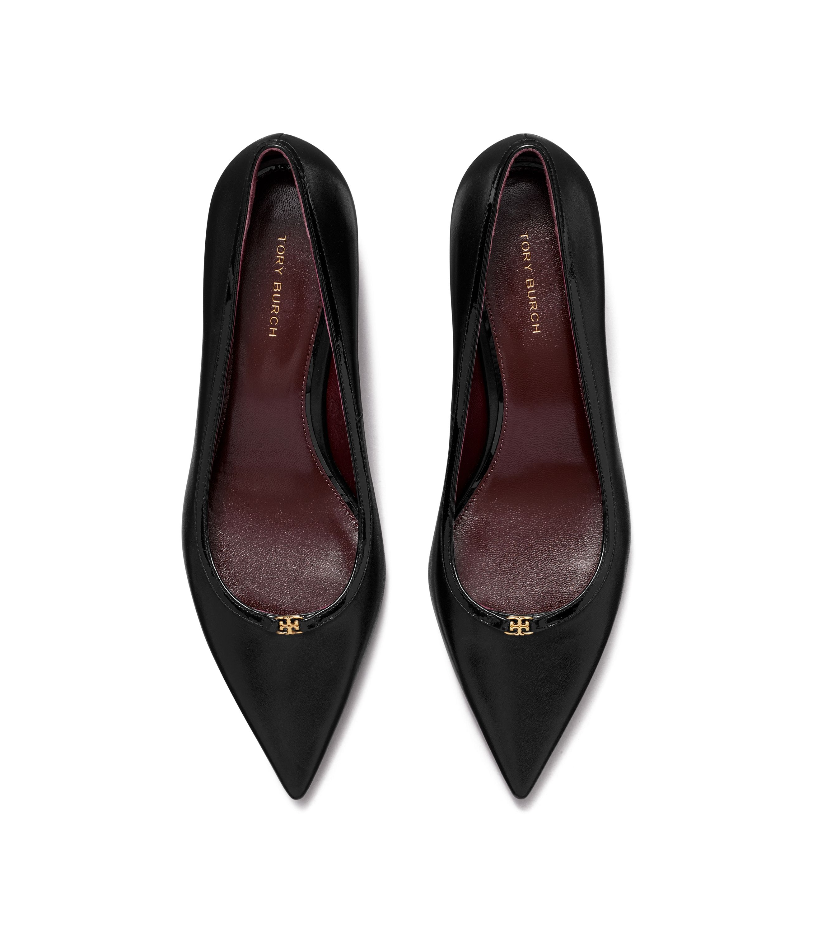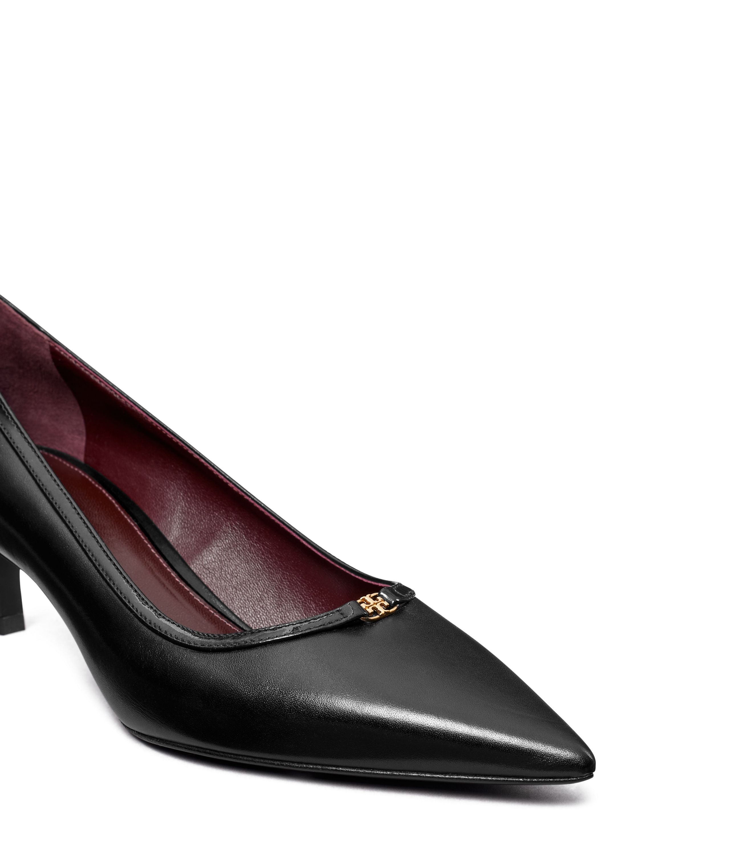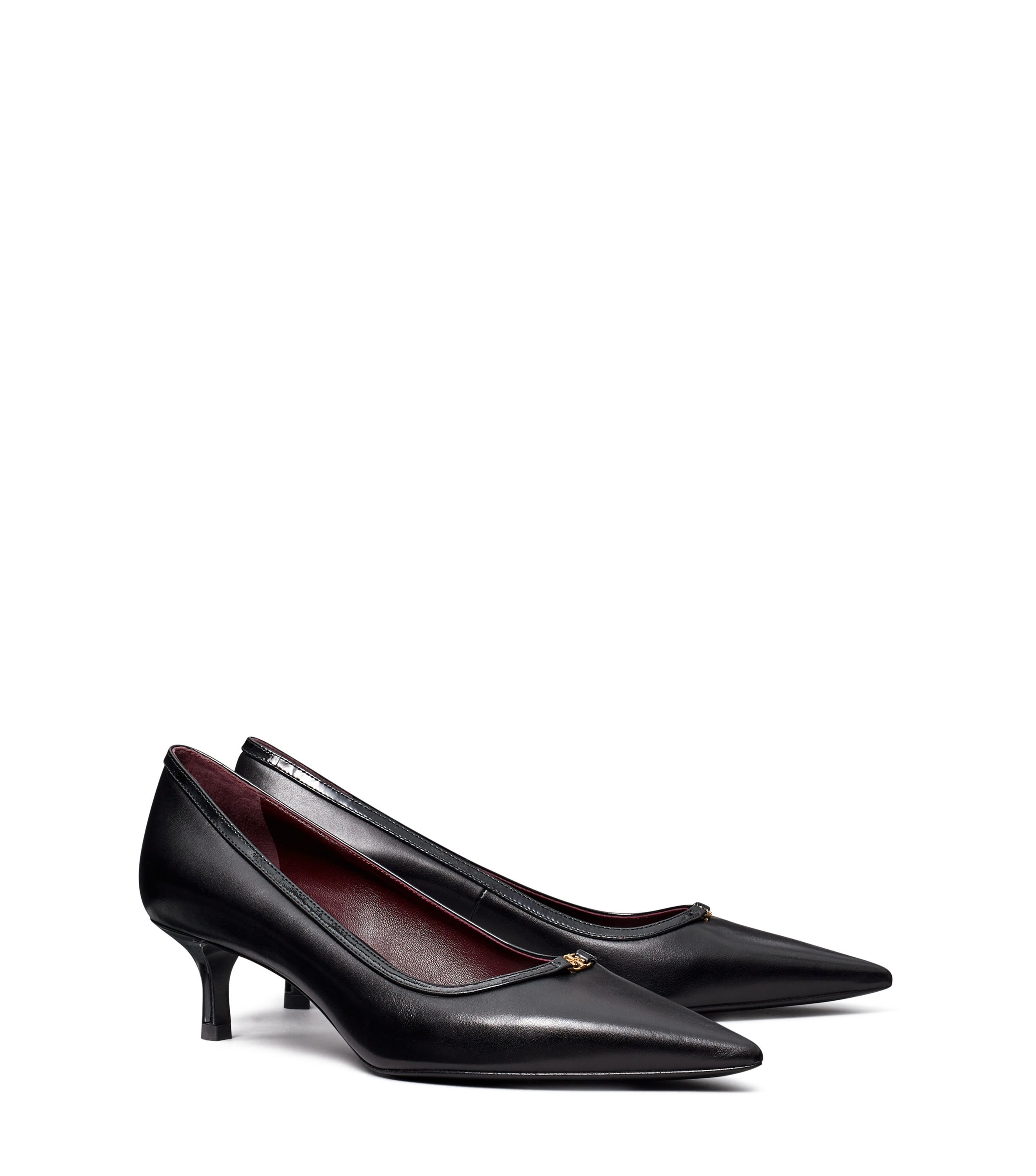 Dieser minimalistisch-zeitlose Kitten Heel Pumps mit spitzer Zehenpartie verfügt über eine Schnalle vorne mit zartem Doppel-T.