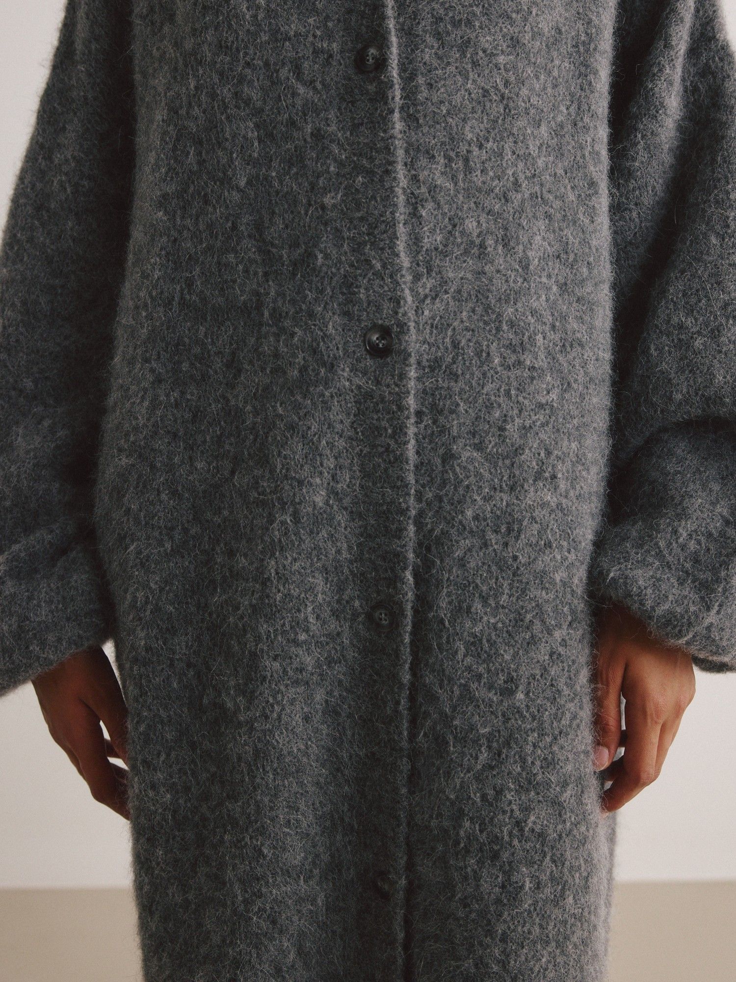 - gerippte Strickstruktur am Kragen, Bündchen sowie an der Knopfleiste