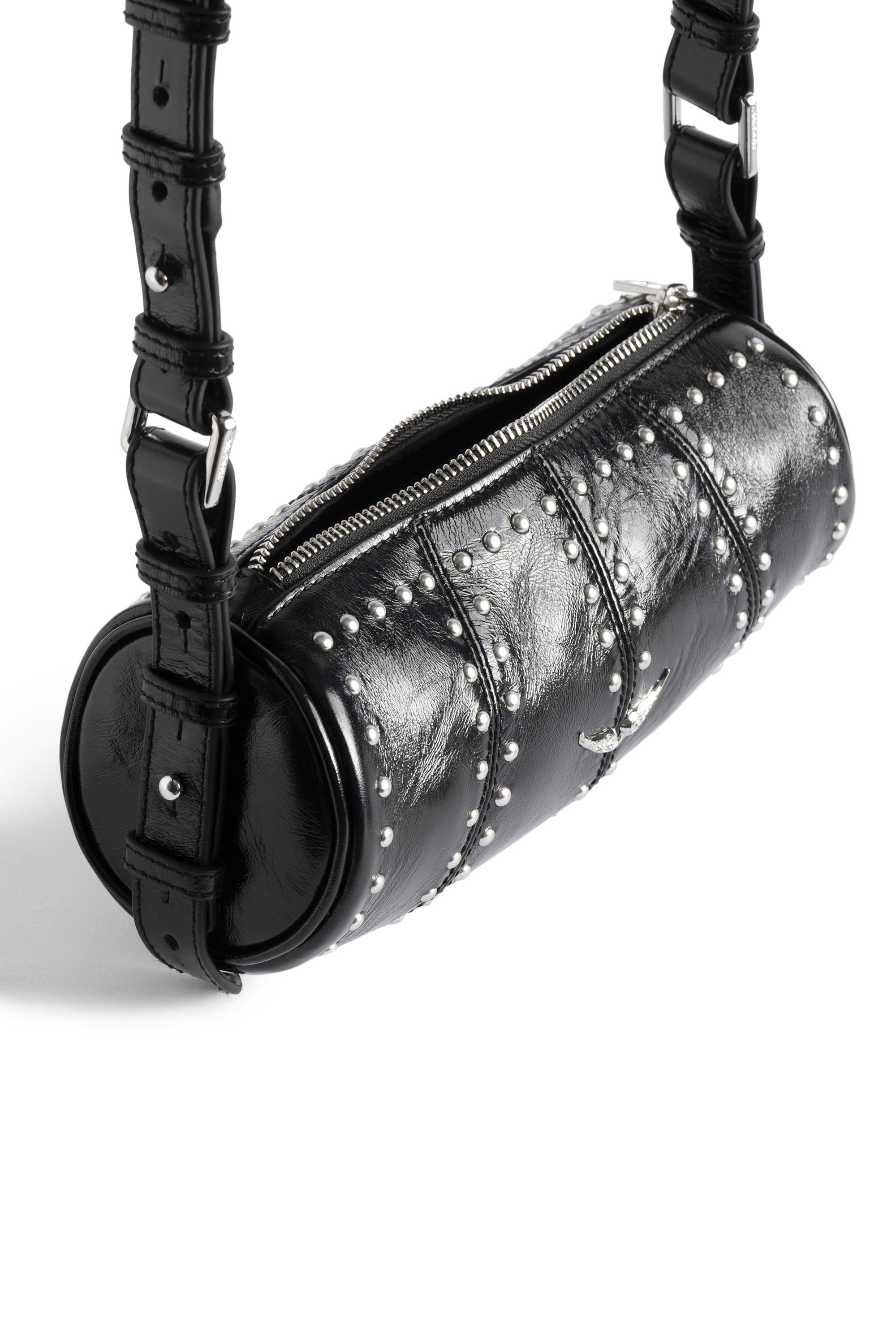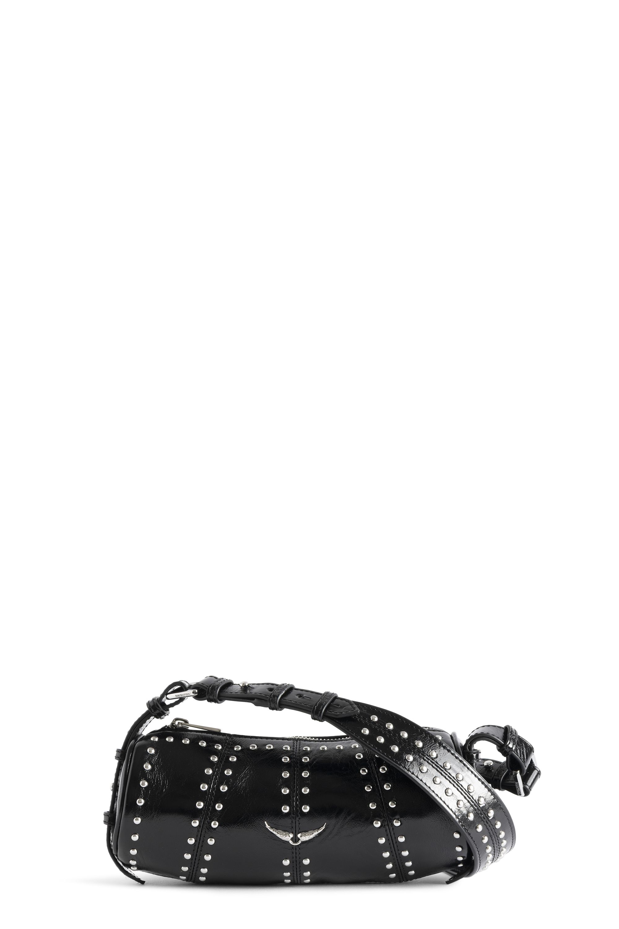 Tasche aus Lackleder im Vintage-Look mit Nieten, verstellbarem Schulterriemen und Signature-Wings.