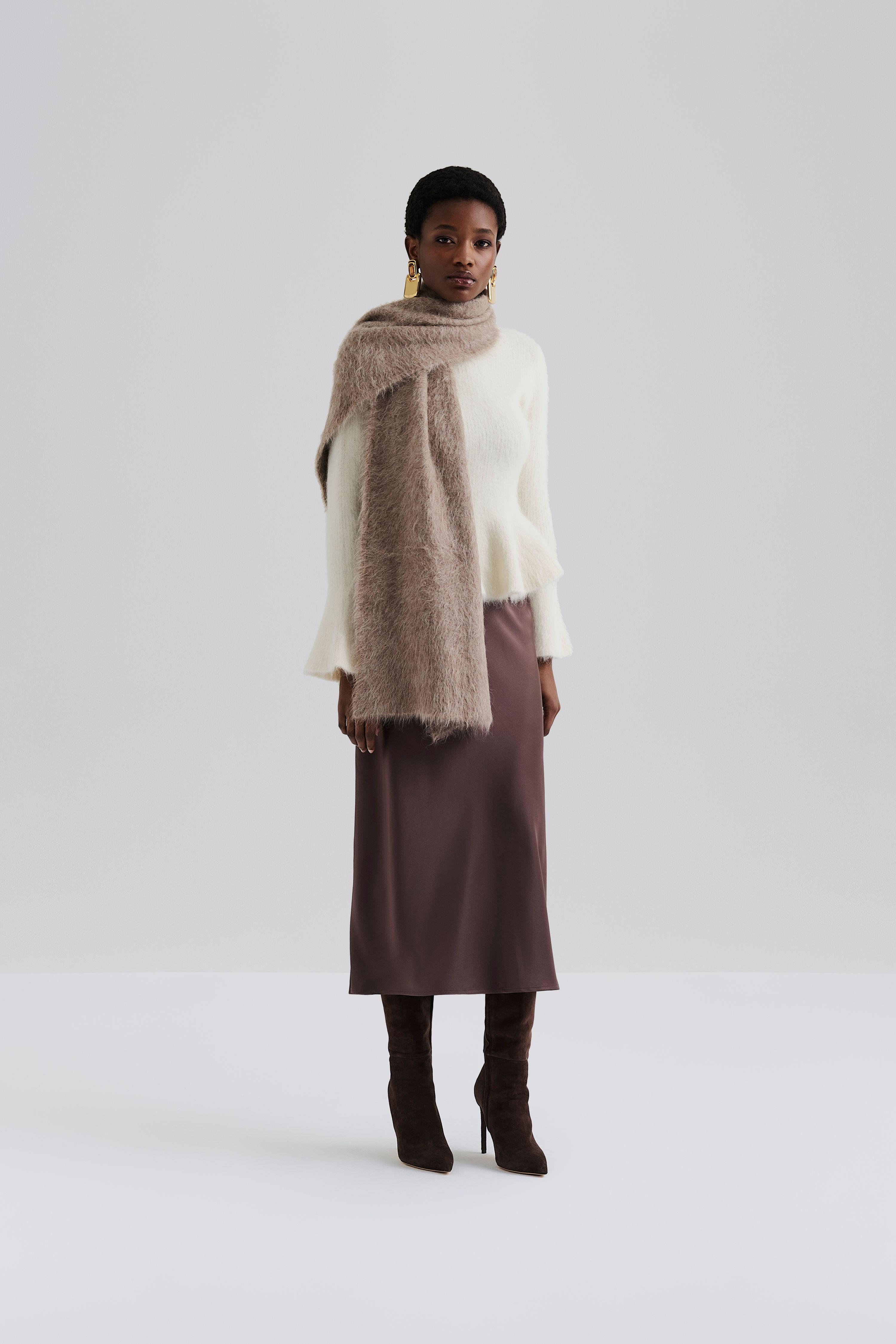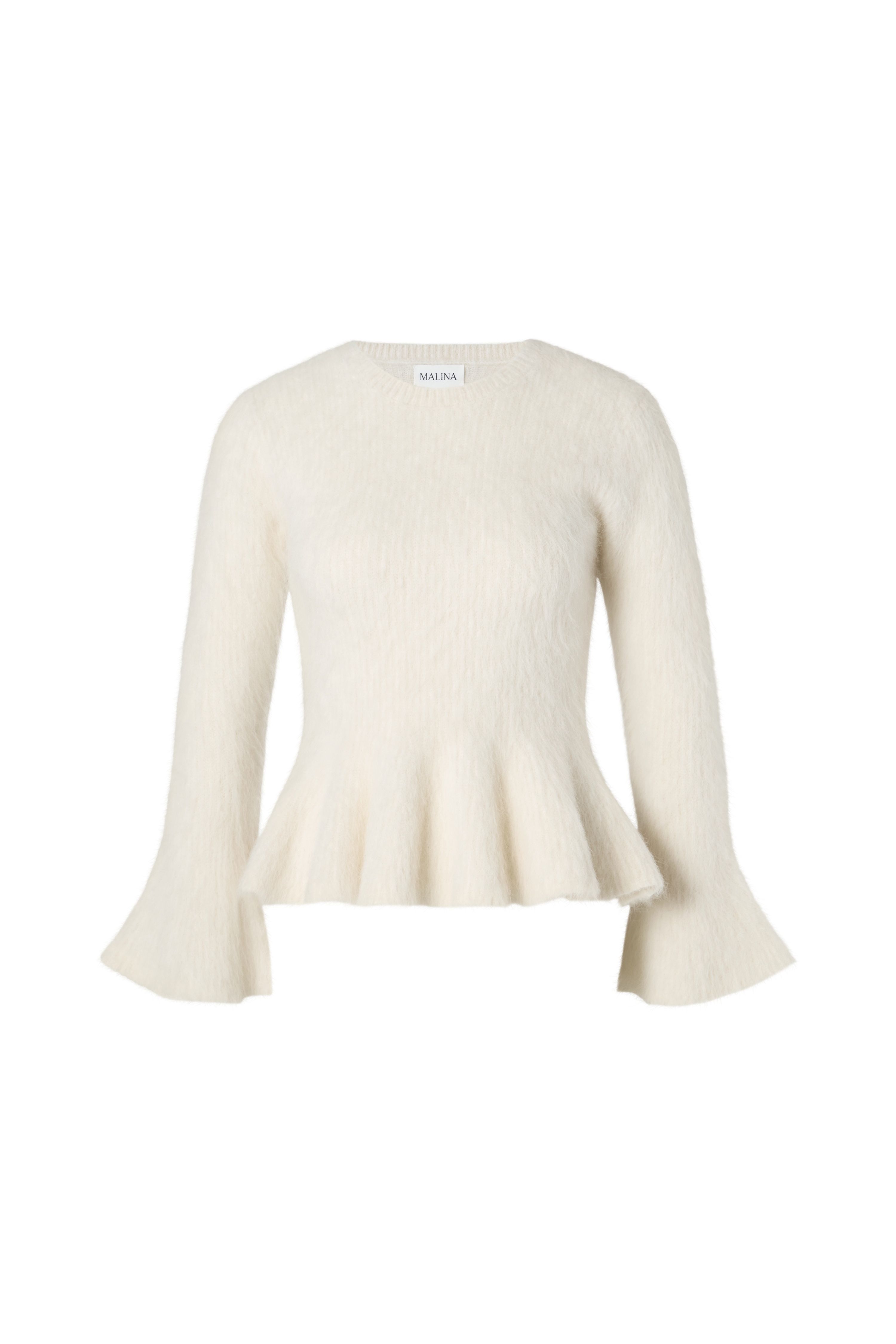Peplum-Top aus Alpakamischung mit dezenten Rüschenärmeln