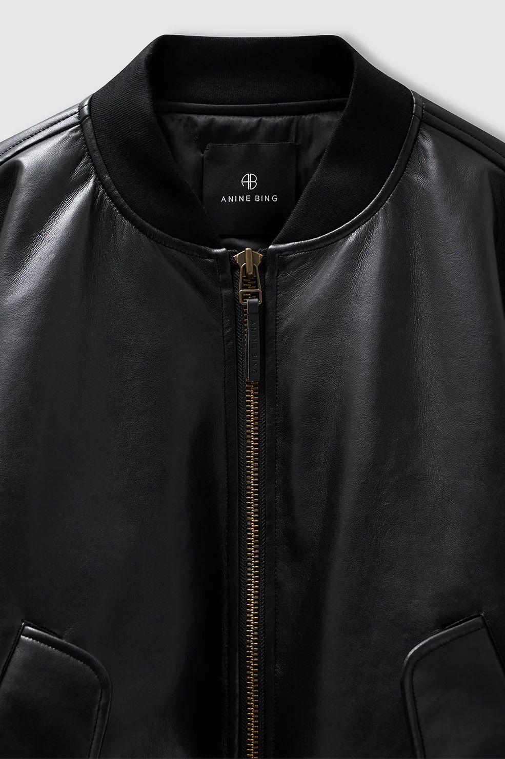 Eine traditionelle, funktional inspirierte Bomberjacke aus mittelschwerem, leicht wattiertem, regeneriertem Leder.