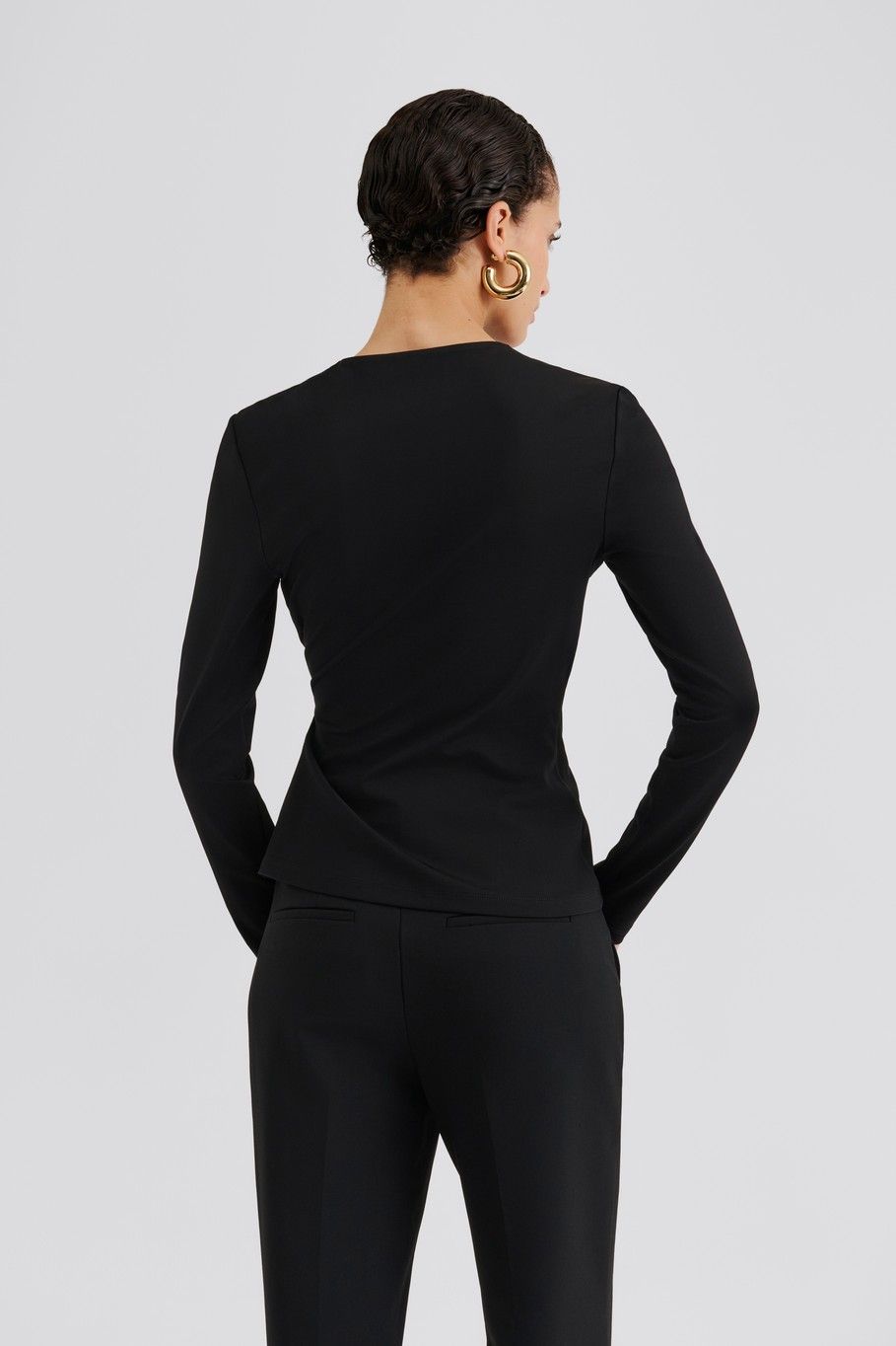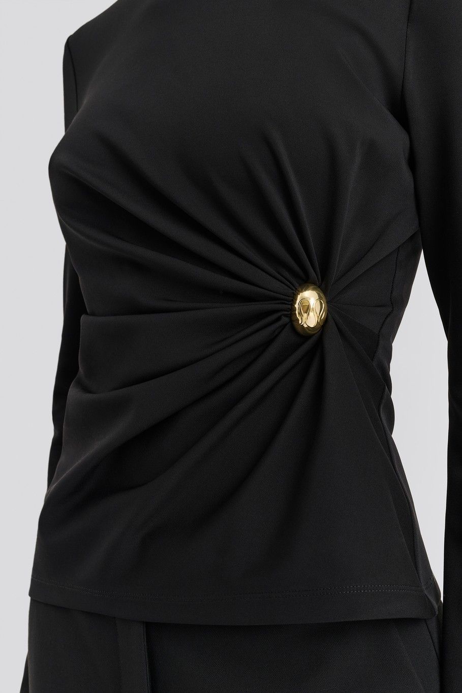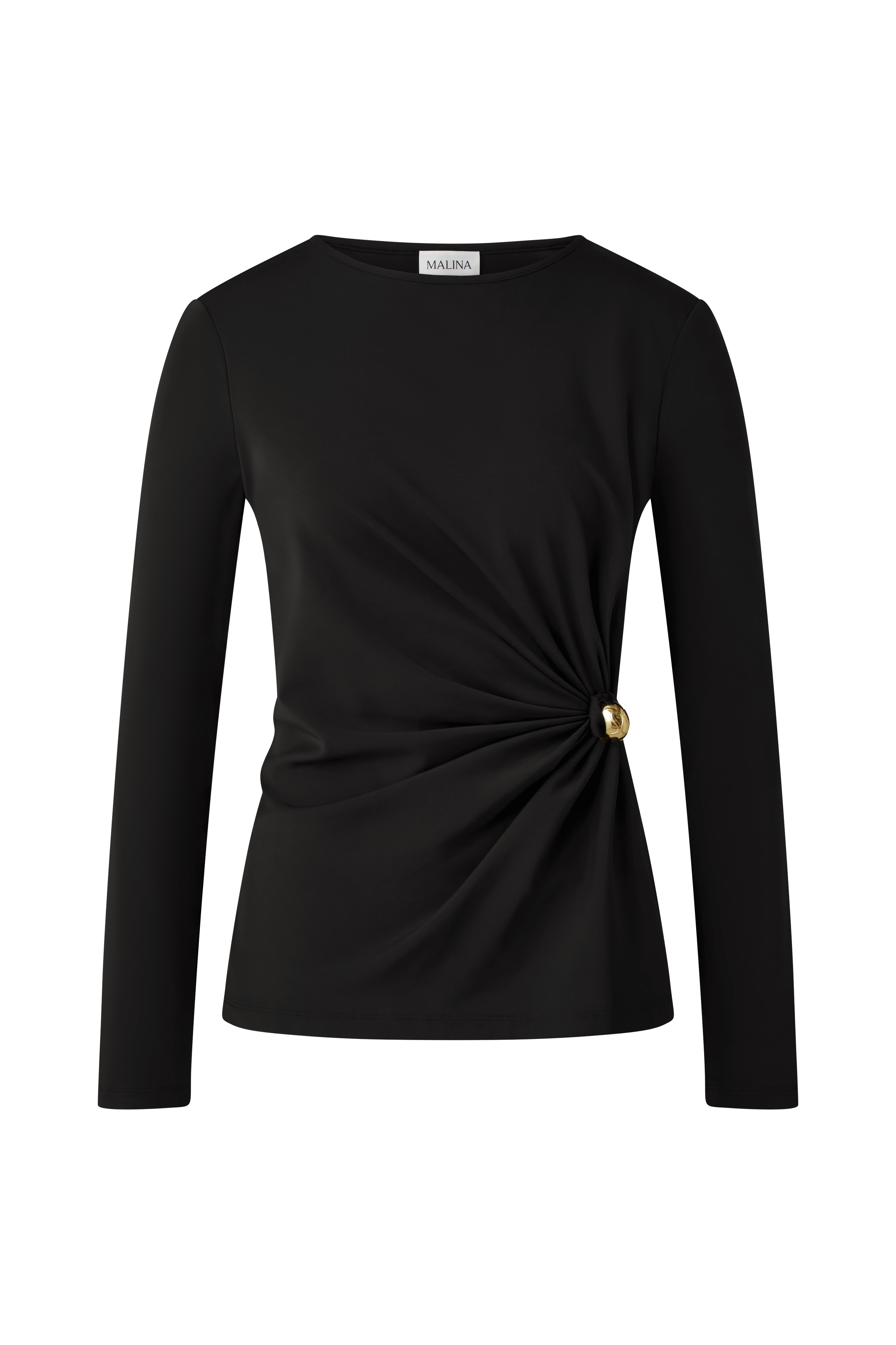 Langärmliges Jersey-Top mit Raffungen an der Taille und goldfarbenen Verzierungen.