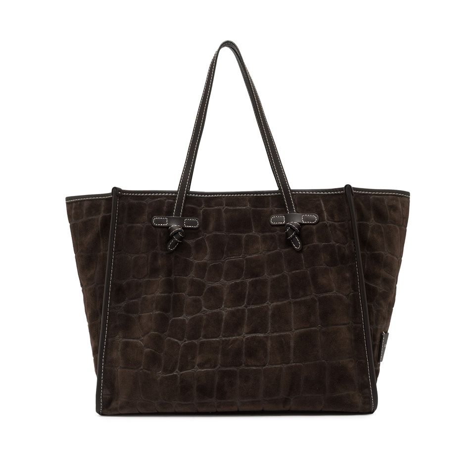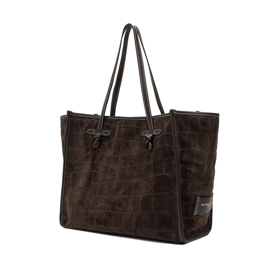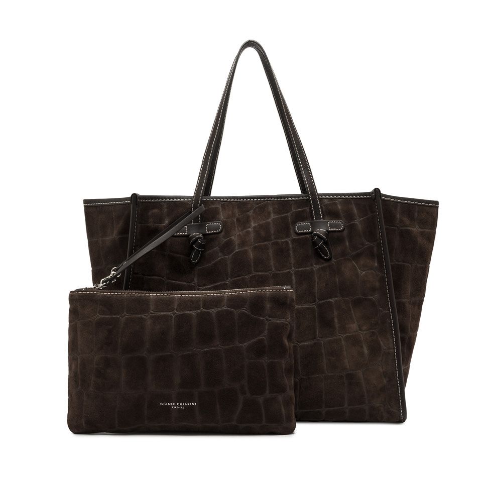 Die Shopping-Bag Marcella by Gianni Chiarini Firenze, mit ihrer schlichten und modernen Silhouette ist aus Wildleder mit einem Maxi-Kroko-Aufdruck gefertigt, ein unverwechselbares Element, das Charakter und Stil verleiht. Leicht und geräumig, ausgestattet mit Lederhenkeln und einem praktischen Magnetverschluss, macht sie perfekt für den alltäglichen Gebrauch. Mit ihrem coolen Stil ist sie perfekt, um jedes Outfit mit einem Hauch von Persönlichkeit zu ergänzen. Maße: 38x31x16 cm.