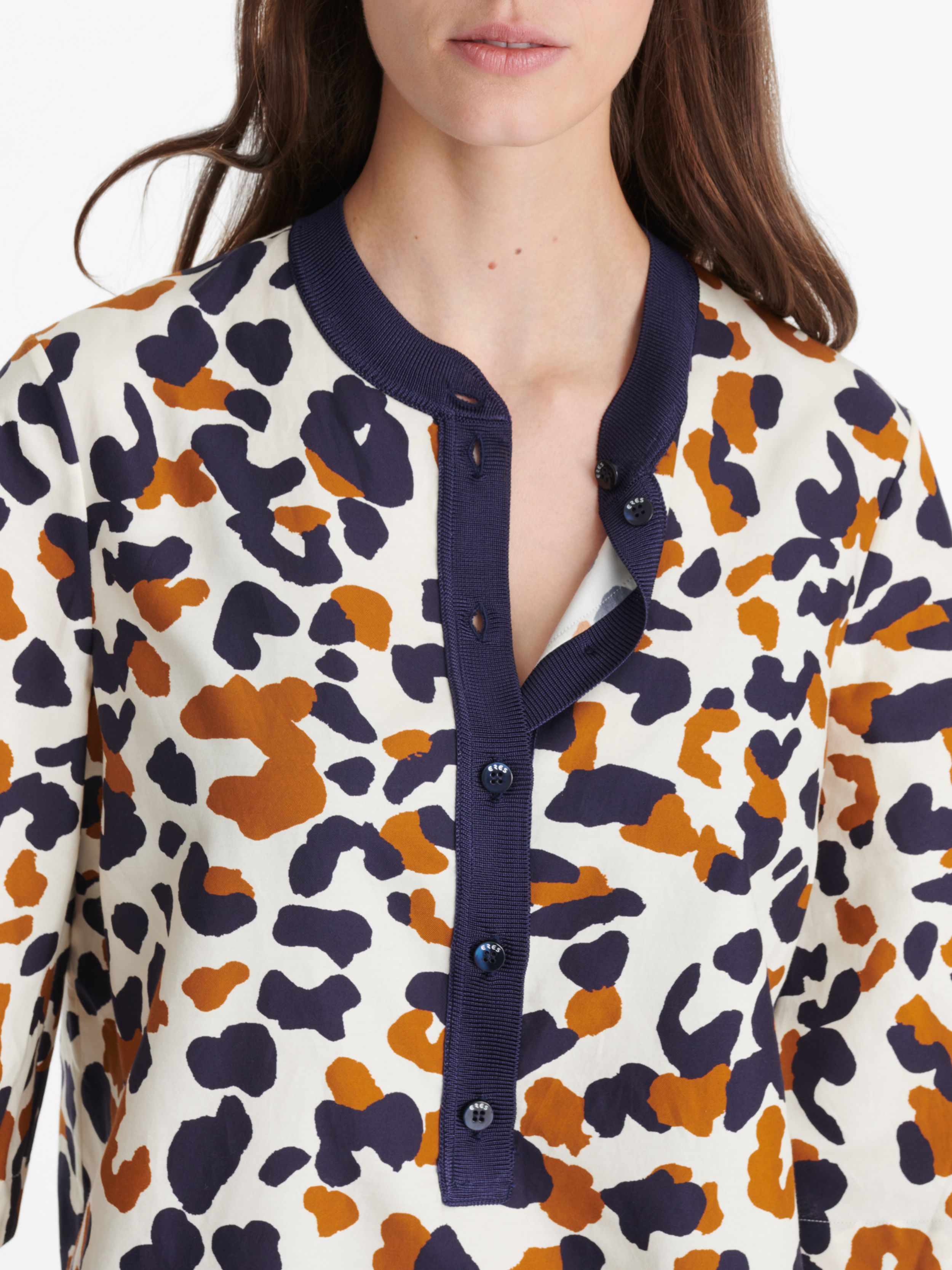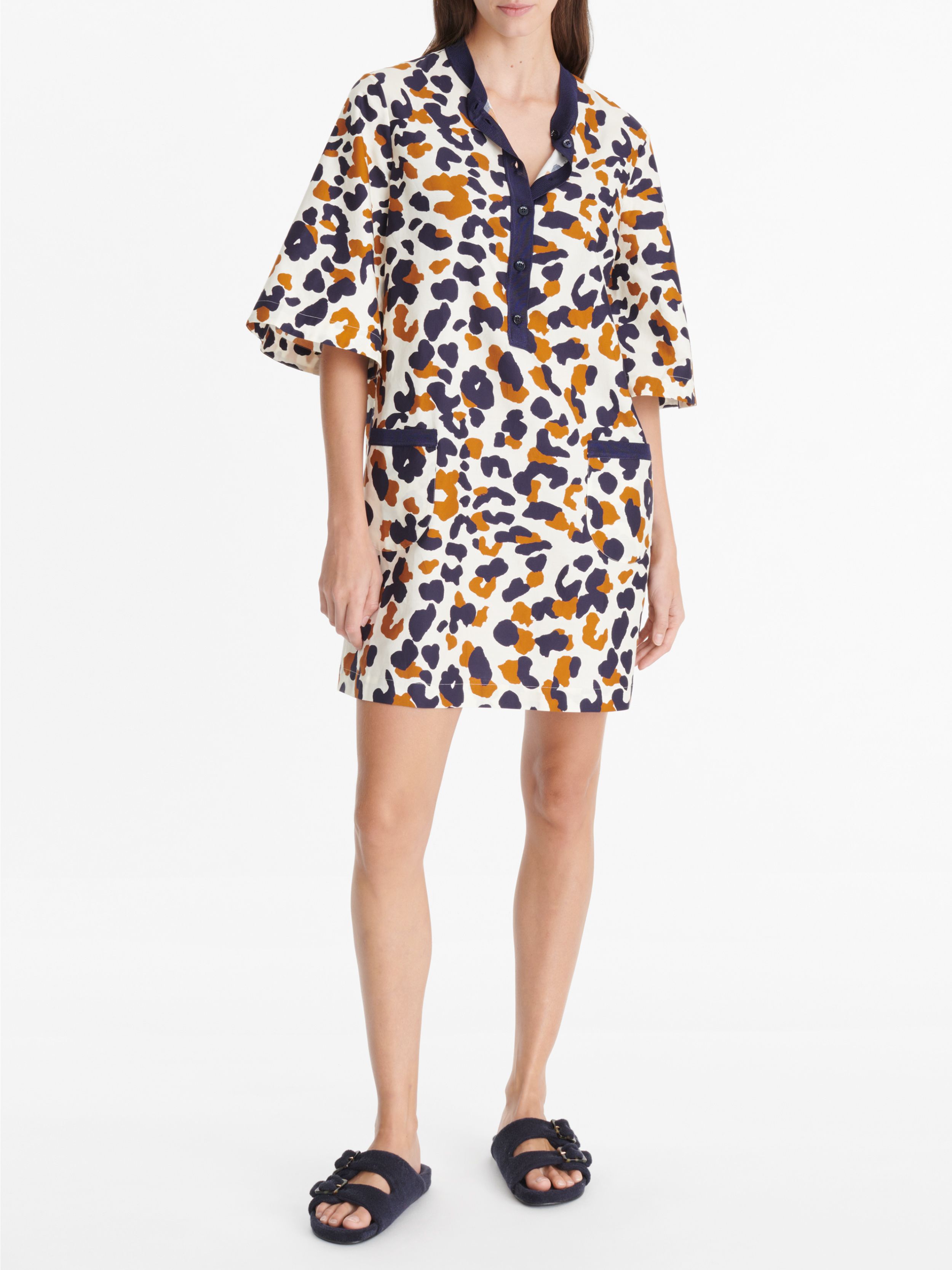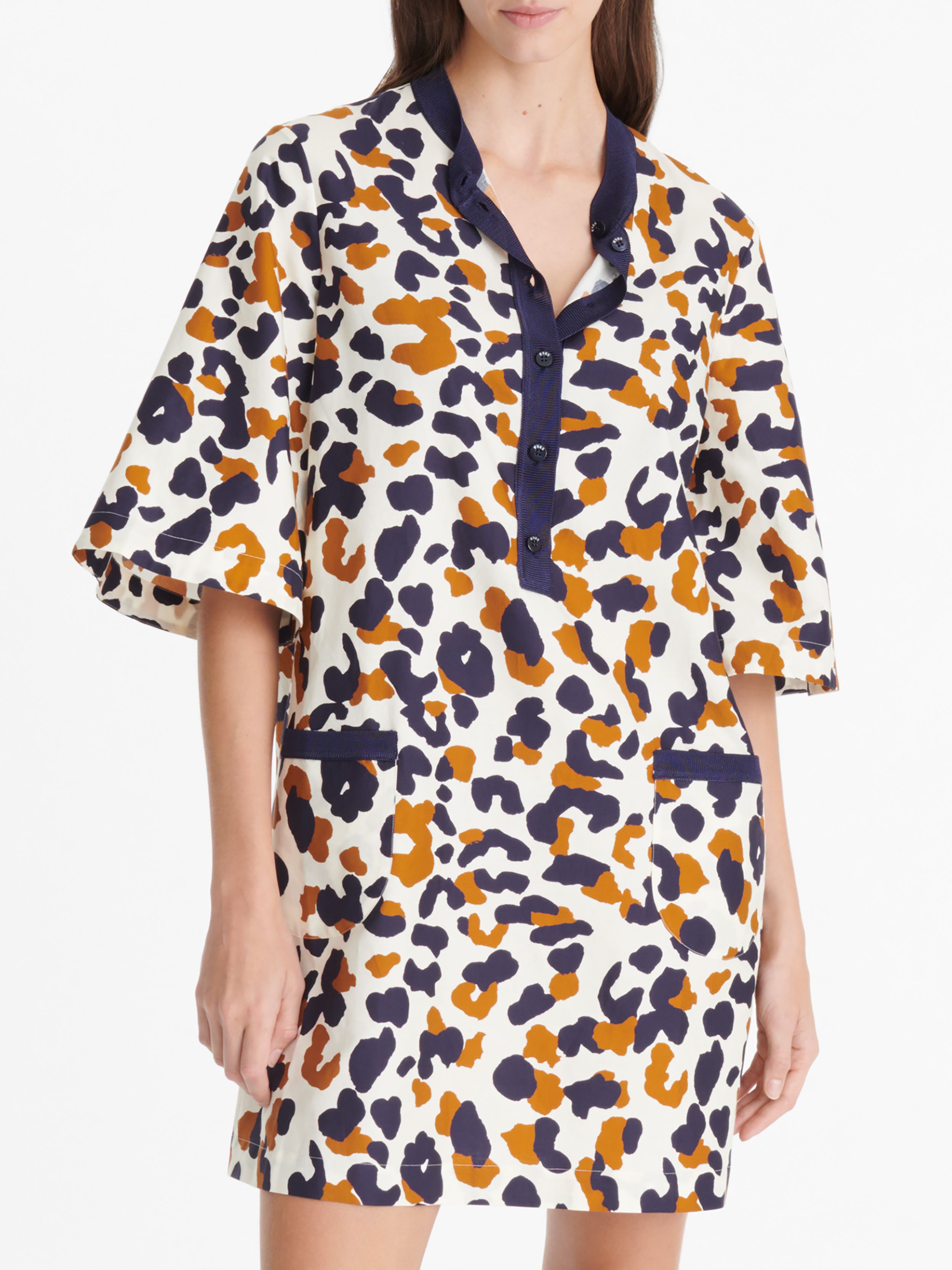 Das Trapezkleid mit 3/4-Ärmeln Marée ist in der Variante Sable Fin mit dem Printmuster Coquillage versehen. Das aus Baumwolltwill und Seide gefertigte Modell bietet einen schicken und komfortablen Look.