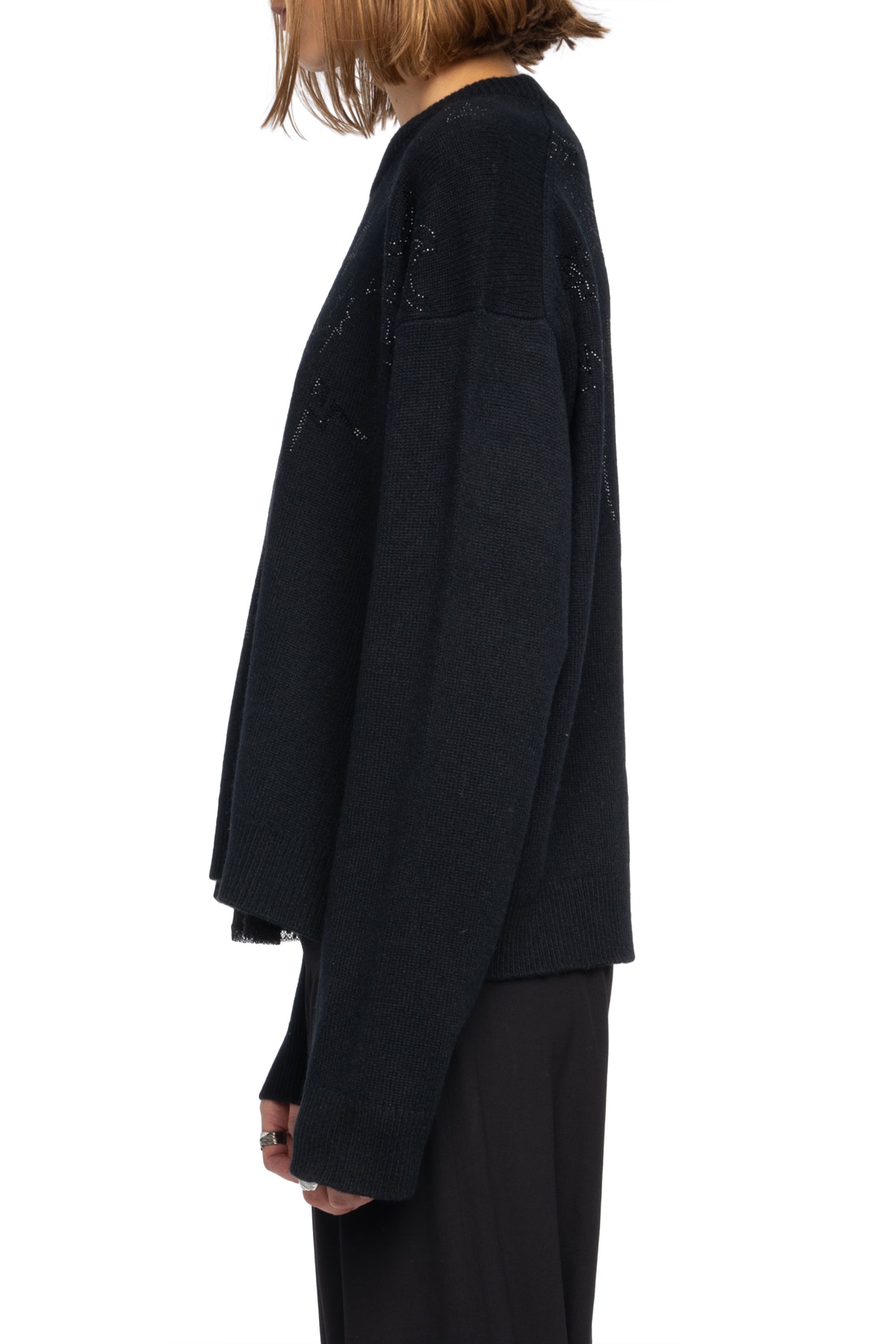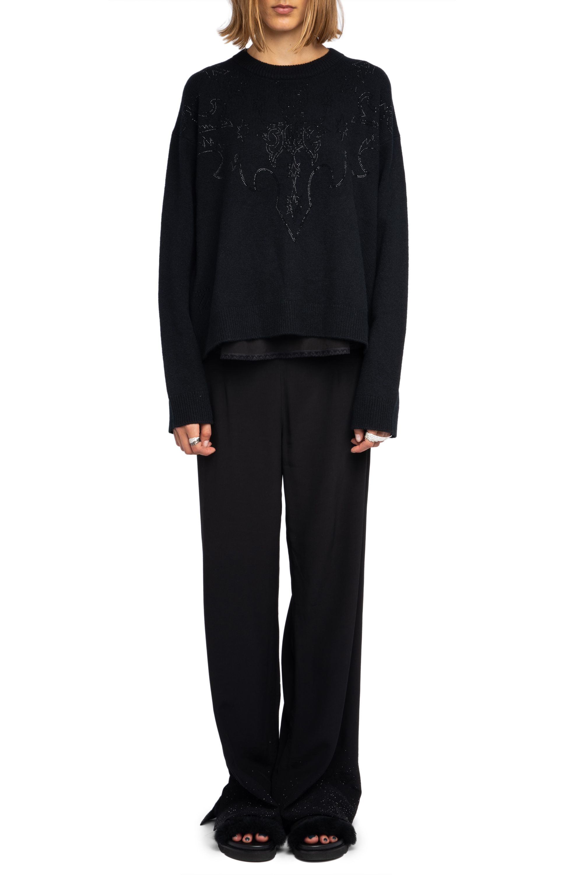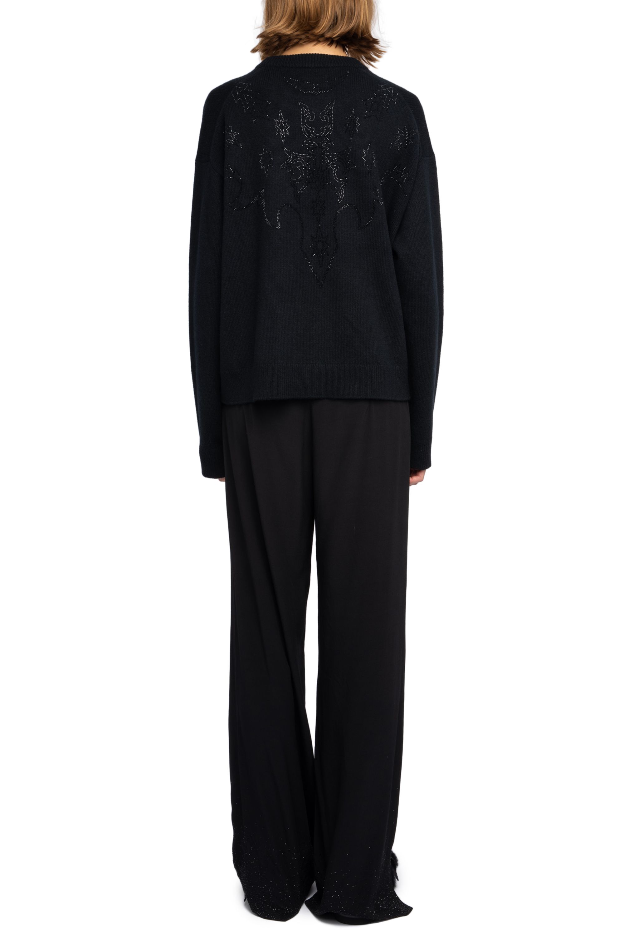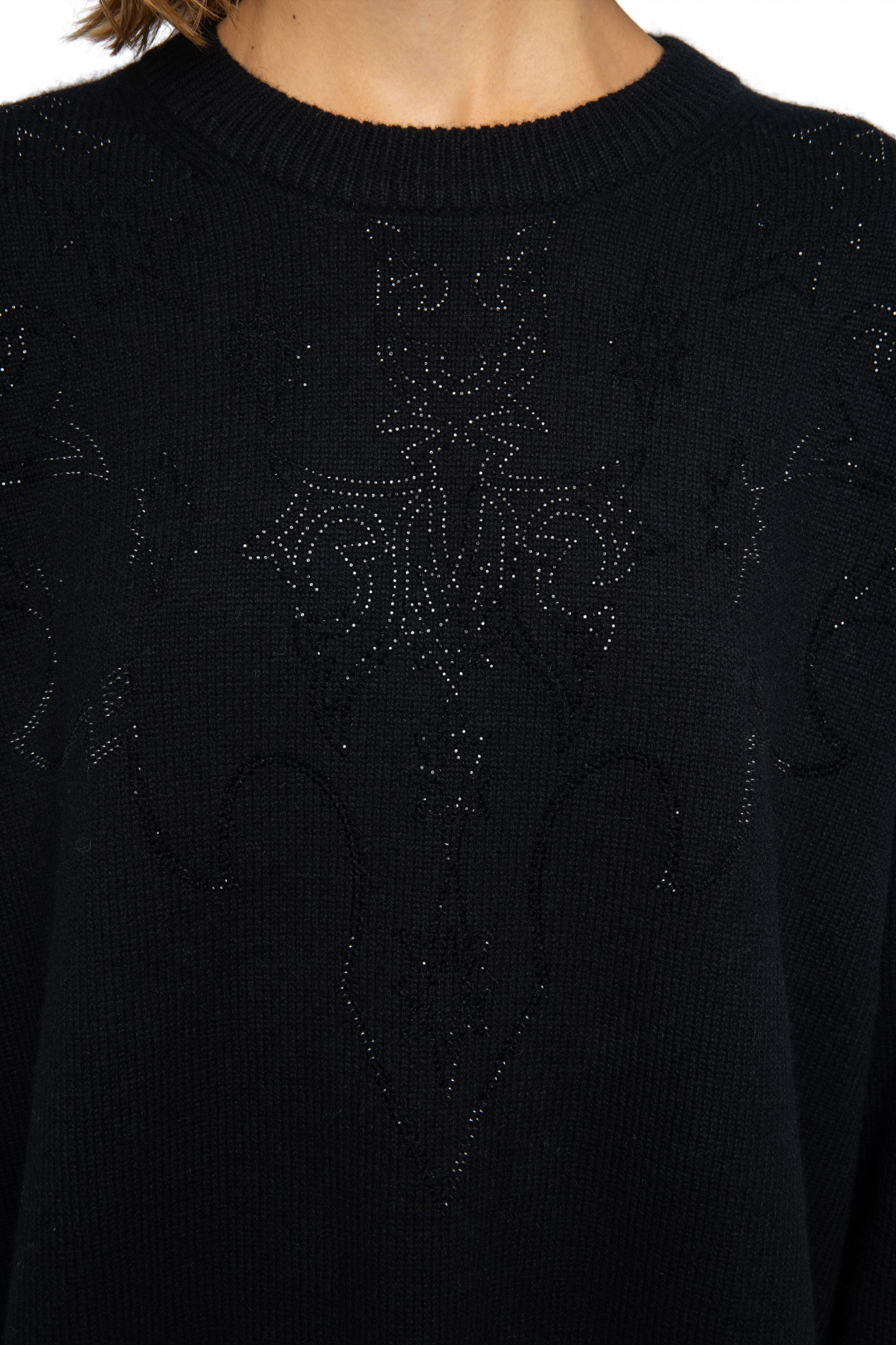 Pullover mit Rundhalsausschnitt und Western-Strasssteinen auf Vorder- und Rückseite.
