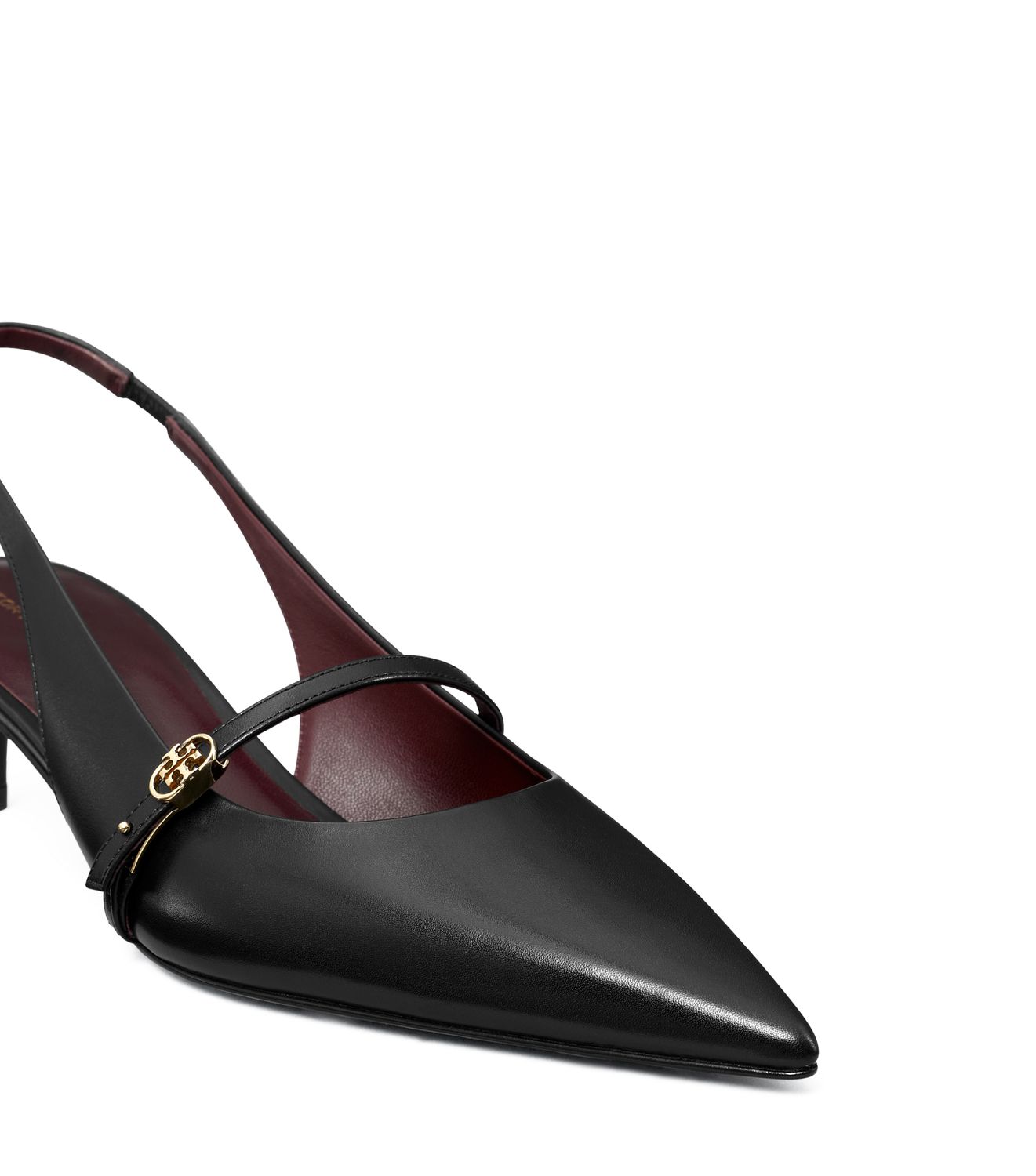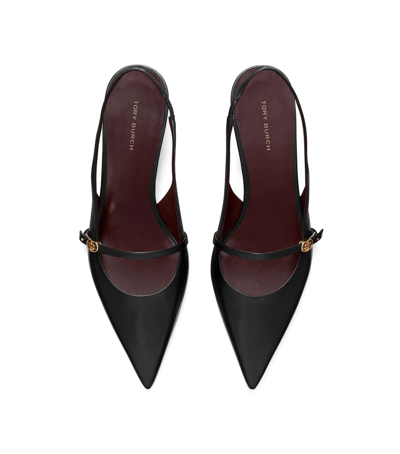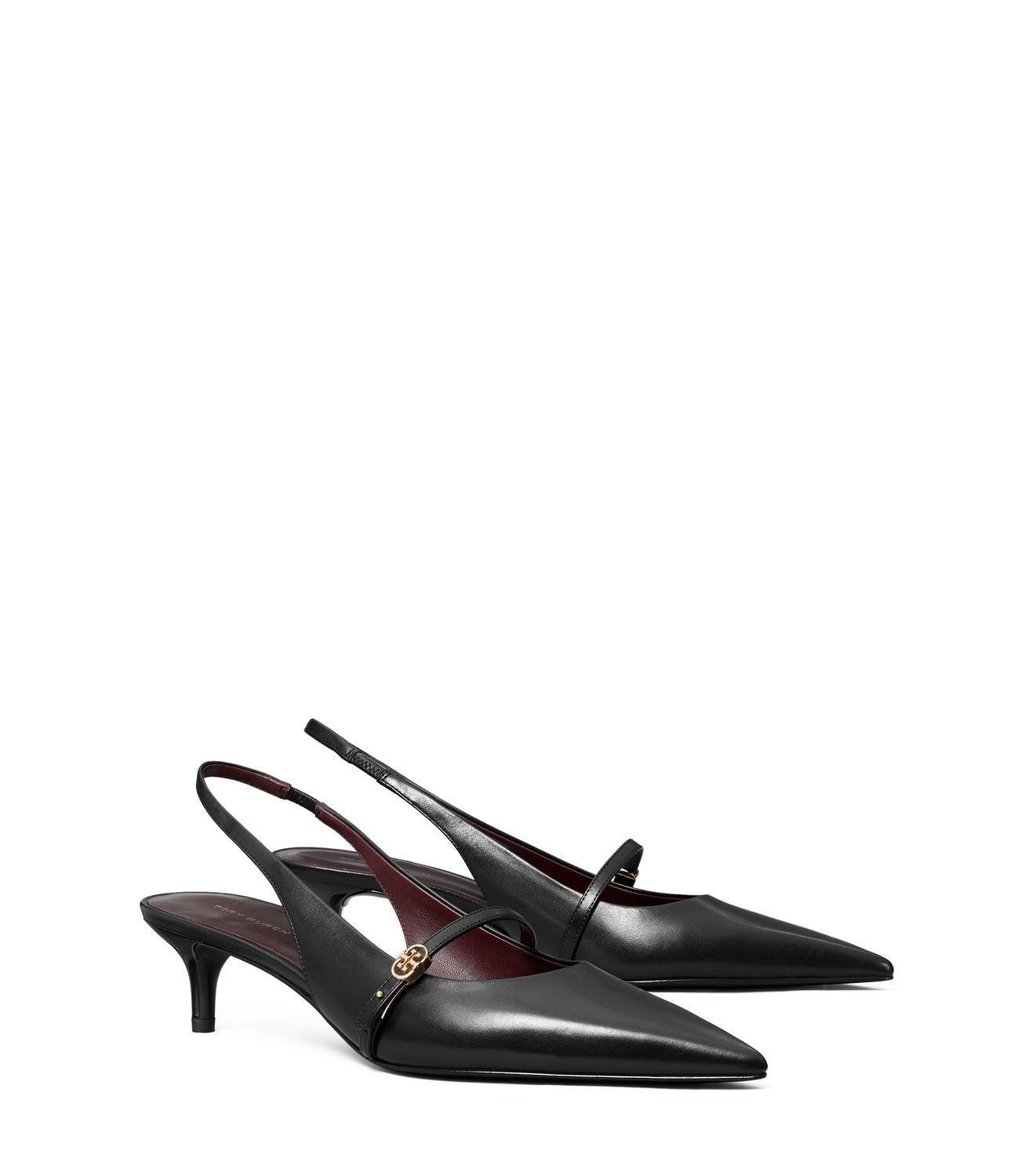 Ein Mary Jane mit schmeichelnden Linien und niedrigem Kitten Heel. Mit spitzer Zehenpartie und schmalem, dekorativem Riemen mit Doppel-T-Schnalle, einem Slingback-Knöchelriemen für sicheren Halt und einem gepolsterten Fußbett für zusätzlichen Komfort.