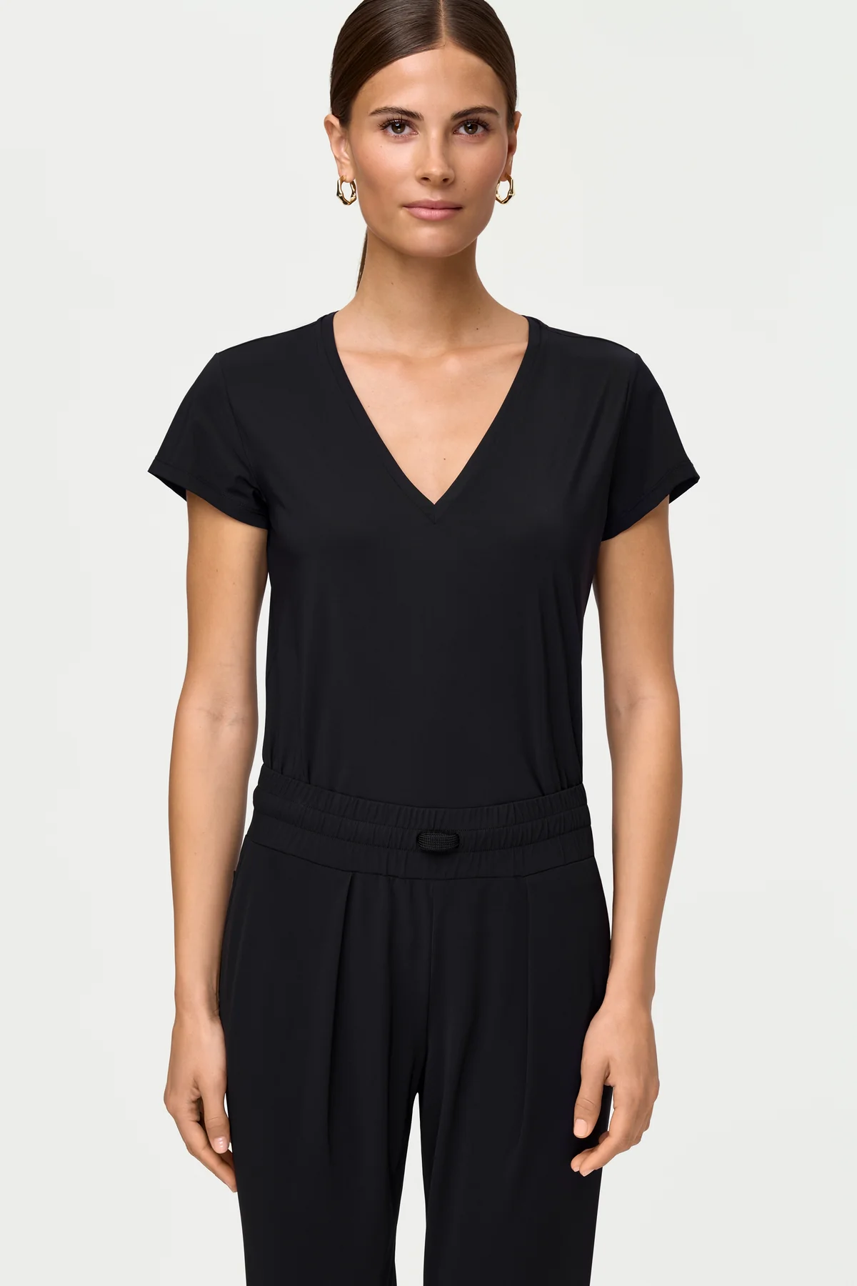 Das MINA Top aus unserem INAIR Material bietet zeitlose Eleganz mit weichstem, atmungsaktivem Komfort. V-Ausschnitt, kurze Ärmel und eine lockere Passform verbinden Natürlichkeit mit Stil. Vielseitig tragbar – vom entspannten Tag bis zum eleganten Abend. Kombinieren Sie es mit der LUXE LÉGER Track Pants oder einer anliegenden Hose für einen eleganteren Look.