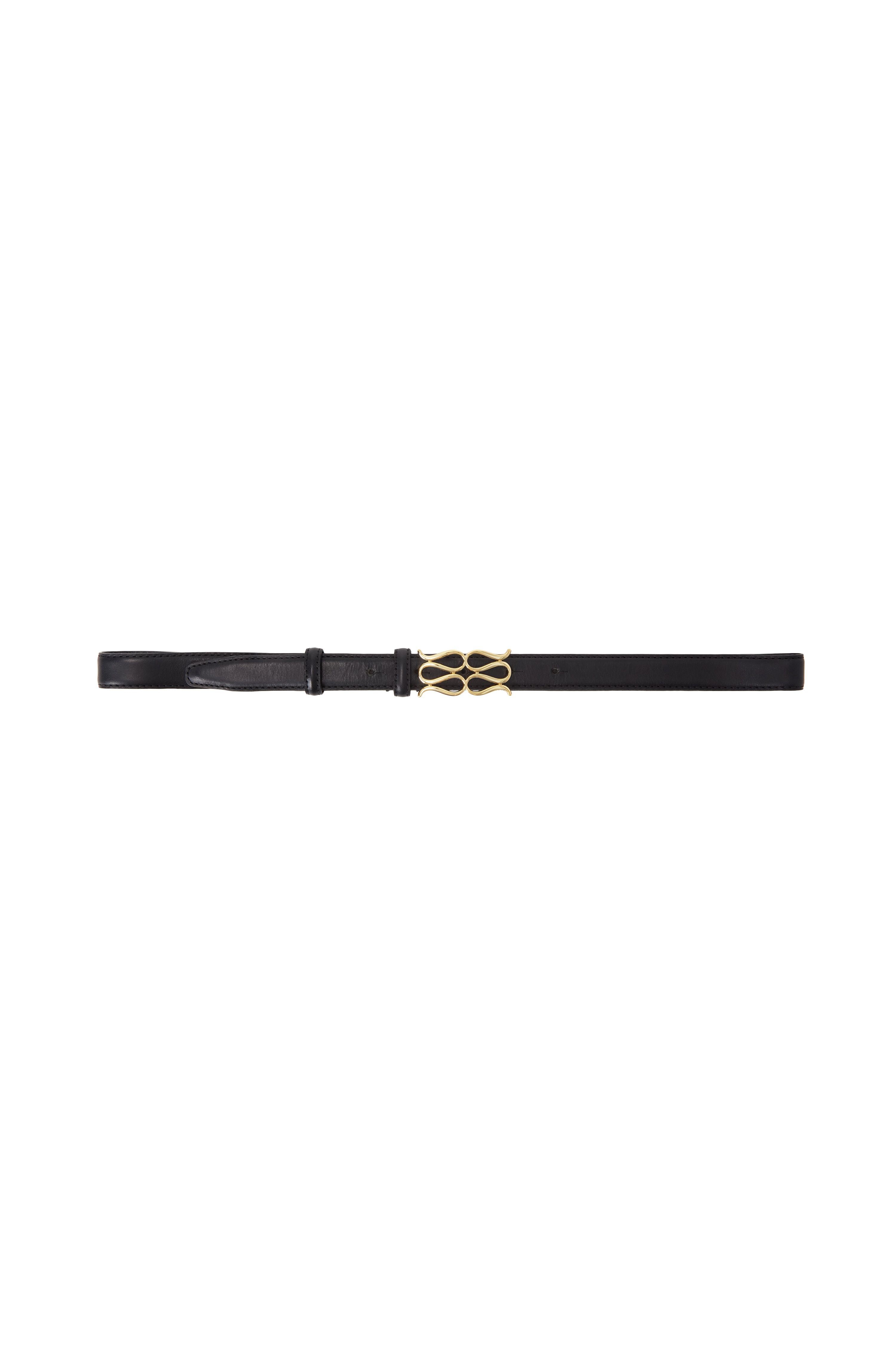 Ledergürtel mit goldfarbener Schließe mit Malina-Monogramm.