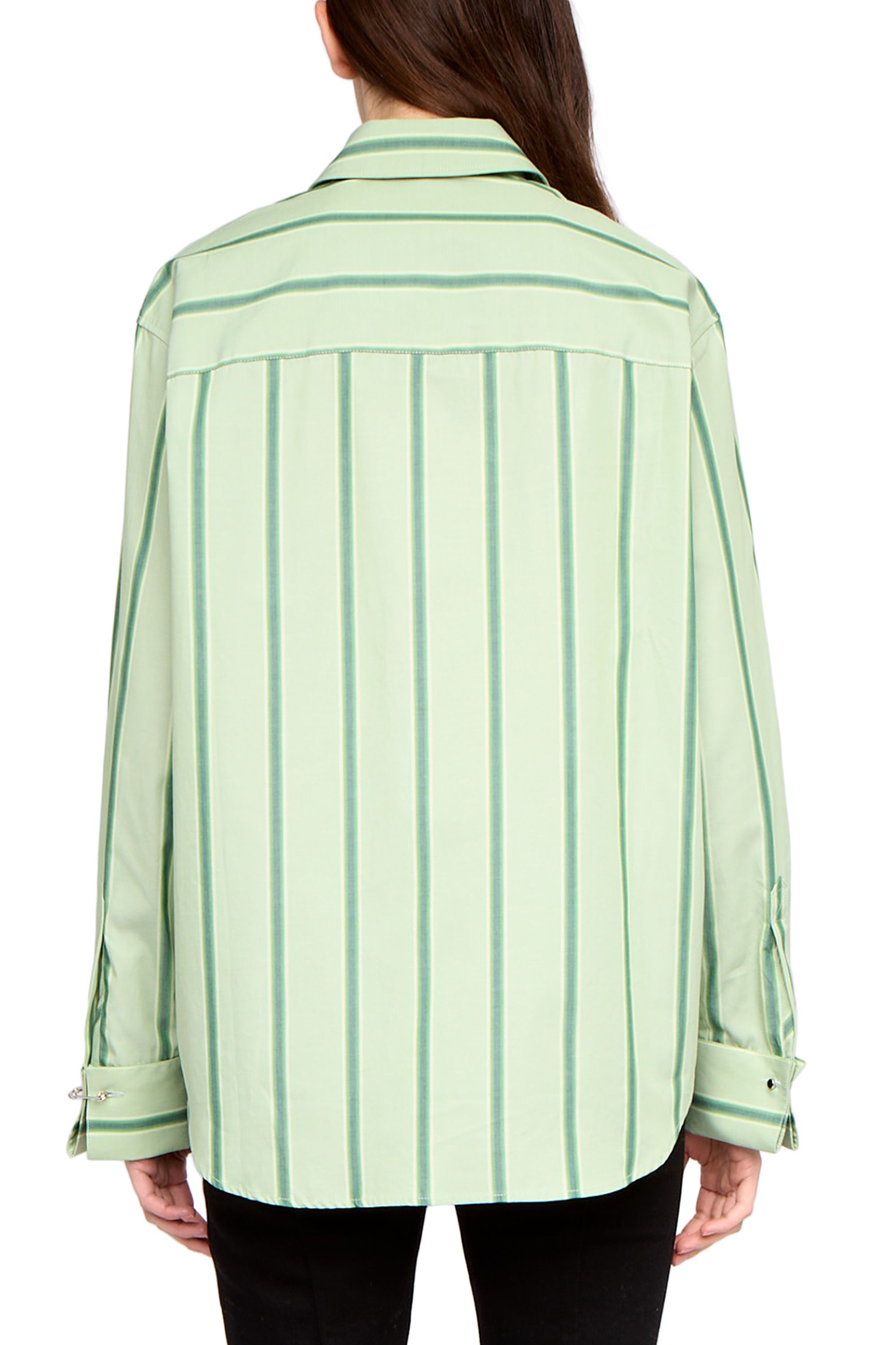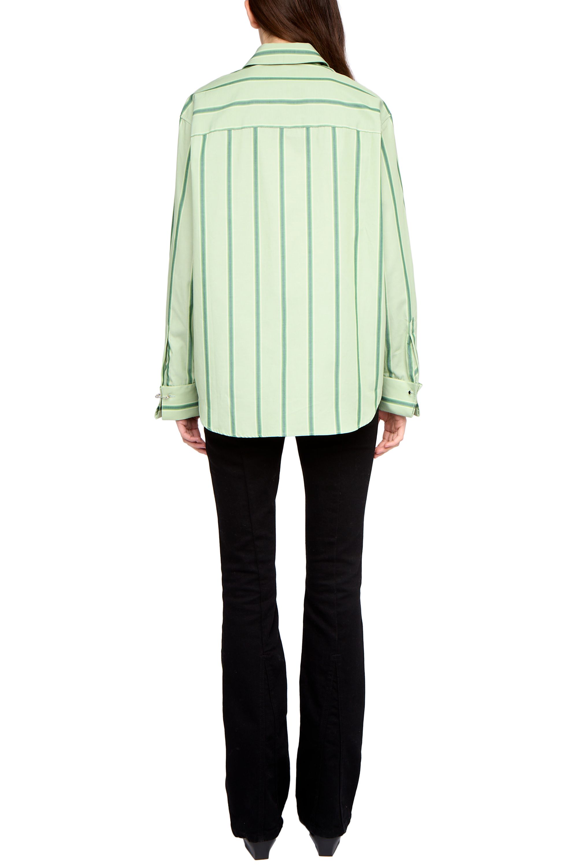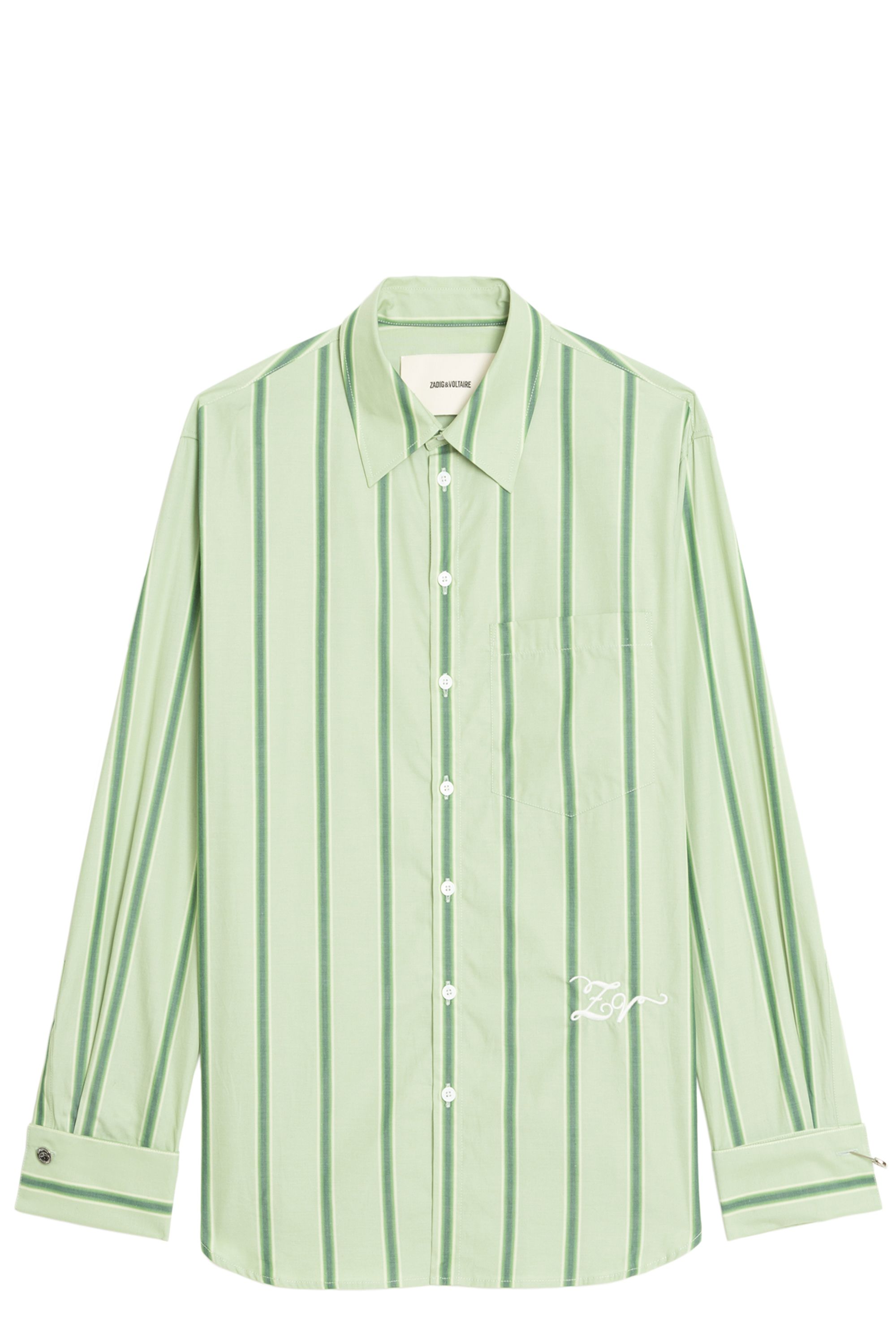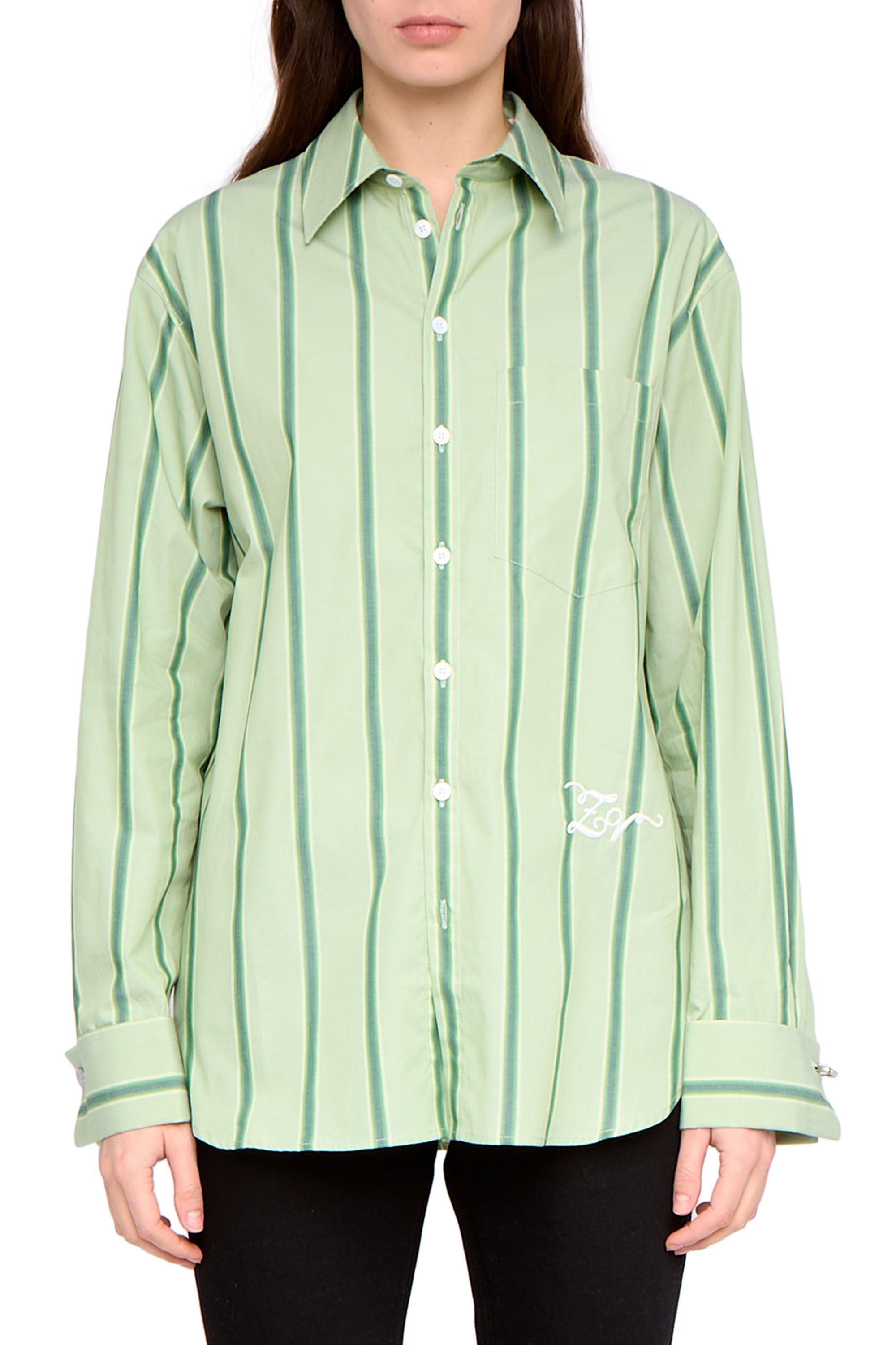 Oversize-Hemd aus gestreiftem Popeline, mit aufgesetzter Brusttasche sowie Stickereien an Manschetten und Knopflöchern.