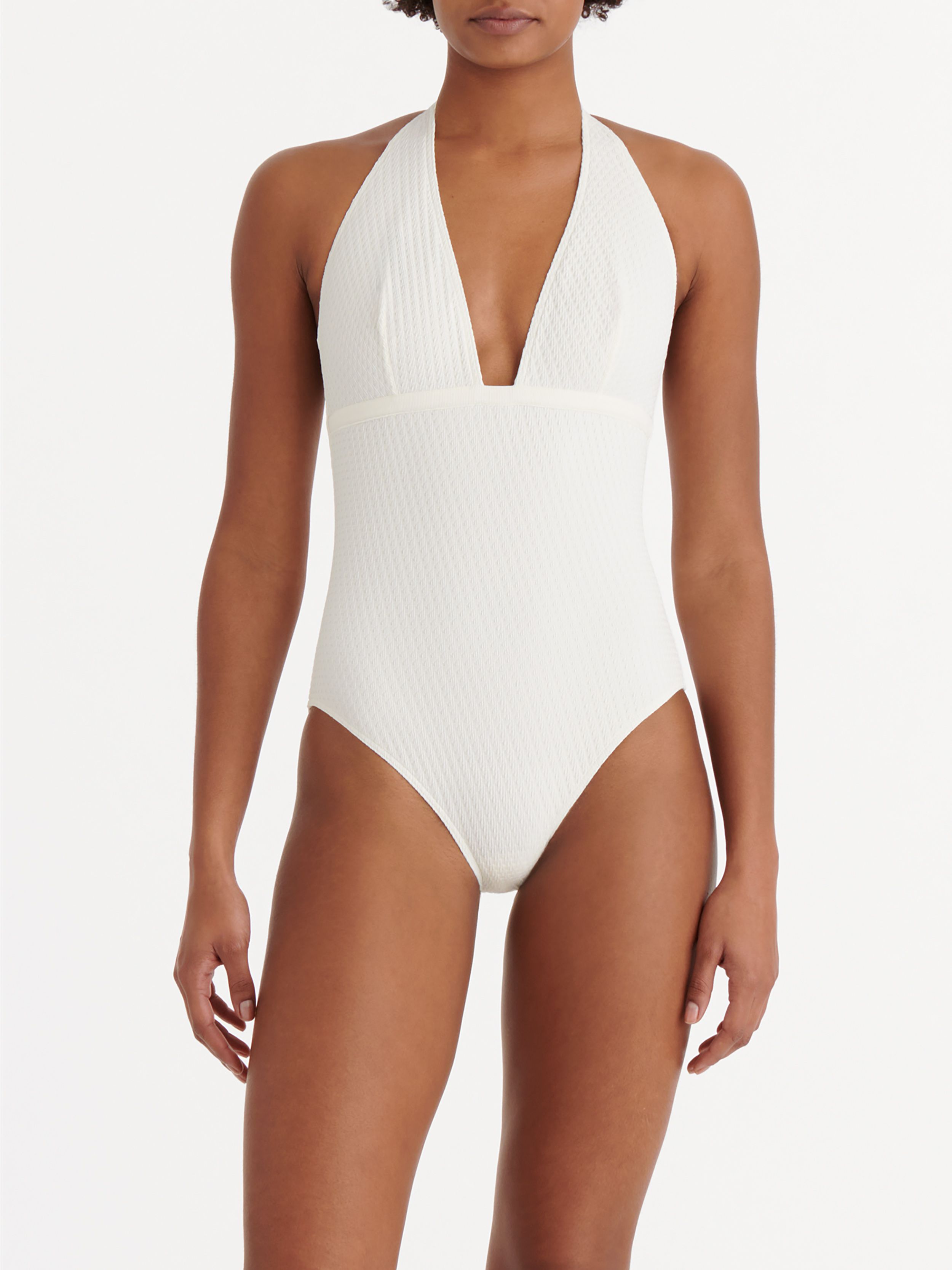 Paillette vereint mit seinem eleganten V-Ausschnitt einen grafischen Look und feminine Ausstrahlung. Dieser Schwimm-Badeanzug aus Jacquard bietet mit seinem Unterbrustband aus Grosgrain optimalen Halt im Retro-Stil.