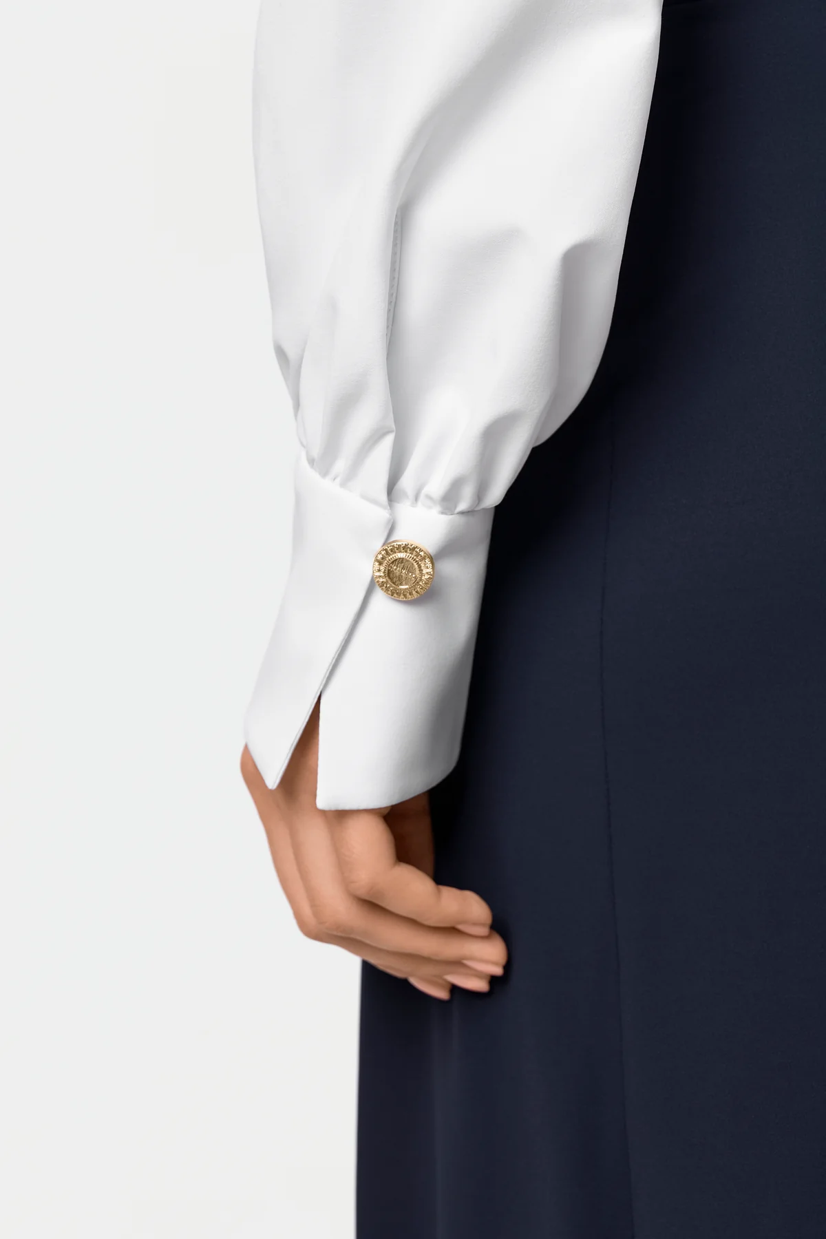 - Bündchen mit abgerundeten goldenen Knöpfen