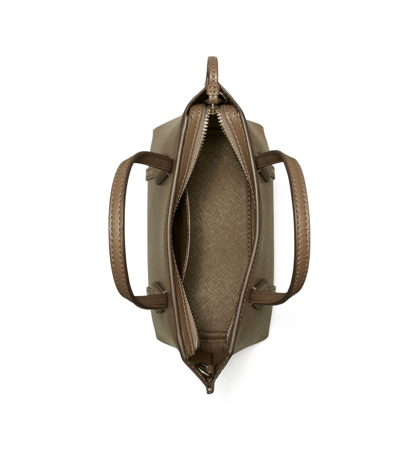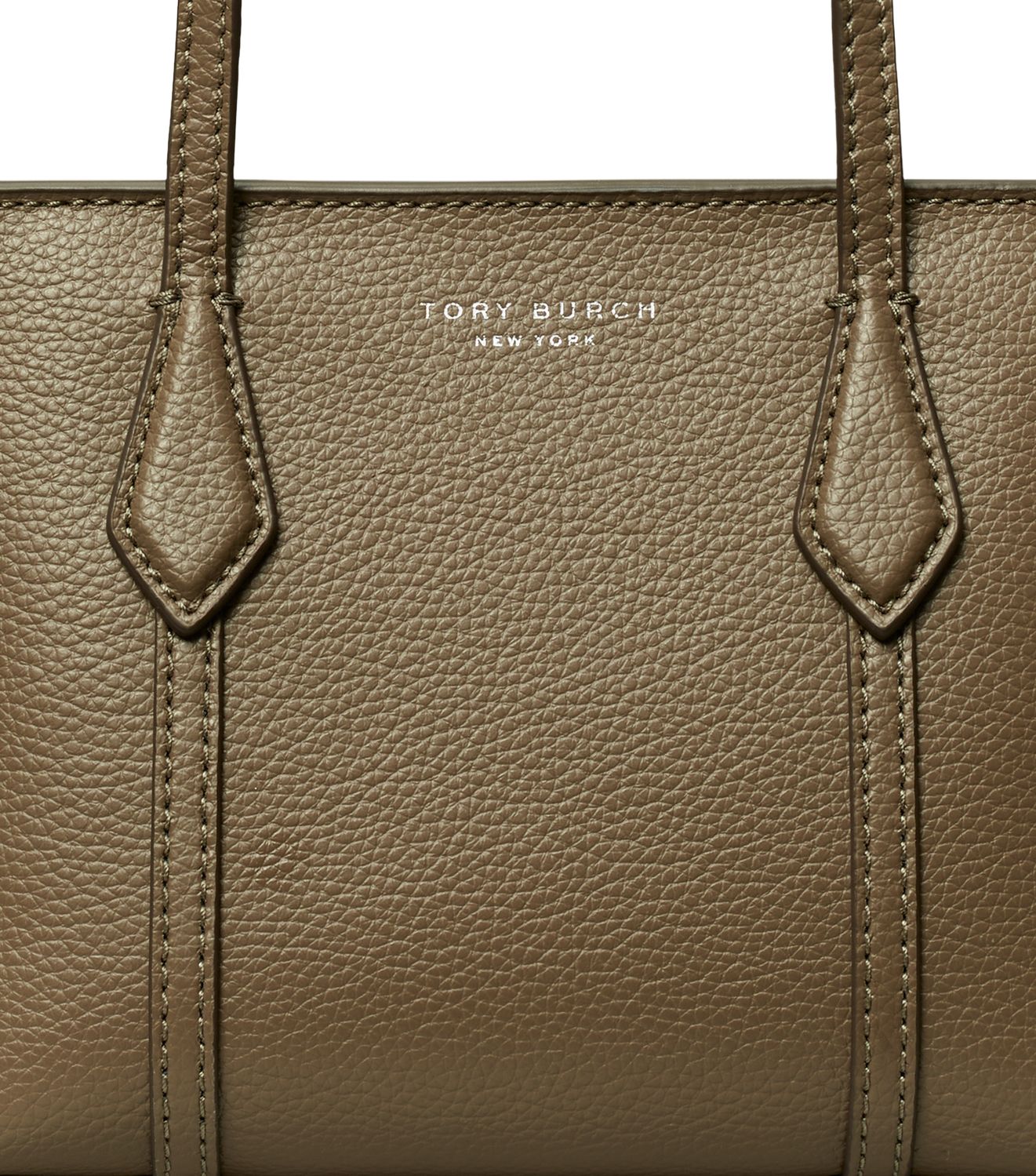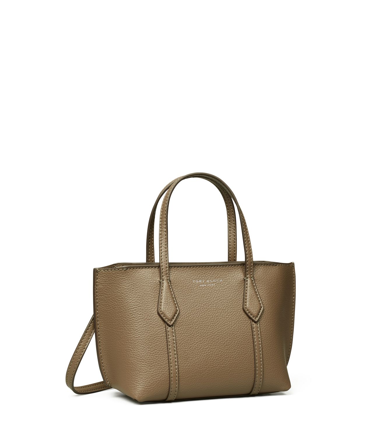 Minimalistisch und vielseitig: Die Mini Perry Tote Bag verfügt über einen abnehmbaren Umhängeriemen. Sie hat ein weiches Baumwollfutter mit Innenfach sowie schmale Tragegriffe oben.