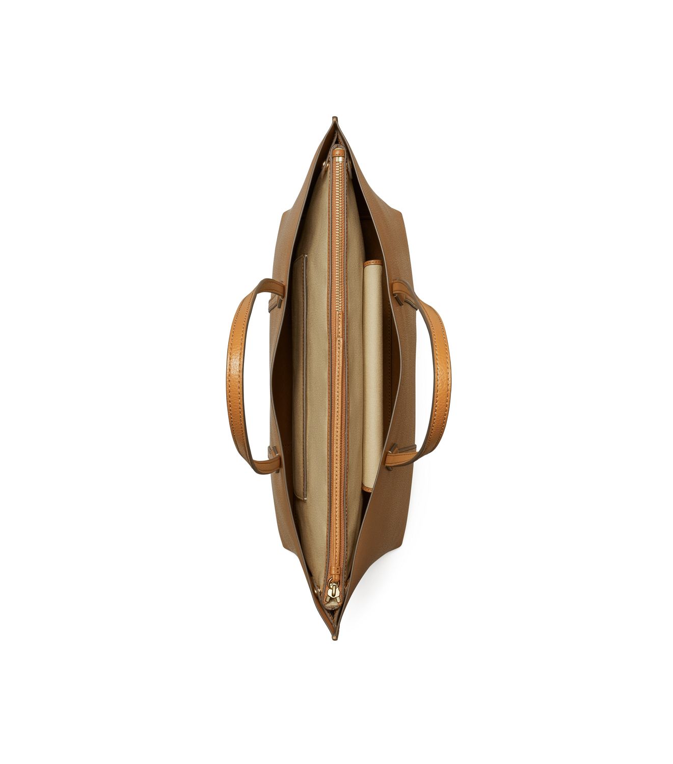 Die perfekte Tote Bag fürs Büro, jetzt mit noch mehr Funktionalität. Noch leichter, noch raffinierter und zugeschnitten auf Ihre täglichen Bedürfnisse. Ein neuer, herausnehmbarer Beutel mit Druckknöpfen bietet Platz für einen Laptop und dient gleichzeitig als mittige Trennwand. Die ungefütterte Tote Bag aus gebondetem Leder ist aussen strukturiert und verfügt über eine strapazierfähige, einfach zu reinigende Innenseite mit Saffiano-Optik. Schmale Riemen und rechteckige Füsschen sorgen für einen modernen Touch. Ein durchdachter Ansatz für absolute Funktion.