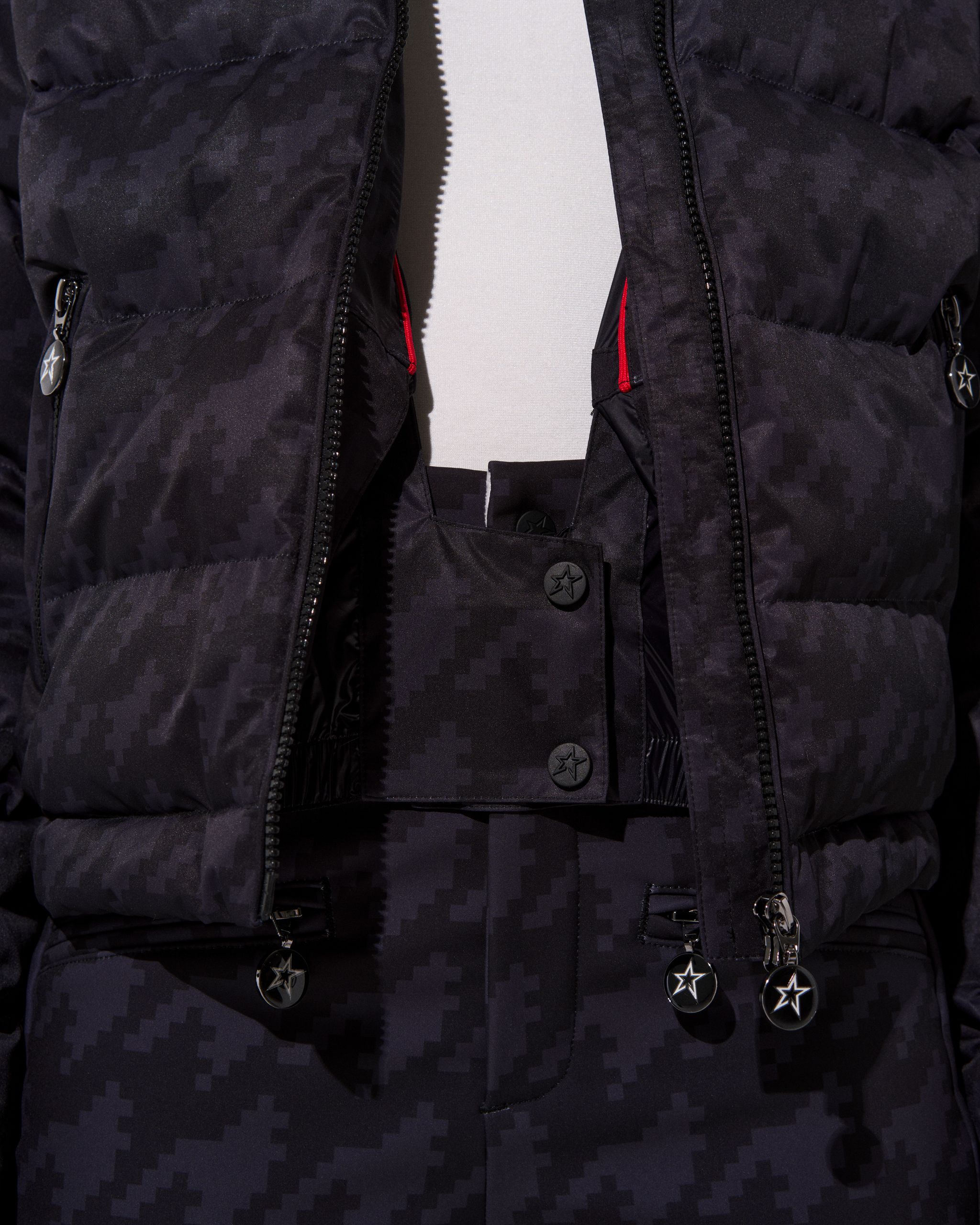 - Hochgeschlossener Kragen und helmkompatible Kapuze